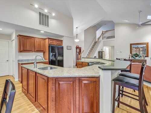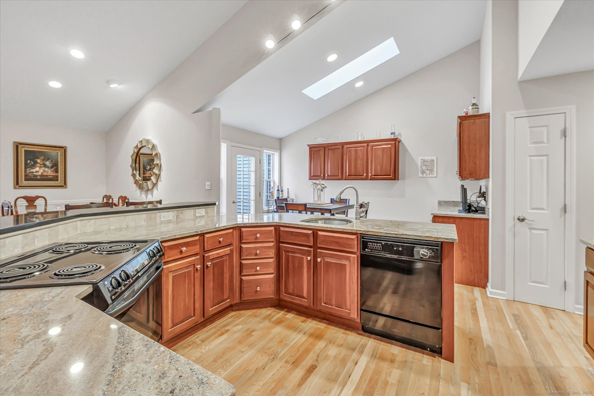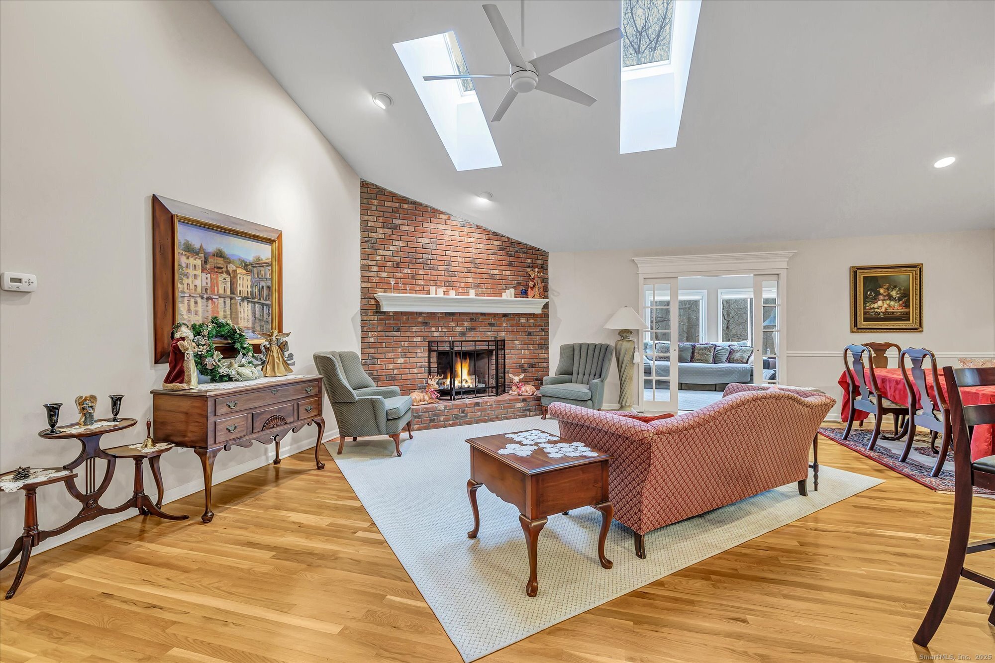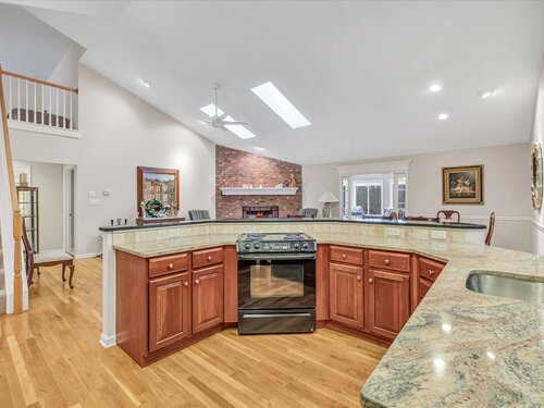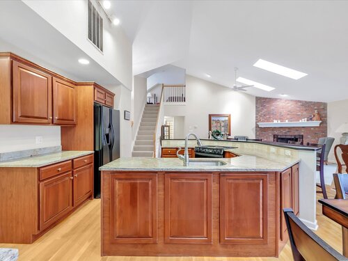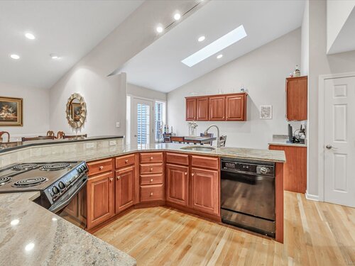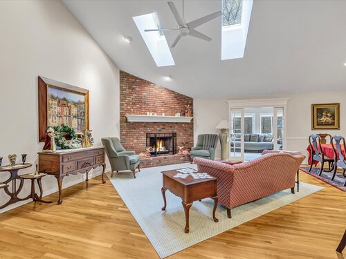 Location, location! This Tahoe-style end-unit ranch in sought-after Aspetuck Village offers gorgeous golf-course views and an open concept layout featuring a remodeled kitchen with granite counters and breakfast bar, an eating area with slider to an expansive deck overlooking the course, and a spacious dining/living room with hardwood floors, corner brick wood-burning fireplace, skylights, and triple pocket doors leading to a four-season sunroom with deck access. The main level includes a laundry room with storage, a convenient half bath, and an open staircase to a loft overlooking the living area. The primary bedroom boasts a vaulted ceiling, walk-in closet with custom shelving, and a remodeled bath with a huge tiled walk-in shower. Two additional bedrooms share a full bath, while the finished walk-out lower level offers a rec room, office/4th bedroom, full bath, cedar closet, sliders to a rear patio, and abundant storage. A two-car attached garage completes this exceptional home.
