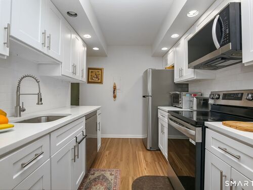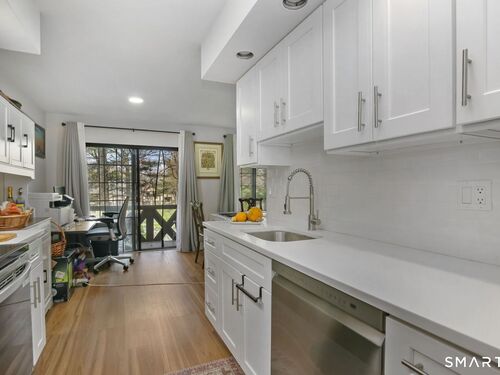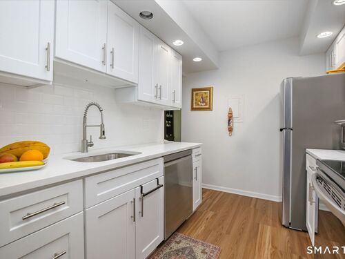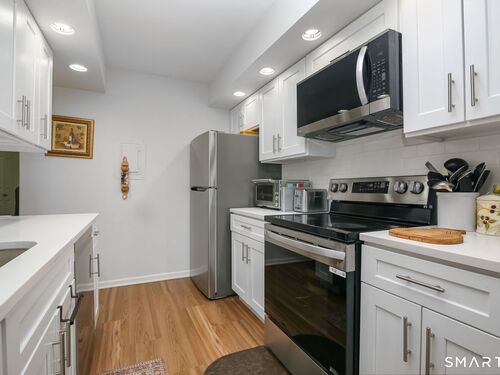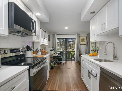 Welcome to 50 Aiken Street #433, a beautifully renovated 1-bedroom, 1.5-bath condo in Rolling Ridge, one of Norwalk's most well-maintained communities. Step inside to a bright, open-concept living and dining area with a dedicated study space -- all flowing seamlessly to a private balcony perfect for morning coffee or evening relaxation. The kitchen has been completely transformed with brand new LG appliances (dishwasher, electric stove/oven, refrigerator), new cabinets, stainless steel faucet, fresh countertop, and vinyl flooring. The primary bedroom features a walk-in closet and shares access to a fully updated bathroom with new toilet, vanity, mirrors, lighting fixtures, and tile flooring. A powder room off the entry provides convenience for guests. Recent upgrades include new carpet, fresh paint throughout, new AC, and updated lighting fixtures -- move-in ready and meticulously cared for. In-unit laundry adds everyday convenience. Rolling Ridge offers resort-style amenities including pool, clubhouse, tennis courts, and dog park, with HOA covering heat, hot water, water, sewer, trash, snow removal, and grounds maintenance. Located just off Main Avenue, you're minutes from restaurants, grocery stores, and everything Norwalk has to offer. This is a rare opportunity to own a fully renovated home in a community that truly delivers.
