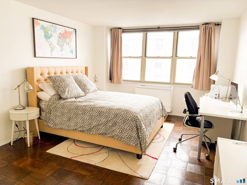 Bright Sun-filled 3BR/3BTH, Corner unit in desirable Down Town Stamford high-rise Building. Spacious 1,680 SF layout with open living and dining areas w abundant natural light. Two private balconies offer views of Long Island Sound & Sun Set views w Stamford skyline. Large primary suite with walk-in closet & En-Suite bath. Common charges include Heat, Hot Water, Cooking Gas, City Water, City Sewer, One Assigned Garage Parking Space & Full Building Amenities: Front desk Reception, Live-in Superintendent, Party Room, Fitness Center, Pest Control Svc., Pool & Secure lower-level Storage. Additional outdoor parking is available for $80 per month. Ten Guest Parking Spaces available for building residents guests and more on the weekends. Laundry Machines, Recycle bin & Garbage shoot on Each Floor. Convenient walk-to-downtown location with CT Transit at the front door. Comfortable full-service in-town living. 5 Minutes Drive to I95 & Metro North trains station going to New York & New Haven. Walking Distance to Down Town, Restaurants, Shopping Mall, Library, Theaters & Mill River park. Free Trolly to Harbor Point & Easy access to Cove Beach, Cummings Beach & Scalzi Park.