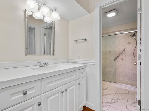 WOW! This AMAZING remodeled 2-bedroom ranch condo is perfect for anyone looking for easy living - complete with a chair lift for added convenience. You'll immediately notice the gleaming hardwood floors and the light-filled, open floor plan. The spacious great room features a cozy gas fireplace and sliders that open to a lovely private deck. The dining area flows effortlessly into the beautifully updated kitchen, which offers plenty of white cabinetry, granite counters, stainless gas stove, dishwasher, & refrigerator. The incredible primary bedroom includes walk-in closets & a full remodeled bath. The second bedroom-with hardwood floors-makes a great guest room or home office with access to a new 1/2 bath. The walk-out lower level, accessible by stairs or the chair lift, offers a stunning family room & den. Also great as a guest suite complete with a new full bath. You'll also find a completely remodeled large laundry room with abundant storage space. A convenient attached garage as well. Enjoy gas heat and central air for year-round comfort. Freshly painted leaves nothing to do but move in! The community offers wonderful amenities, including pools, tennis, and pickle-ball courts. Conveniently located next to phenomenal golf clubs. Nearby Sikorsky, shopping, train and minutes to the hospitals and all major highways. This Thoreau model condo truly combines comfort, style, and convenience in one incredible package. This is an adult over 55 community.