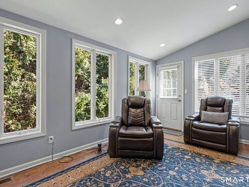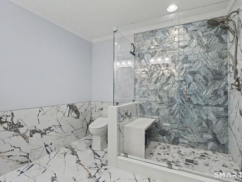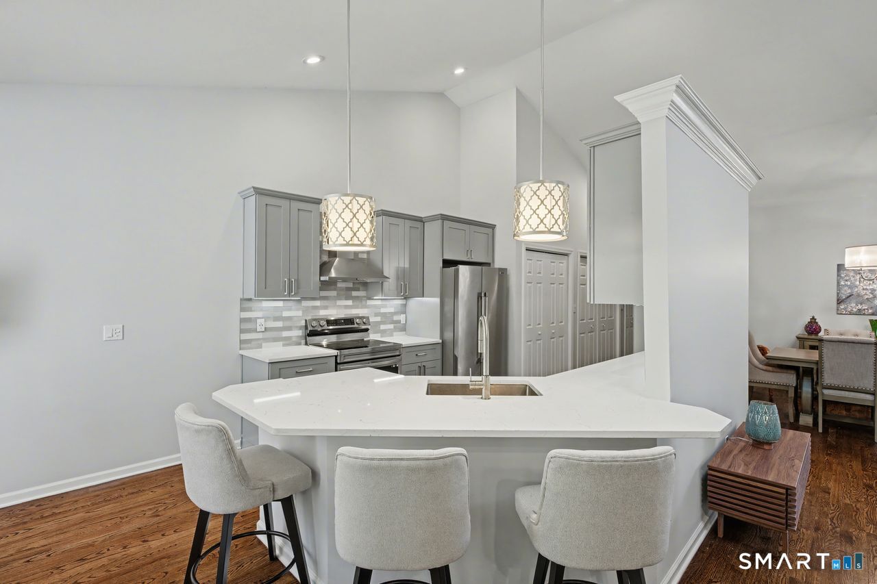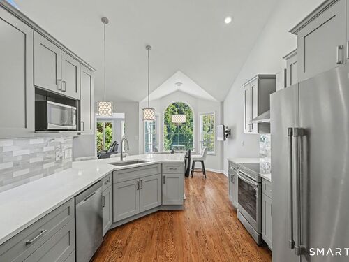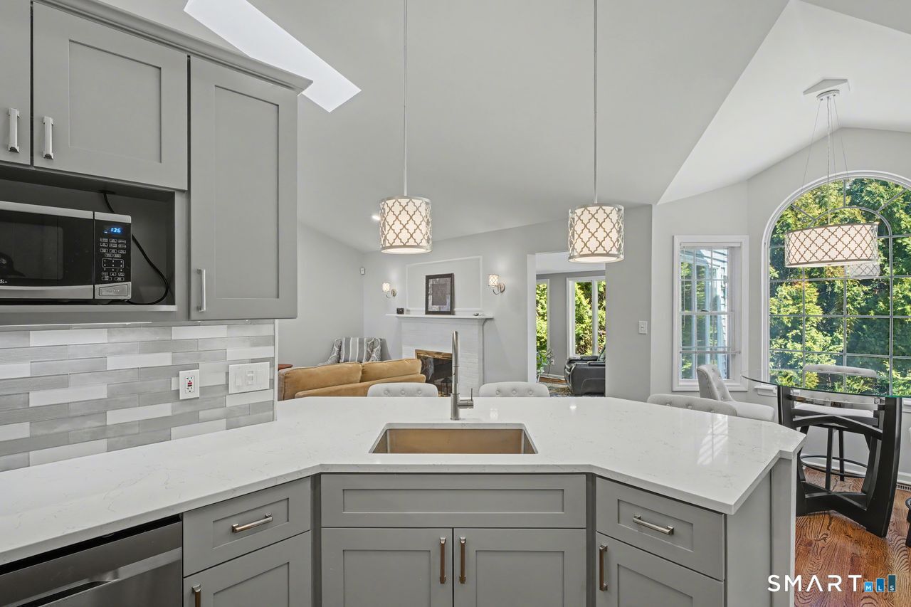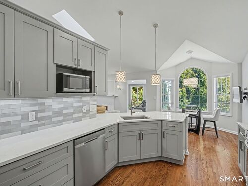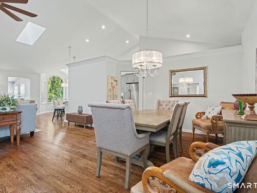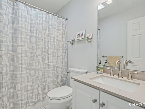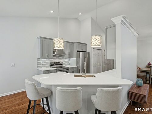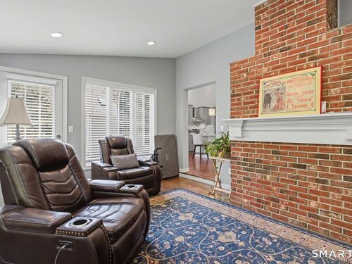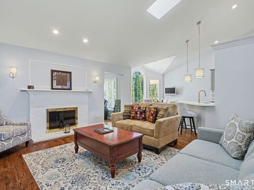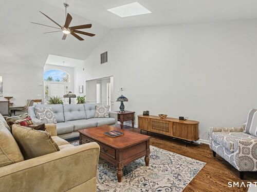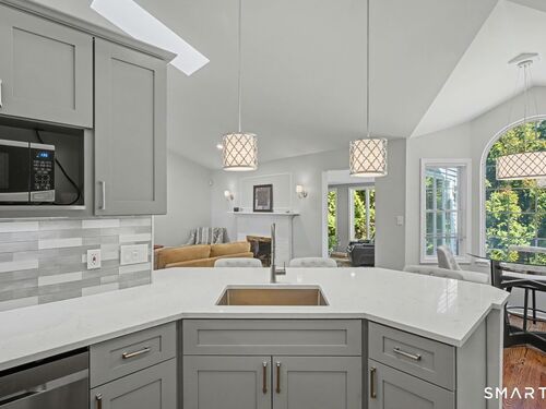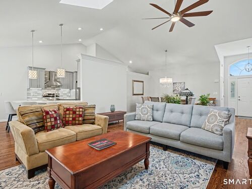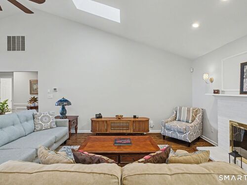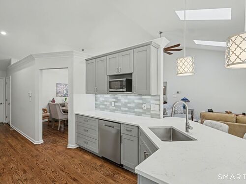 Truly turn-key Blakefield unit on a quiet street in sought after Aspetuck Village Condo Association. This beautiful open concept two-bedroom, two-bathroom ranch style unit with two car garage is a showstopper. As you enter through the front door, you are greeted with meticulous details, high ceilings, gleaming hardwood floors, a large great room with fireplace and skylights, and dining space. The custom eat-in kitchen features quartz counters, 42-inch soft close cabinets, newer appliances, glass tile back splash, canopy range hood (outside vented), and access to the two-car garage and laundry. The adjacent sunroom is ideal for relaxing, as a den or home office. The inviting primary bedroom suite with new luxury bathroom has double sinks, oversized tiled shower, vaulted ceiling and walk in closet. The second full refreshed hall bathroom and bright guest bedroom complete this amazing one level living. Custom molding, ample closets, and freshly painted throughout. The full unfinished basement is perfect for storage or future finishing. Outside you will find a new stone paver patio ideal for outdoor dining and front is equipped with timed lawn irrigation. Whole house generator hook up and garage is pre-wired with a plug for electric car charging station. The American Standard Oil furnace/Central Air/Heat pump combo system (2023) is an economical plus. Low HOA fees, amenities, and Shelton's attractive taxes and bustling conveniences. Schedule a showing today!