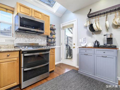 Set within the desirable Glen Arthur Estates community in Stamford's Glenbrook neighborhood, this detached Colonial-style condominium offers a wonderful blend of comfort, space, and convenience. This cheerful and well-maintained home features inviting sun-filled living spaces with hardwood floors throughout both the first and second levels. The living room includes a gas fireplace and a striking Palladian window, while the eat-in kitchen is enhanced by a vaulted ceiling and skylight. Upstairs, the home offers three bedrooms and two full baths, all complemented by hardwood flooring. The finished lower level provides flexible space for a family room, home office, guest area, or additional living needs. Outside, enjoy a private patio and a beautifully landscaped garden setting, ideal for relaxing, entertaining, or outdoor dining. Perfectly positioned near shopping, restaurants, public transportation, and bus lines, and within walking distance to the Glenbrook railroad station with easy access to I-95 and the Merritt Parkway, this home offers both neighborhood charm and commuter-friendly convenience. Recent improvements over the past five years include: new roof, window replacement, new A/C compressor, new boiler and hot water tank, installation of hardwood flooring on the second level, remodeled primary bathroom, all new kitchen appliances, new washer and dryer, mature backyard garden, mature front yard garden, and an underground sprinkler and drip irrigation system.