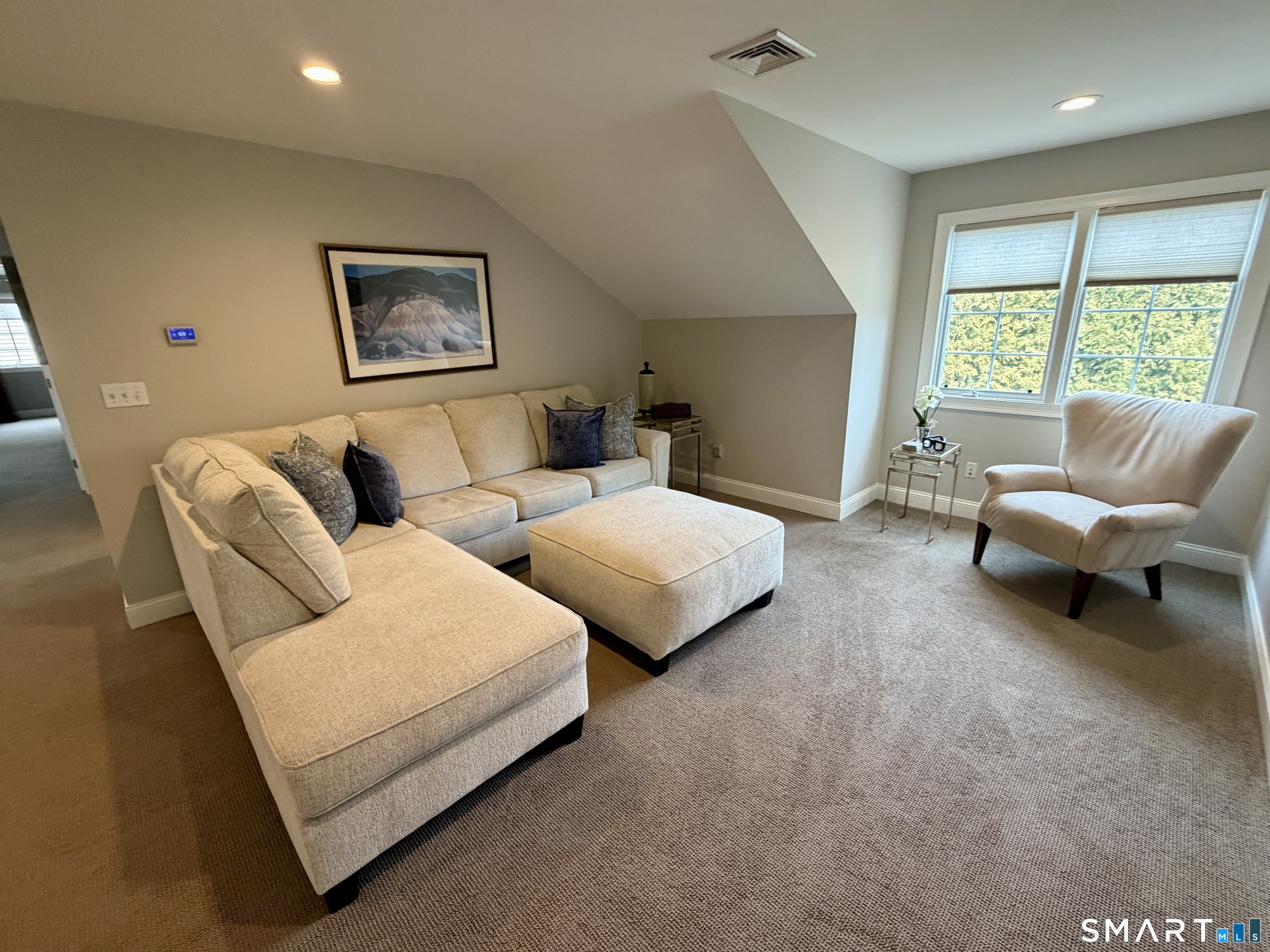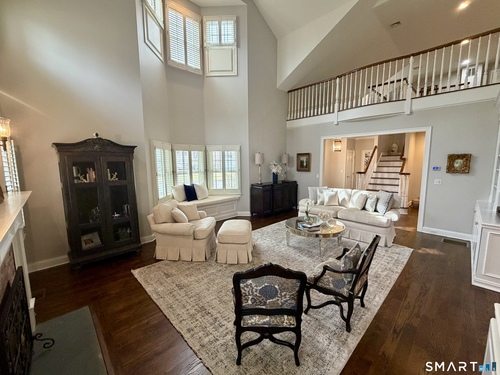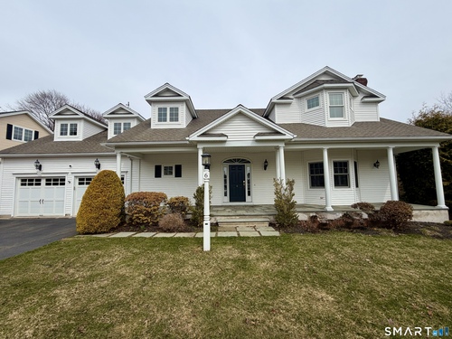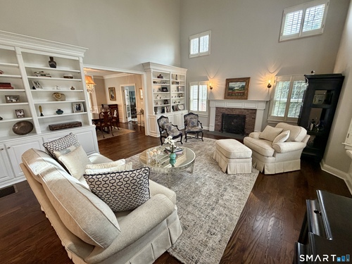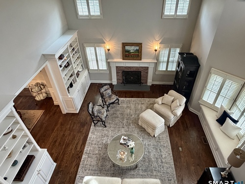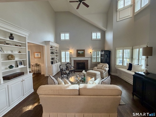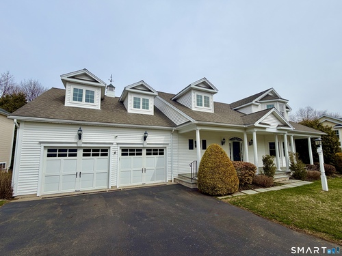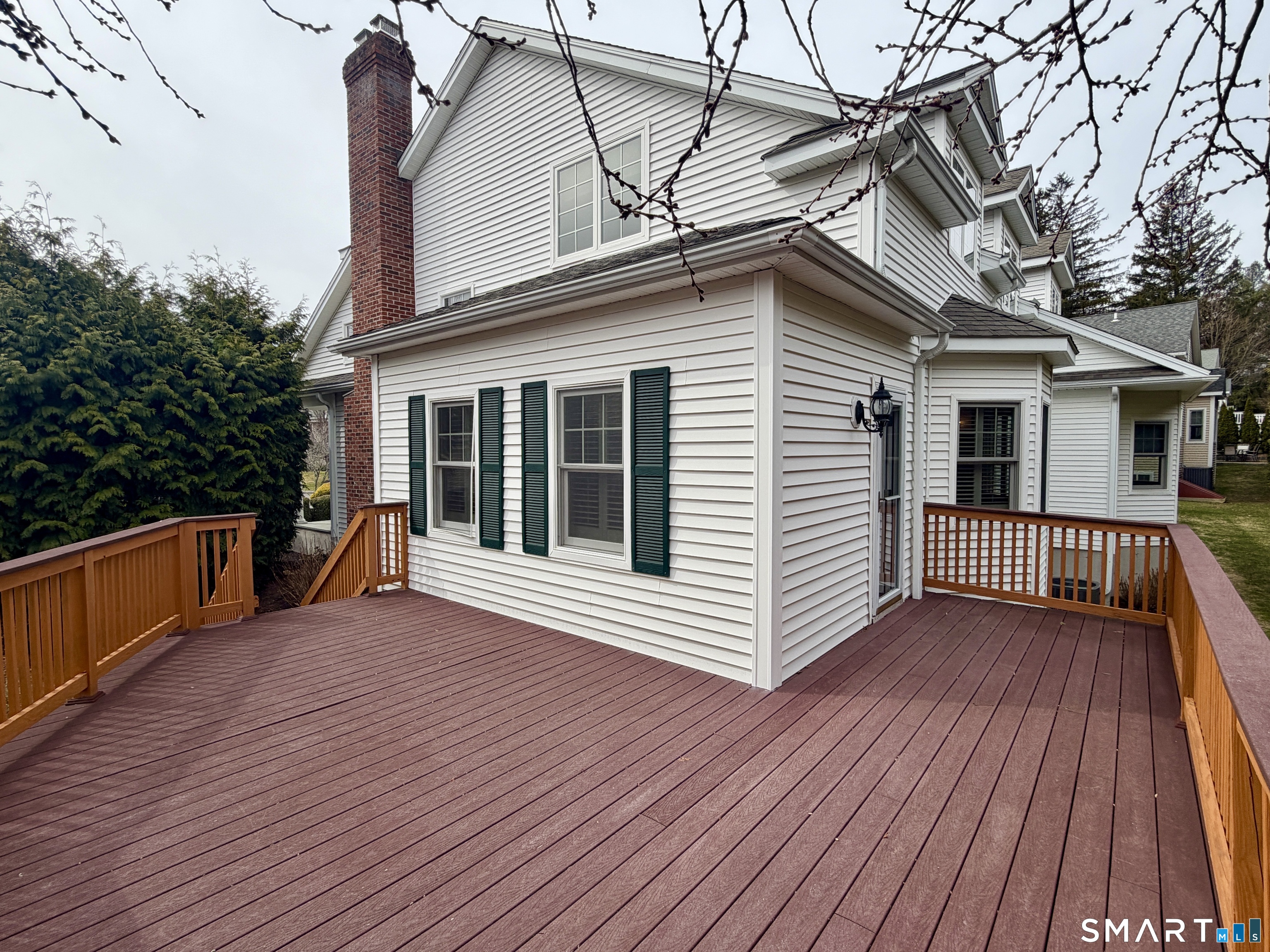 Downsize in style and enjoy luxurious, low-maintenance living at The Elms, an intimate, upscale 21-home adult community set on a quiet cul-de-sac. This thoughtfully designed and impeccably maintained residence offers a bright, open layout with a dramatic two-story living room featuring custom built-ins, gas fireplace, window bench seating, a ceiling fan and lots of windows. The spacious formal dining room flows seamlessly into a den/study through elegant french doors. The recently remodeled kitchen features granite countertops, a large center island, and new stainless steel appliances. The main-level primary suite serves as a private retreat, complete with a tray ceiling, two walk-in closets, and a beautifully updated spa-like bath. The convenient first-floor laundry/mudroom provides direct access to an oversized 2-car garage. All rooms are freshly painted with refinished hardwood floors throughout the main level. Upstairs you'll find two additional bedrooms, a full bath, and an expansive loft overlooking the living room. Enjoy outdoor entertaining on the spacious wraparound deck. Full unfinished basement (~1,931 sq ft) provides excellent storage and expansion potential. Additional updates include a new energy-efficient HVAC and hot water heater for added peace of mind. Ideally located near beautiful Trumbull parks, walking trails, two public pools, golf course, tennis and pickleball courts, with convenient access to shopping, dining, and major highways.