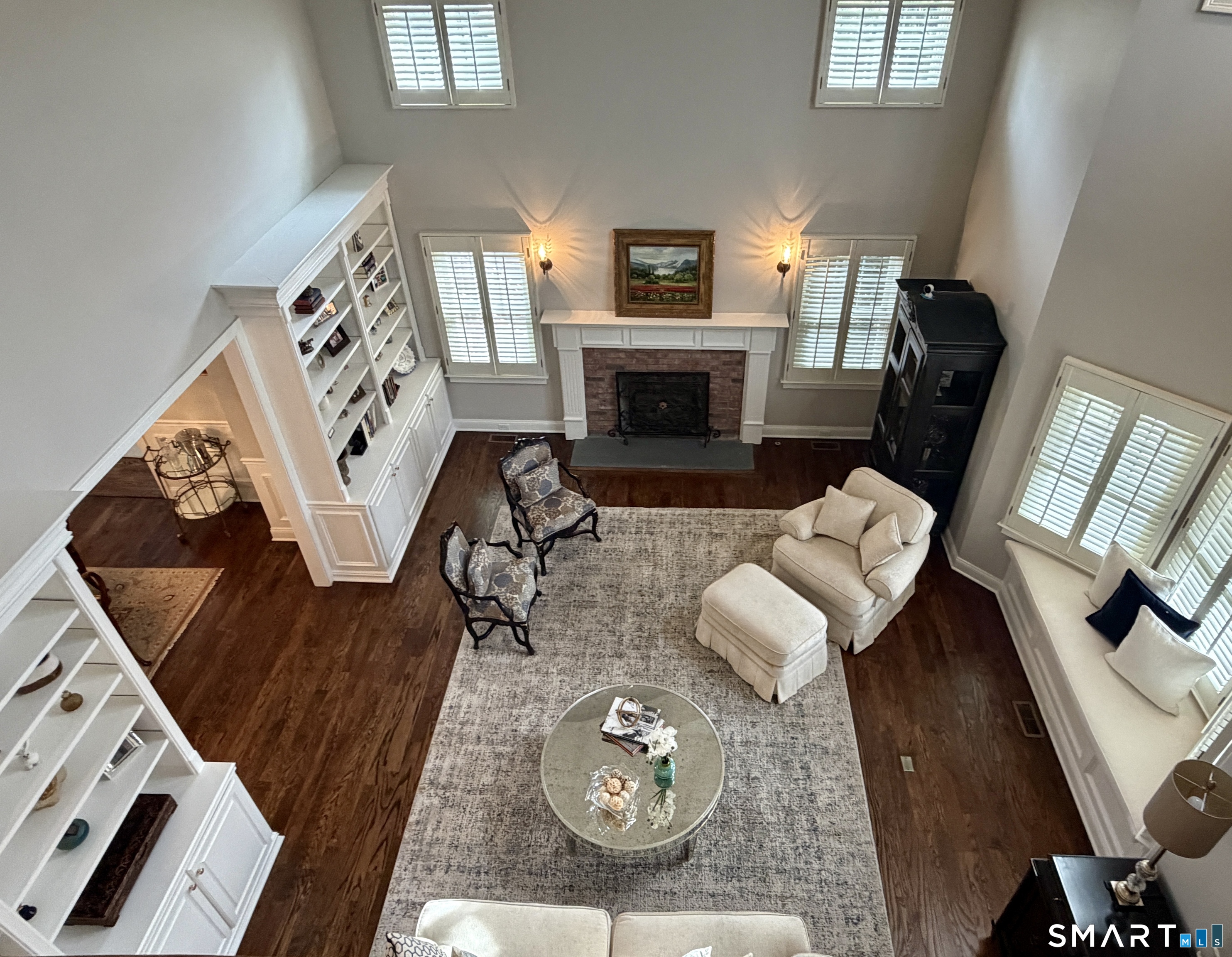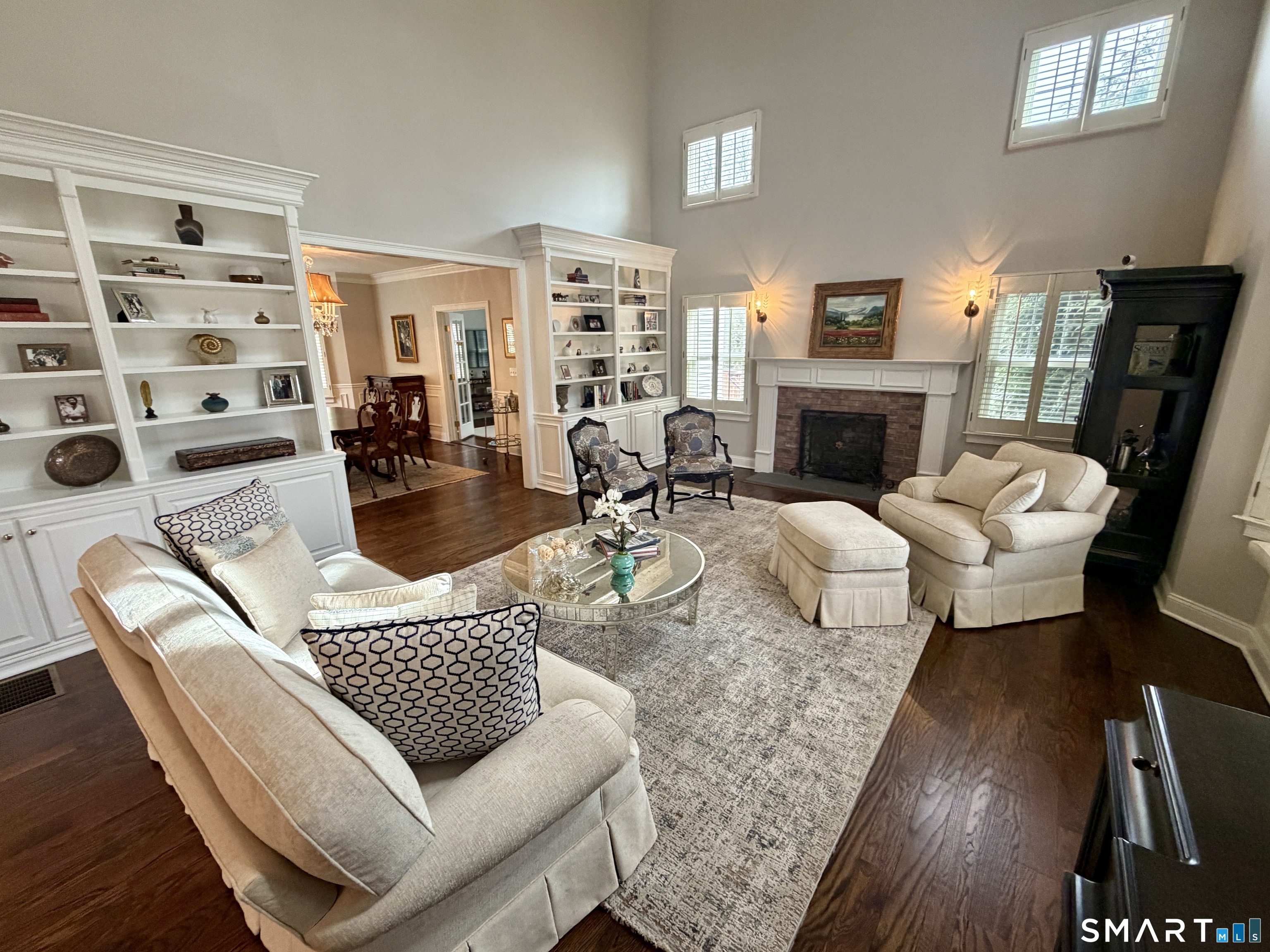 Bay/Bow Window, 2 Story Window(s), Built-Ins, Ceiling Fan, Fireplace, Hardwood Floor