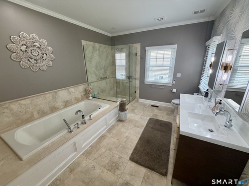 Remodeled, Granite Counters, Double-Sink, Stall Shower, Whirlpool Tub, Tile Floor