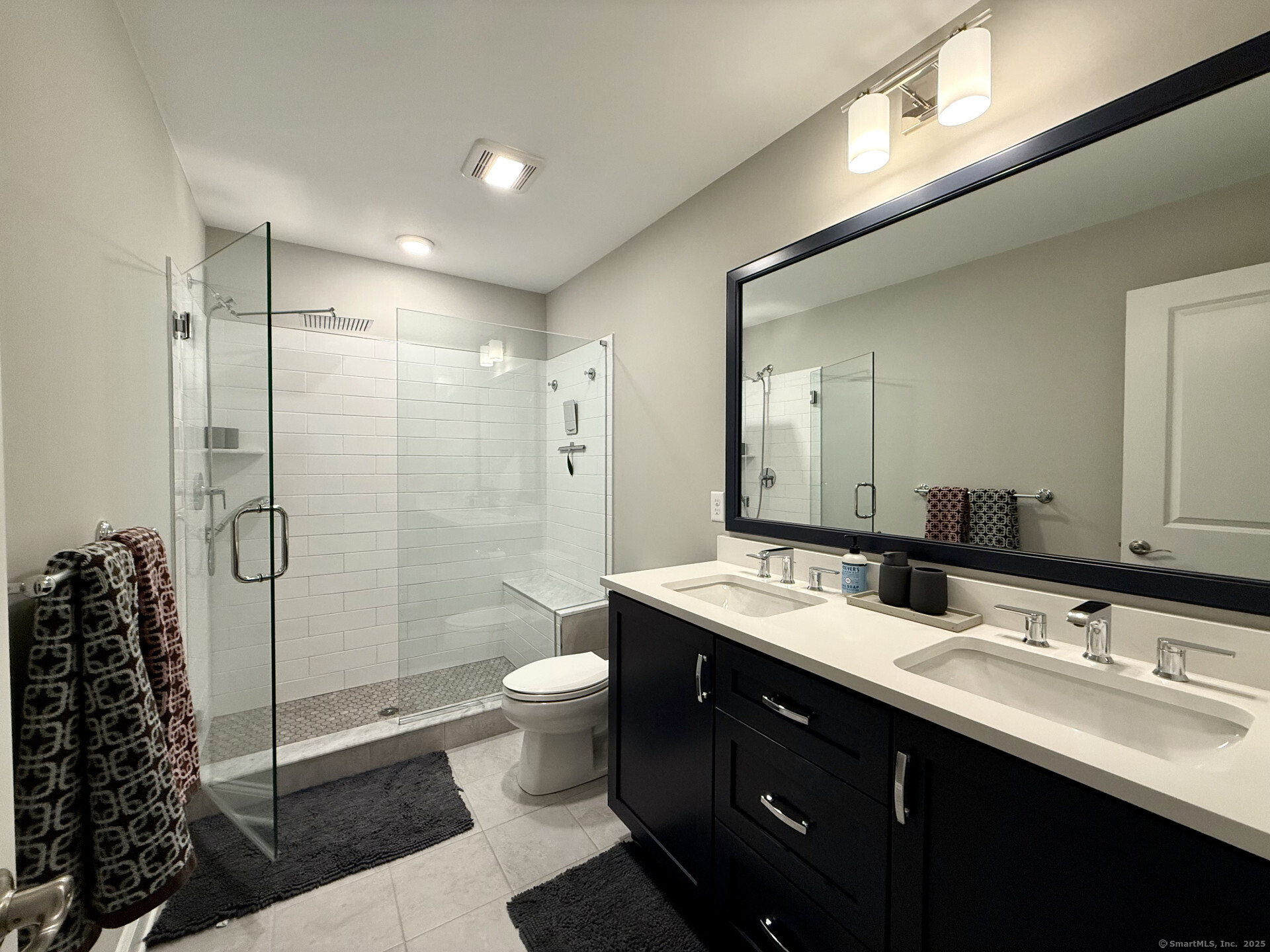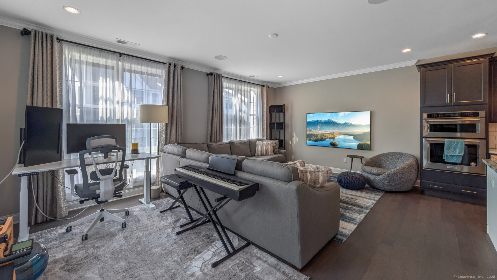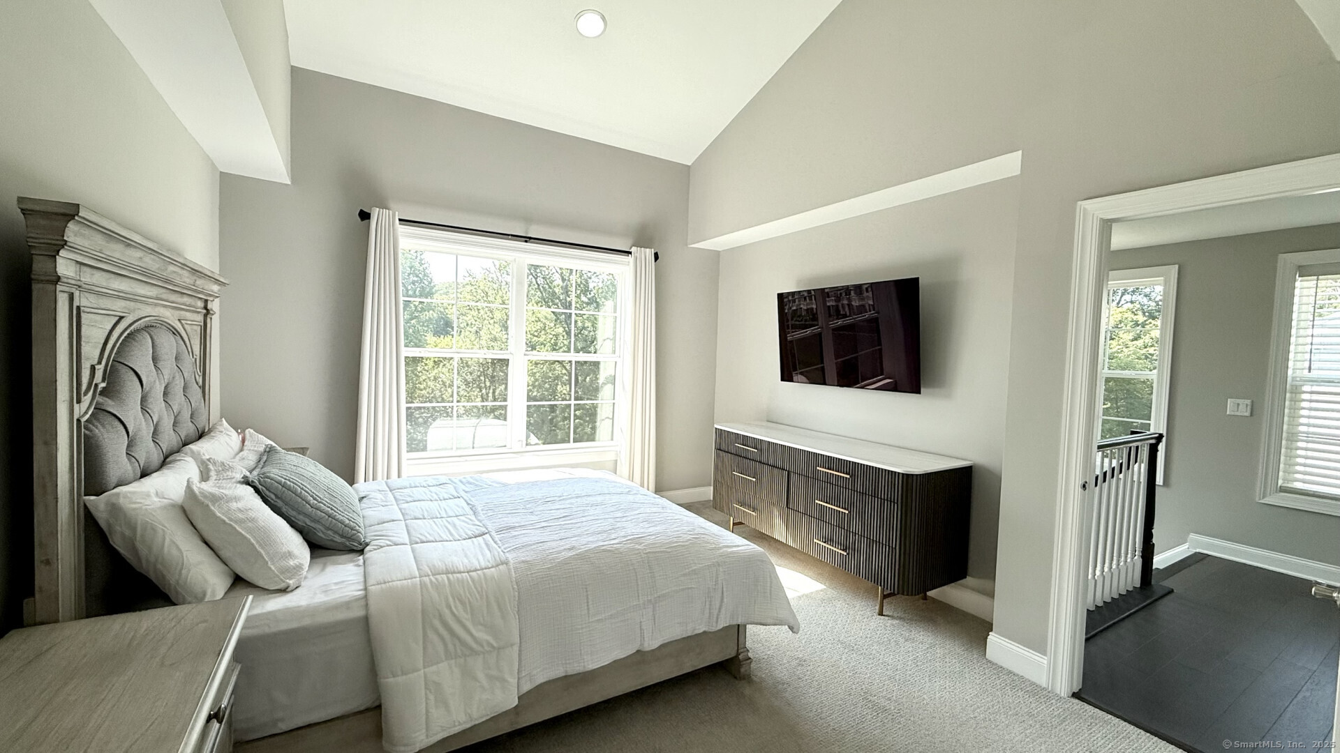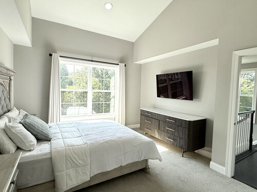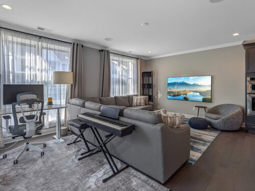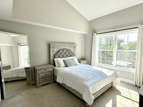 Discover this exceptional 4BR, 3.5BA end-unit Toll Brothers townhome in the prestigious Rivington community, boasting over $125K in upgrades and an ideal location just minutes from the NY border and under 90 minutes to NYC. With a 2car garage plus two additional parking spaces, convenience meets elegance in every detail. Step inside to a sun-filled open-concept main level featuring a gourmet kitchen with granite and quartz countertops, soft-close cabinetry, premium Kohler fixtures, stacked oven/microwave, and in-ceiling audio wiring-perfect for entertaining. The spacious dining and living areas flow seamlessly to a private deck overlooking tranquil wooded views, offering both beauty and privacy. The primary suite retreat showcases a custom walk-in closet, spa-inspired frameless glass shower, and double vanity, while three additional bedrooms provide space for family, guests, or a home office. The lower-level bedroom with private full bath is ideal for an in-law suite, au pair, or remote work setup. This smart-home residence includes an EV charger, hardwood floors throughout, and custom window treatments, ensuring a true move-in ready experience. Enjoy resort-style living with Rivington's unmatched amenities: multiple pools, state-of-the-art fitness center, tennis and pickleball courts, playgrounds, and scenic trails. With luxury finishes, modern conveniences, and an unbeatable location, this townhome offers the perfect balance of comfort, style, and community.