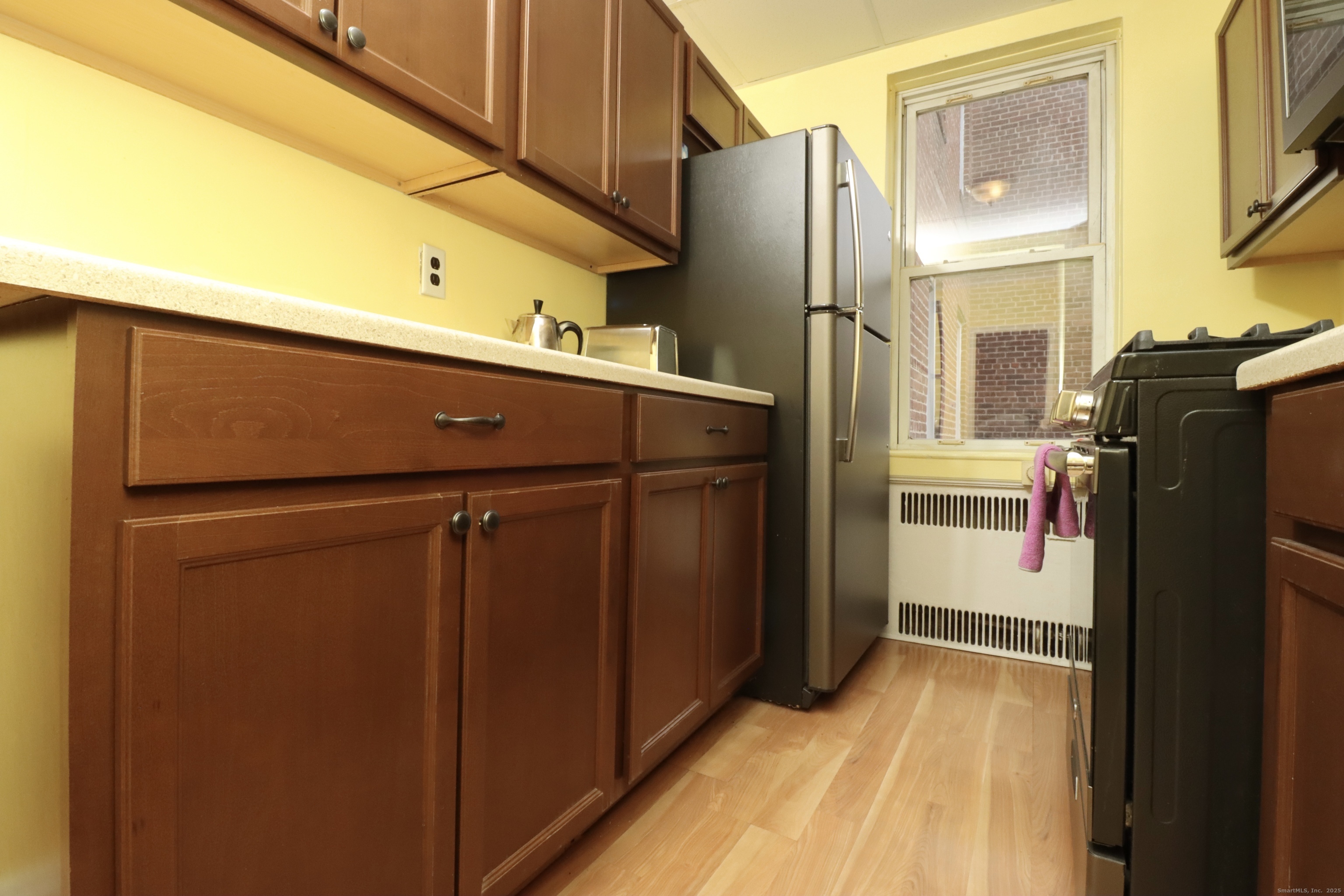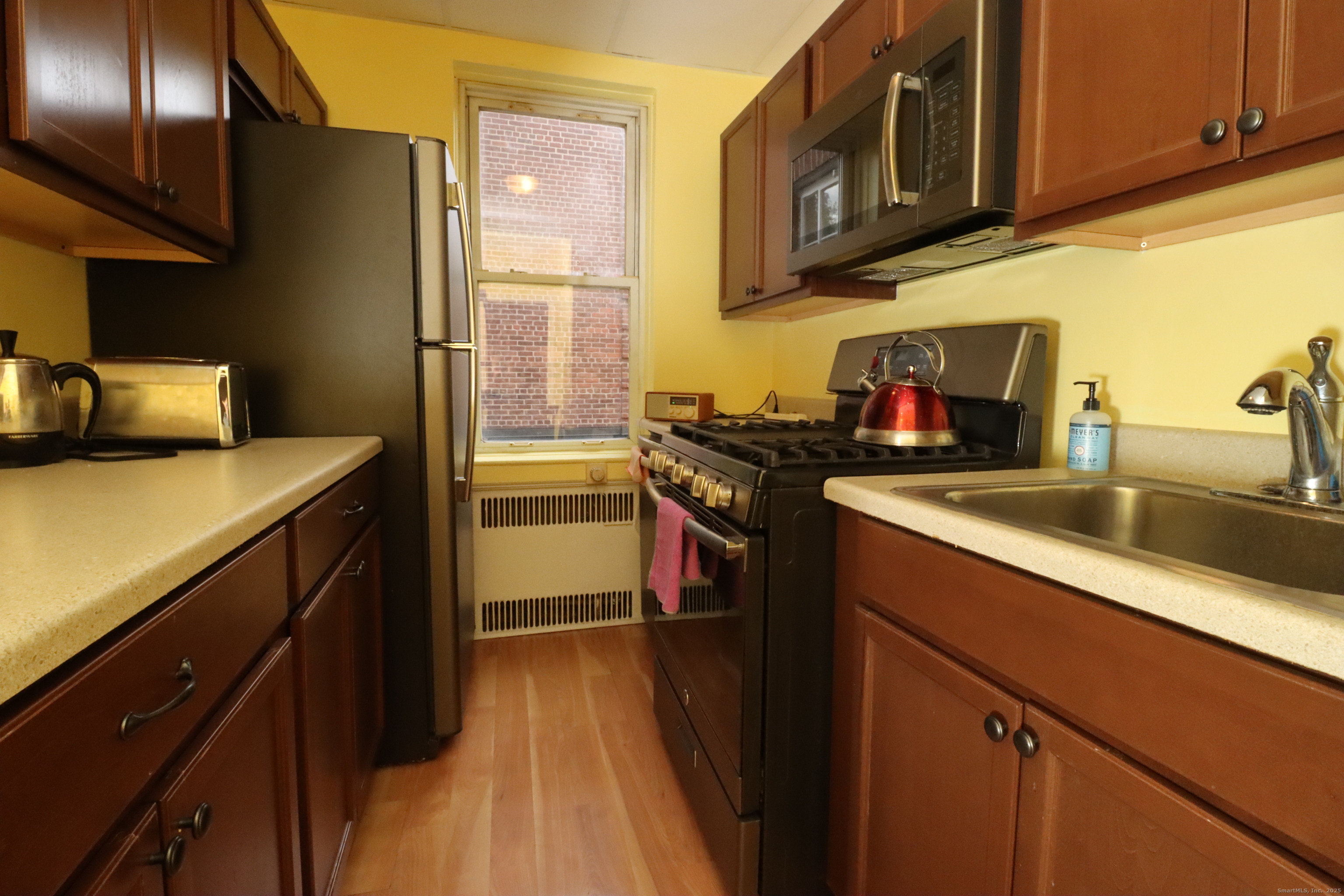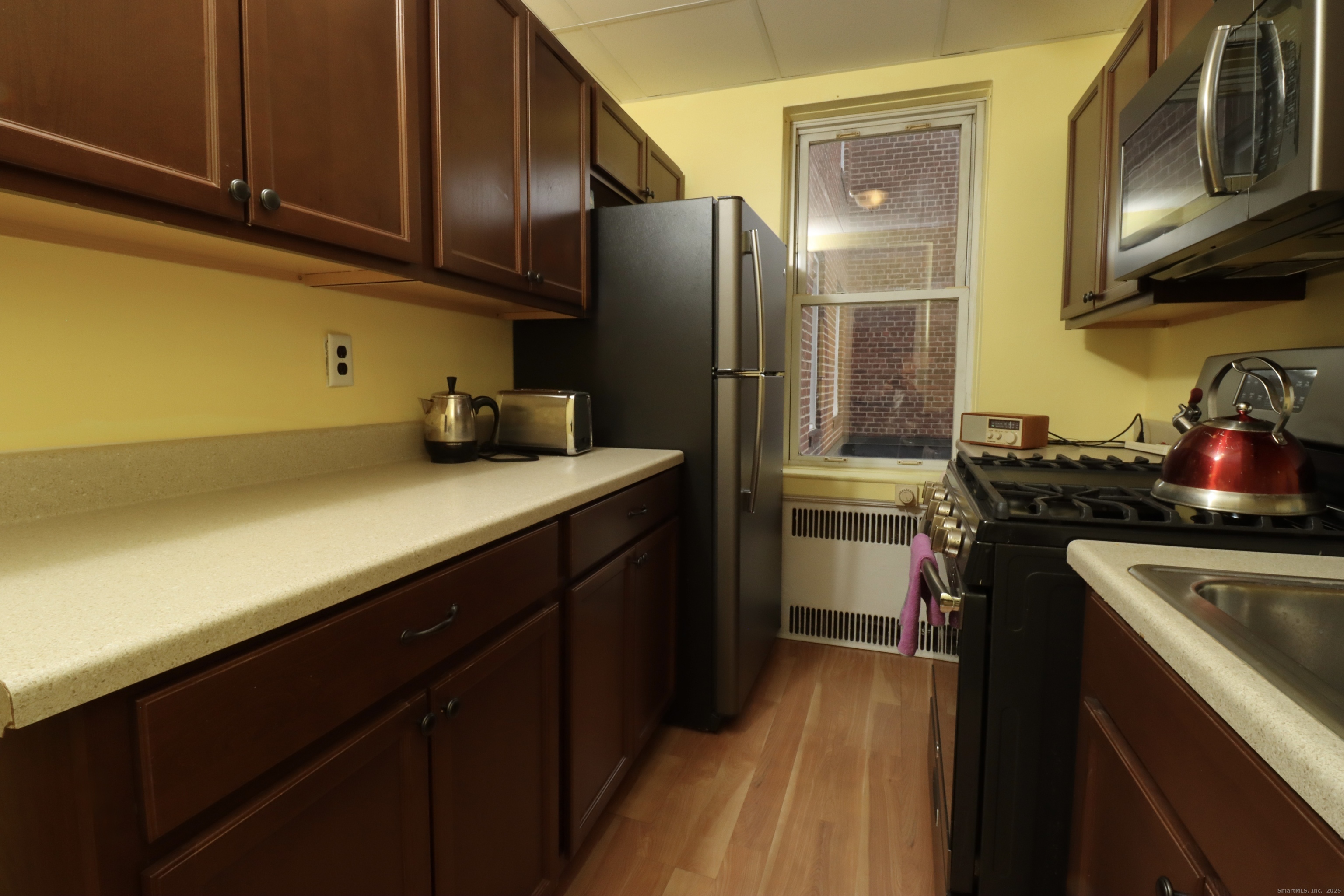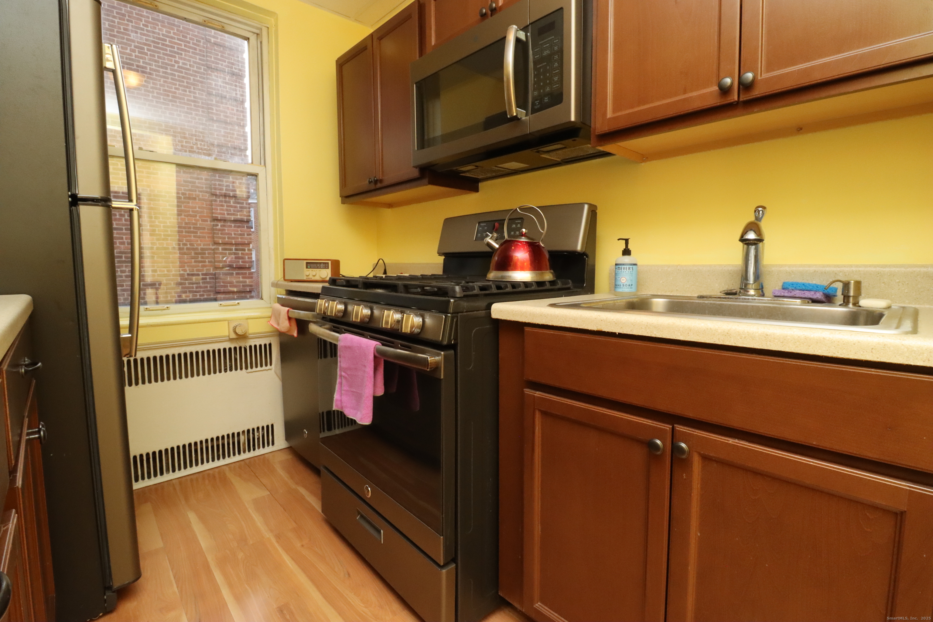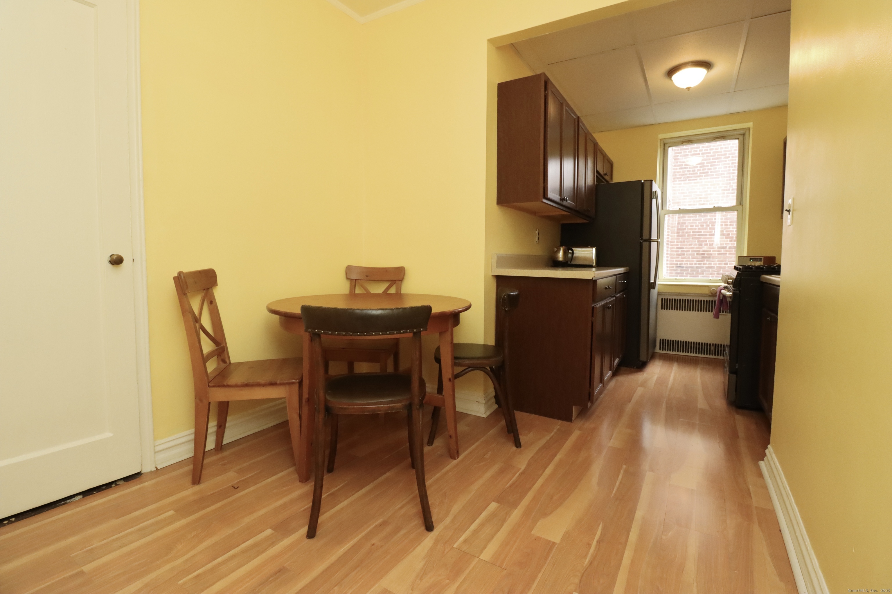 Welcome to 70 Strawberry Hill Avenue! This spacious, updated studio features classic charm with modern touches, including gleaming hardwood floors and 9-foot ceilings throughout. The kitchen has been updated, and the large open living area includes a dedicated dining space-perfect for relaxing or entertaining. The well-maintained grounds feature a peaceful center courtyard with a park-like setting. Monthly common charges cover heat and hot water, and the complex offers ample rear parking along with on-site laundry. Ideally located just steps from downtown Stamford, restaurants, Metro-North, and local parks.