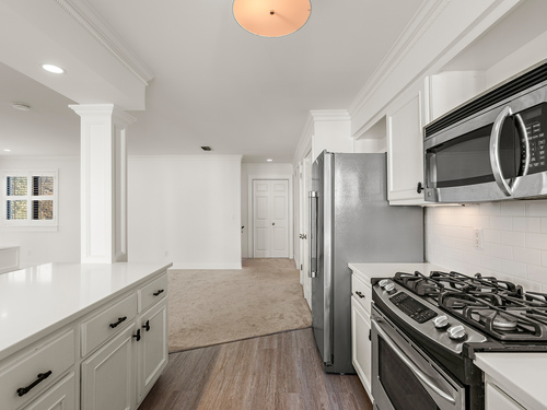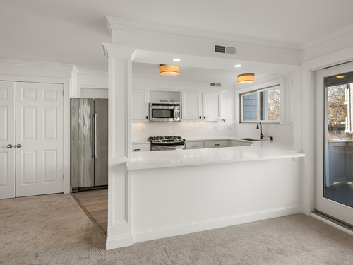 OMG! a 3-Bedroom home in the highly coveted Rowayton Woods Association w/ lake views for under $800k! Enter rising 6-steps to easy one-level, ranch-style living, this end-unit receives natural light on 3-sides, offers an large, open floor plan and a freshly painted interior w/ many recent updates including kitchen, bathrooms, lighting, carpeting & flooring and more. Large, bright Living Room/ Dining area boasts a fireplace, built-ins, plantation shutters and sliding door to your private, covered 90 sqft deck with gorgeous lake views. Beautifully updated Kitchen features bright white cabinets & quartz countertops including large breakfast bar, stainless steel appliances incl gas cooktop plus huge, double pantry cabinet. Primary Bedroom Suite is an oasis w/ lake-facing views, walk-in closet w/ built-ins & spa-like Primary Bathroom. Two additional Bedrooms share the second Full Bathroom. In-unit Laundry Room plus generous closet space throughout incl a 6 x 3 shelved, walk-in storage closet. Rowayton Woods tranquil setting features an in-ground pool, tennis court, walking trails, private lake & community garden yet is just 1-mile from Rowayton Village & 2-miles to The Sono Collection, South Norwalk, I-95, and Downtown Darien. Dedicated storage unit located in adjoining building. Your reserved space (#196) is located directly in front of the unit. Come visit today