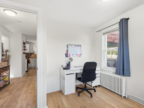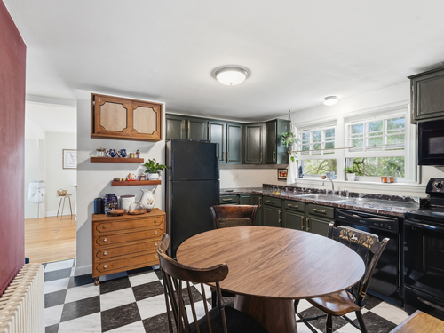 Discover this well-preserved brick multi-family home, built in 1941, offering timeless appeal and versatile living options on a spacious level double lot. Perfect for investors, extended families, or owner-occupants seeking rental income, this property features two distinct units with hardwood floors throughout, abundant natural light & thoughtful layouts as shown in the attached floor plans. The first-floor unit boasts 2 cozy bedrooms, a bright living room, an eat-in kitchen, a full bath. Flooded with natural sunlight, this unit provides a warm & inviting space with easy access to the foyer & a covered porch for outdoor relaxation. Upstairs, the second unit spans two levels with 4 generously sized bedrooms-two on the main level (including a primary) and two more on the upper floor. It includes a spacious living room, an eat-in kitchen, a full bath, and ample hall space for seamless flow. The split-level design adds privacy & flexibility, with stairs connecting the floors internally. Shared amenities enhance convenience, including a downstairs laundry room and storage area for both units. Outside, the level double lot provides plenty of green space, complemented by a detached garage for secure parking & additional storage. Nestled on a quiet, tree-lined street, this home is ideally situated close to top-rated schools, trendy restaurants & convenient shops-offering the best of suburban tranquility with urban accessibility. Don't miss this one- schedule your tour today!