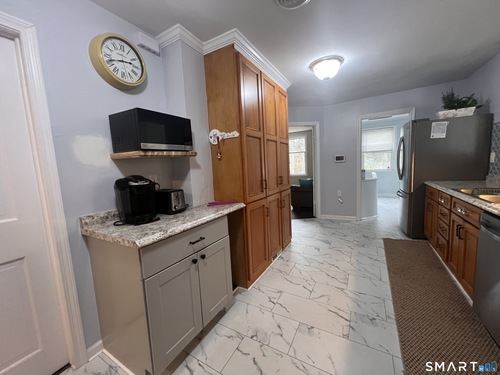 Seize this rare opportunity to own a 2-family residential property on 1.33 acres, perfectly positioned for high visibility on Pepper Street near Route 25. This expansive 12-room home offers a total of 4 bedrooms, 3 bathrooms, 2 kitchens, 2 living rooms, and a dining room across two potential units that currently function as one. With separate and updated utilities throughout, this property is an effortless "mortgage-helper" or multi-generational estate. Combined with I2 Industrial Zoning, it delivers on every level-whether you seek a home-based business location, a contractor's yard, or a future development. opportunity. The property location provides the abundant parking and exposure required for an auto enthusiast, landscaper, electrician, or HVAC professional, while the backyard remains a true sanctuary. A portion of the acreage consists of protected wetlands, ensuring a permanent privacy buffer and lush views leading to a private wooden bridge over a babbling brook. From there, enjoy direct access to the Rails-to-Trails system for miles of hiking and biking right from your back door. Rest easy with a brand-new roof 2025, independent AireForce heat pumps 2021/2025, and modernized kitchens and bathrooms featuring stainless steel appliances and new cabinetry 2021-2025. Home is currently as one unit, but can easily be separated if needed.