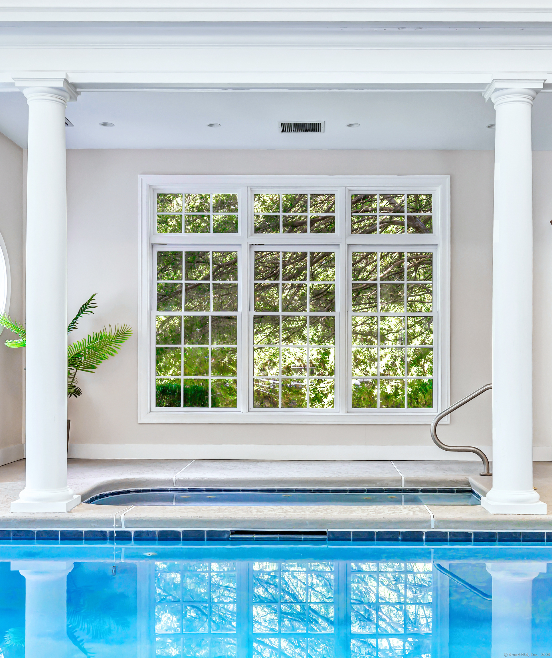 Welcome to 1 Boxwood Lane, a private estate where timeless design meets a lifestyle centered on wellness, balance, &renewal. Set on a coveted quiet lane, the circular drive & stone walls introduce a sense of calm while sweeping lawns & specimen plantings create a serene, park-like environment worlds away from daily stress. Inside, sun-drenched interiors open seamlessly through French doors & expansive windows. The open layout encourages effortless living, anchored by a recently renovated custom Chef's Kitchen-perfect for nourishing gatherings & everyday enjoyment. Architectural details, intricate millwork, & graceful transitions between living & dining areas reflect craftsmanship rarely seen today. Designed as a true personal retreat, the home offers spaces that support both mind & body. The Primary Suite w/ fireplace & spa-inspired bath provides restorative comfort, complemented by 3 additional en-suite bedrooms & a second-floor Family Room offering options. A private Office w/fireplace creates a peaceful work-from-home sanctuary. At the heart of the home's wellness experience is a heated indoor Pool & Spa, visible from the private Home Gym-offering year-round opportunities for fitness, relaxation & stress relief in a resort-like setting. Whether swimming, training, or unwinding poolside, this space elevates daily living into a holistic lifestyle.1 Boxwood Lane offers a rare year-round country club atmosphere-designed for wellness, connection, and effortless luxury.