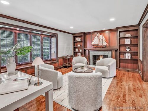 Book Shelves, Built-Ins, Fireplace, Hardwood Floor