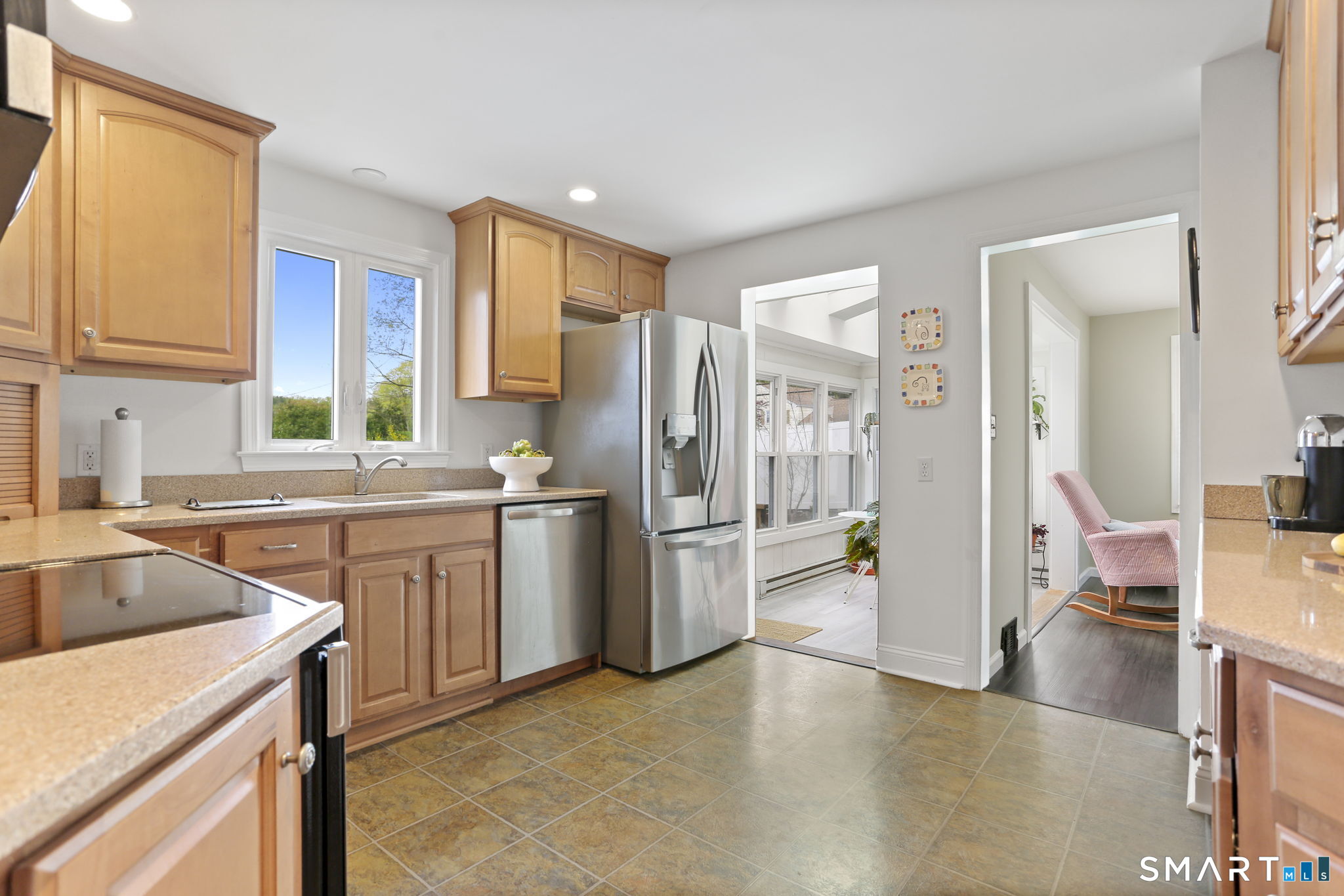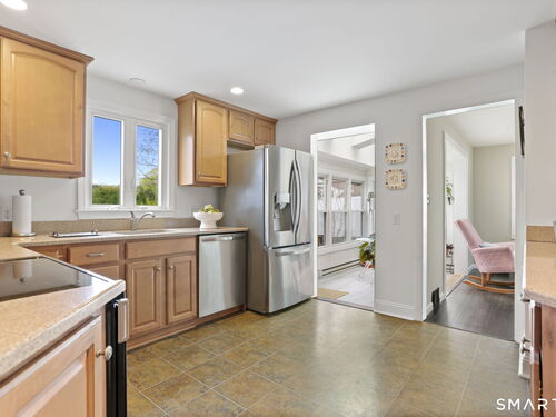 Welcome to one of the most charming Homes in Fairfield located in a prime University location. This 4 Bedroom home is set on a beautiful property designed for making the most of all seasons-whether you're cooling off in the pool, hosting dinners on the deck under the pergola, enjoying quiet mornings on the front porch or getting cozy in front of the wood-burning fireplace. Inside, the home offers a wonderful blend of comfort and character. The spacious living room is perfect for gathering, while the cozy family room with fireplace and built-ins invites you to slow down and unwind. The kitchen, featuring stainless steel appliances, opens to a cheery sunroom-an ideal spot for breakfast where your plants can thrive all while offering views of the lush private backyard. A first-floor bedroom adds flexibility for guests or easy one-level living with a full bathroom nearby. Upstairs, the primary bedroom and two additional bedrooms provide peaceful retreats, all complemented by an updated bath. The lower level offers even more space for a playroom, home office, or movie nights. And there's more...a studio with heating and cooling (former garage) is a versatile space for work, exercise or creating. Thoughtfully updated and meticulously maintained, with recent improvements including the roof, central air, deck, porch and more. This home has been loved and is truly move-in ready. From sun-soaked afternoons to warm evening gatherings, this is a place where memories are made.