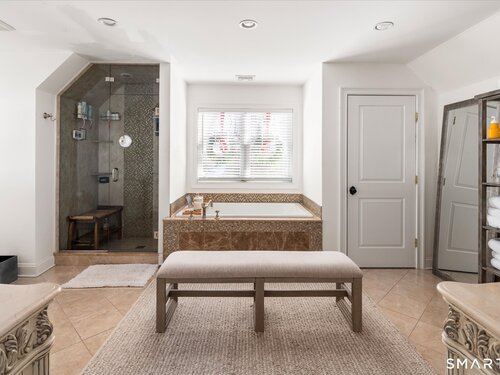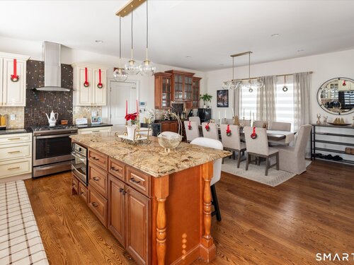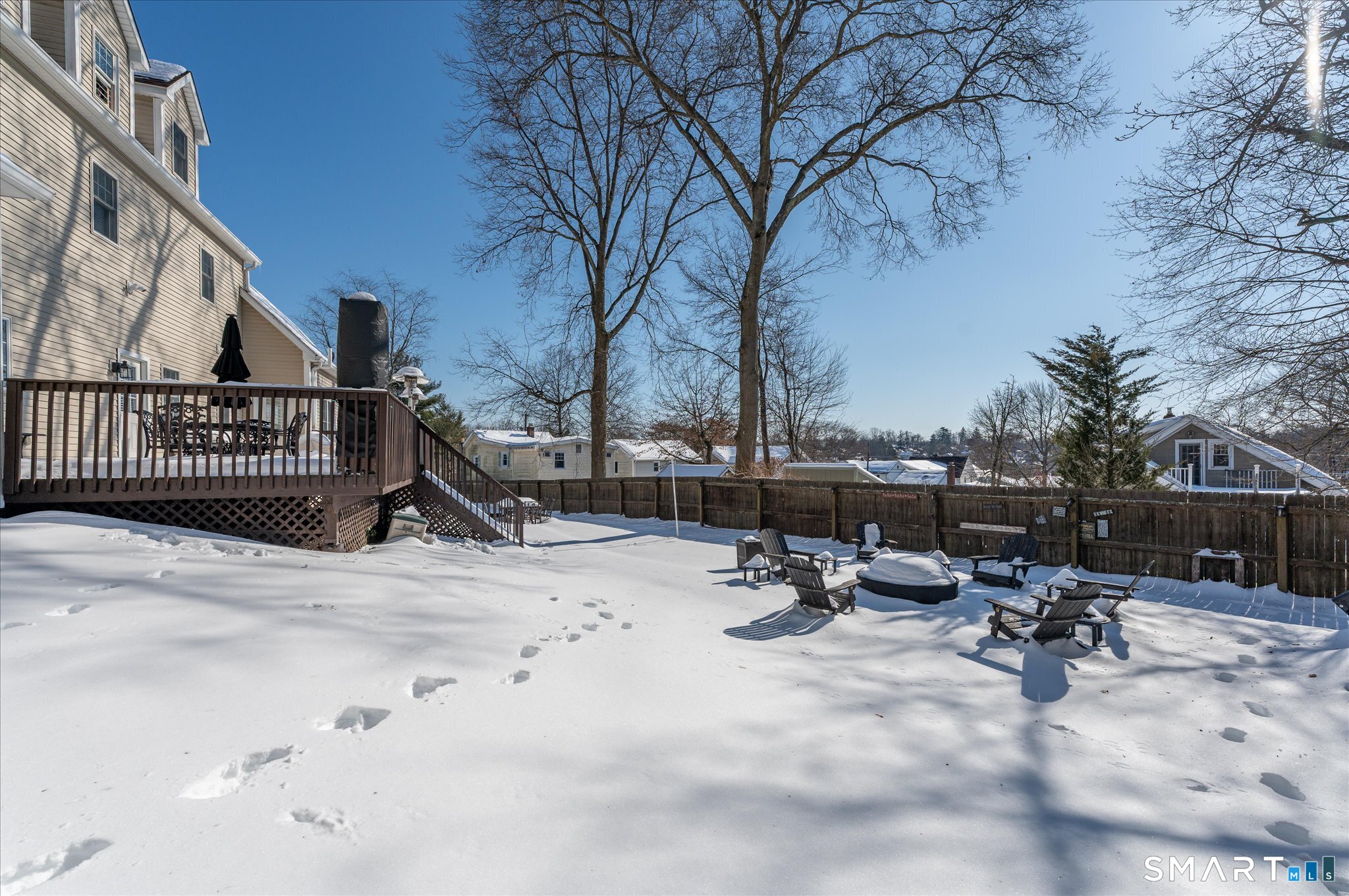 Custom built Colonial with nine foot ceilings on the first level and many custom features. The original home was torn down and this home was rebuilt from the ground up. Spacious living room with natural gas log fireplace. Dining and kitchen are combined for a modern open look. The dining area boasts a built-in cabinet. The kitchen features a large walk-in pantry for your storage needs, a breakfast island with granite counters and stainless-steel appliances. Additionally, there is access to a huge deck and stairs to the rear yard and patio right off the kitchen. There is a guest bedroom on the main level. The upper level features a luxurious master suite with whirlpool tub, private shower with steam, two individual vanities, linen closet, huge walk-in closet and hardwood floor. The three additional bedrooms feature large closets and hardwood floors. The third level features a large room with walk-in closet which could be a great room or additional bedroom. The home has natural gas hot air heat and central air conditioning. The two car garage affors easy access to the kitchen. Public transportation and shopping are within walking distance. This is a home you won't want to miss!