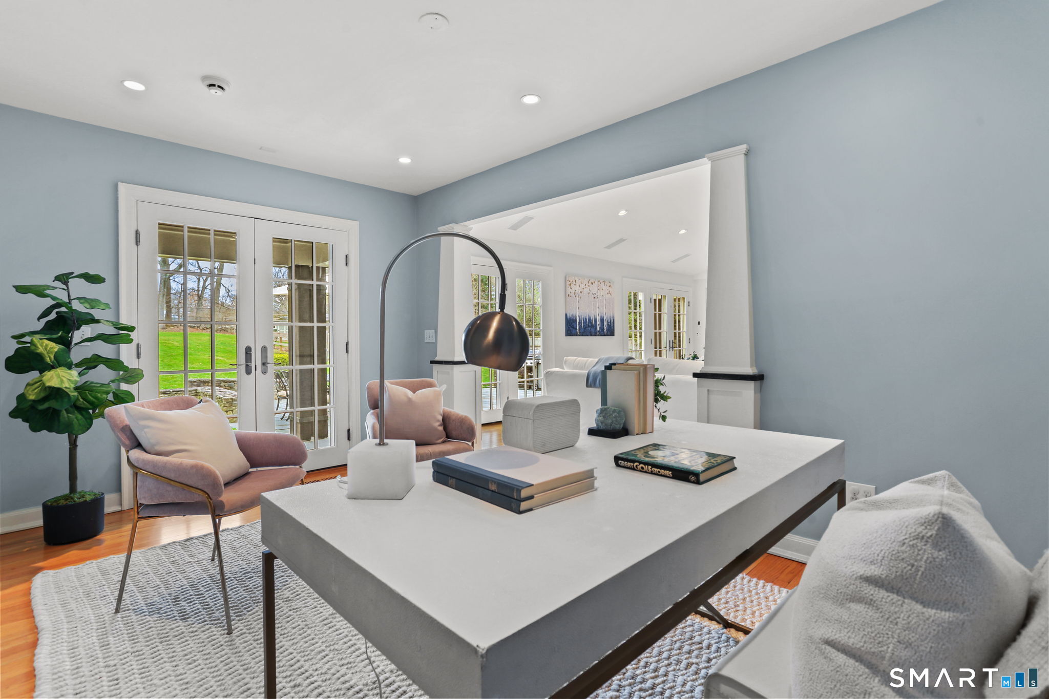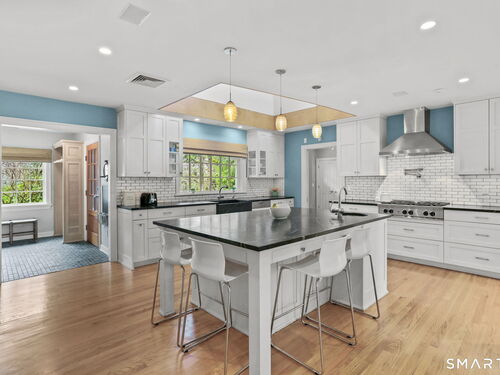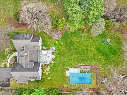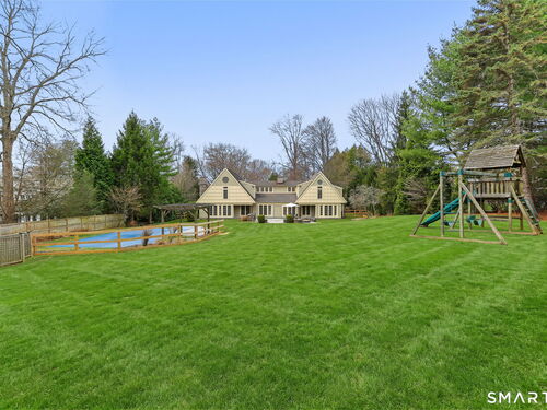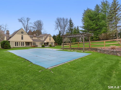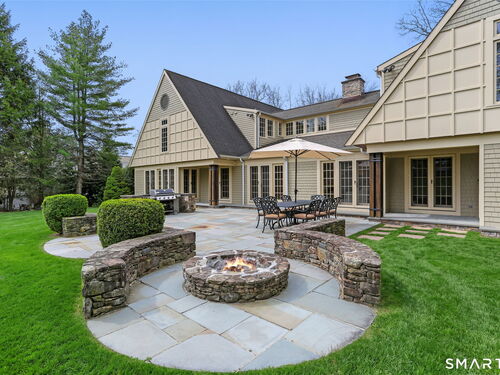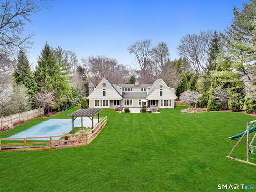 Experience the pinnacle of luxury living in this exceptional 4,600 sq ft, 5-bedroom home, ideally located in highly sought-after Old Hill. Perfectly positioned on a pristine 1-acre lot, this stunning home offers a rare "walk-to-everything" lifestyle-just steps from shopping, top-rated restaurants, and Earthplace. Designed for both elegant entertaining and everyday comfort, the home features an open-concept floor plan enhanced by timeless architectural details and modern upgrades. Sun-drenched living spaces on the main level include a gourmet kitchen, formal living room, dining area, family room, office, and a versatile pool cabana or fitness room-all seamlessly opening to an expansive patio for effortless indoor-outdoor living. Two first-floor ensuite bedrooms provide flexible accommodations. Upstairs, the luxurious primary offers a private retreat, complemented by a large playroom, laundry room, and two additional bedrooms with a shared bath-creating a versatile layout. The resort-style outdoor setting is equally impressive, featuring a gunite pool with spa, pergola, fire pit, outdoor grill area, vegetable garden, and a fully integrated lighting and sound system. Mature, century-old trees, curated specimen plantings, and extensive stonework create a private, park-like oasis. For the buyer seeking privacy while being near all the amenities that Westport has to offer, this extraordinary property combines classic elegance, modern amenities, and an unbeatable location.