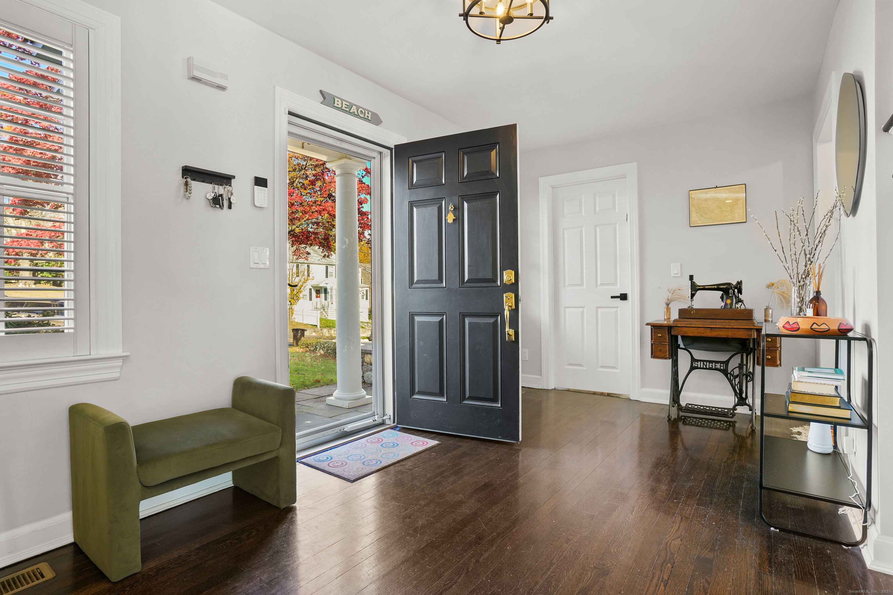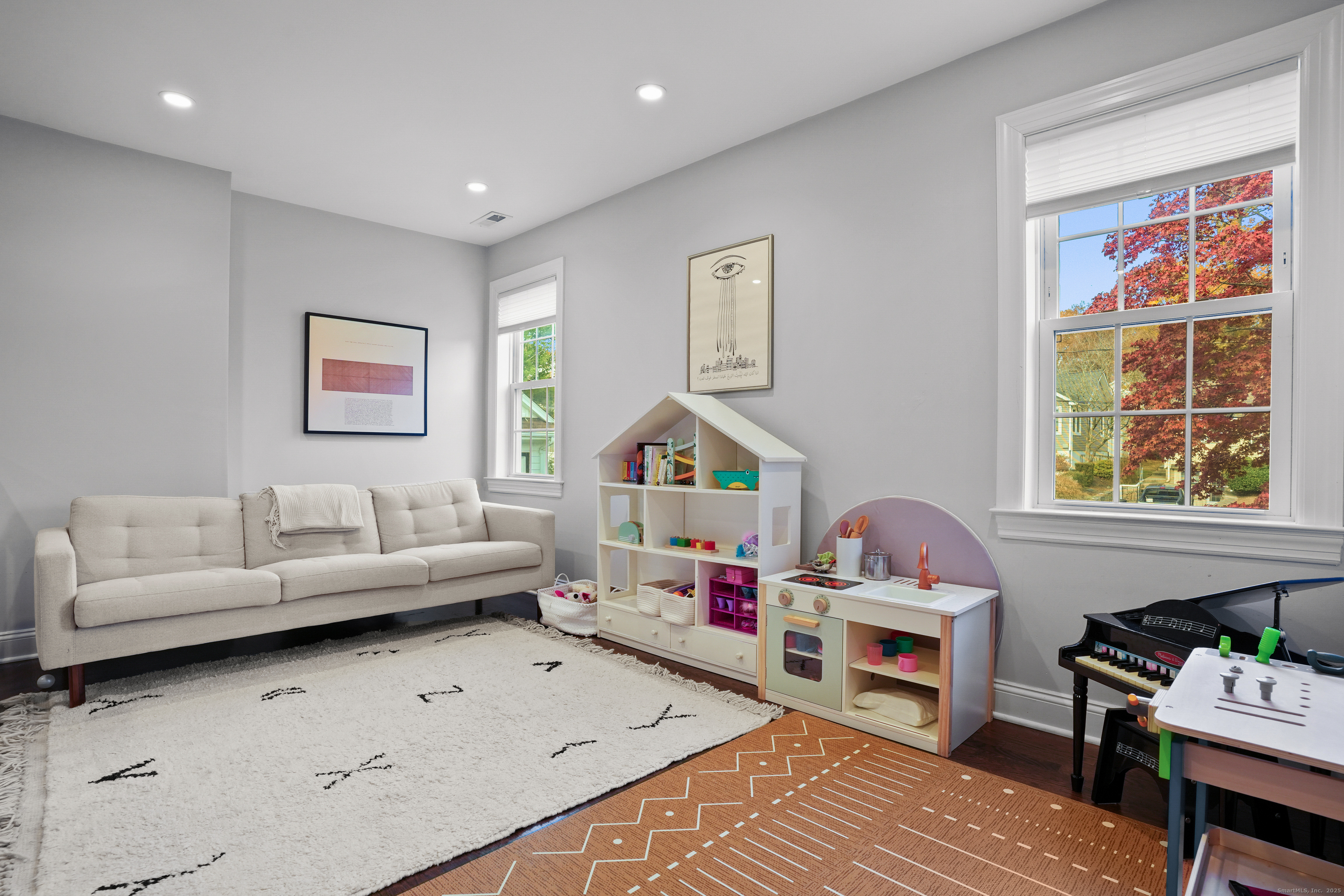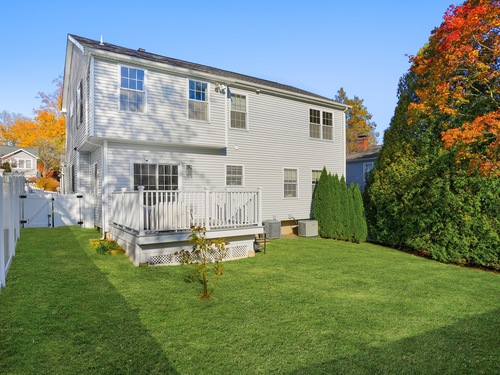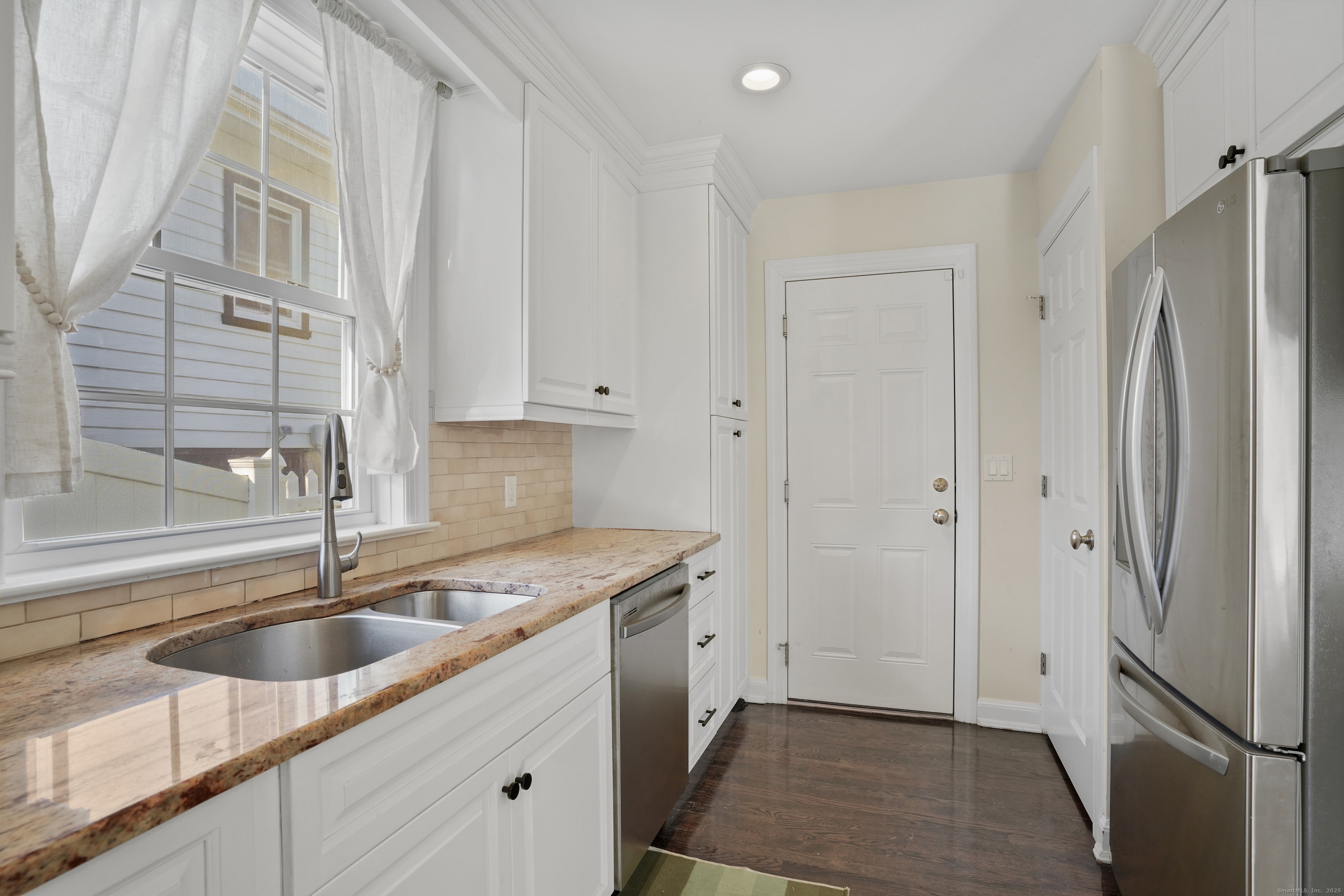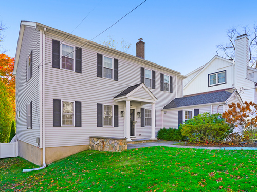 Welcome to this beautifully reimagined 4-bedroom, 3 full-bath home in the heart of Stamford. Rebuilt between 2012-2016, including a full second-floor addition, and thoughtfully updated since, it offers the modern comfort and elegance of a newer construction. Sunlight fills the interior, highlighting refined finishes and a warm, sophisticated atmosphere. The main level features a gracious entry with a working wood-burning fireplace, a marble full bath, a versatile bedroom, an inviting living room, and a dining room with sliders to a freshly repainted deck. The updated kitchen offers granite countertops, freshly painted cabinetry, new appliances, and convenient garage access. Upstairs, the luxurious primary suite includes a walk-in closet and a spa-like en-suite bath. Two additional bedrooms share a stylish full hall bath, complemented by a dedicated laundry room with a folding counter, and a versatile playroom/bonus space completes the upstairs. A full-length attic provides exceptional storage. The beautifully maintained flat yard includes an in-ground sprinkler system and full privacy fencing. Perfectly located for convenience, this home is a stone's throw to grocery stores, cafes, parks, and shopping, and under 10 minutes to the Stamford, Glenbrook, and Springdale train stations. This stunning residence is one you won't want to miss.