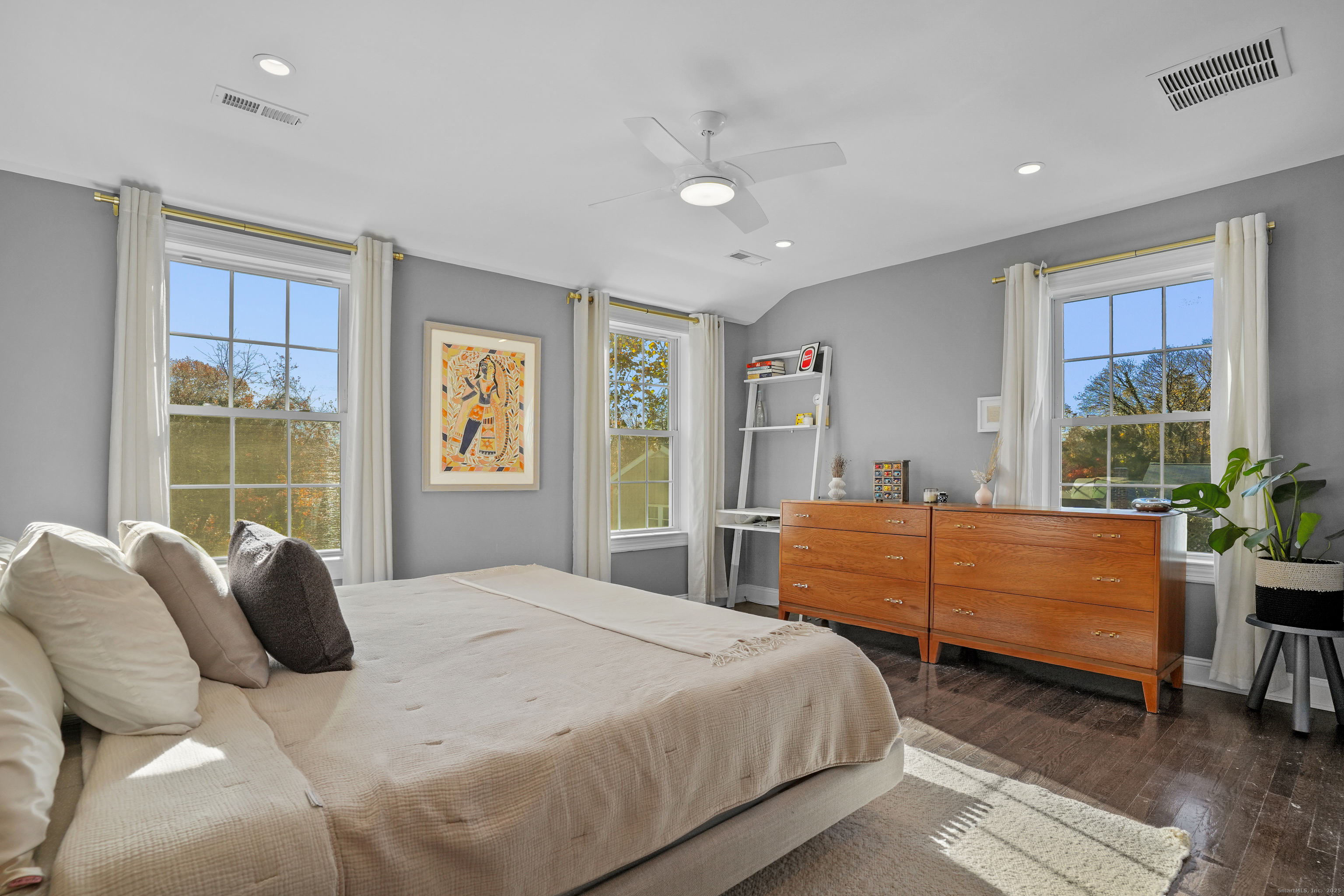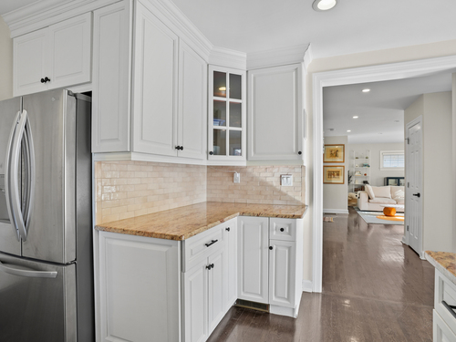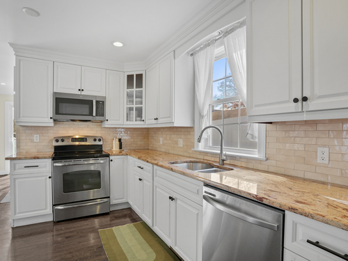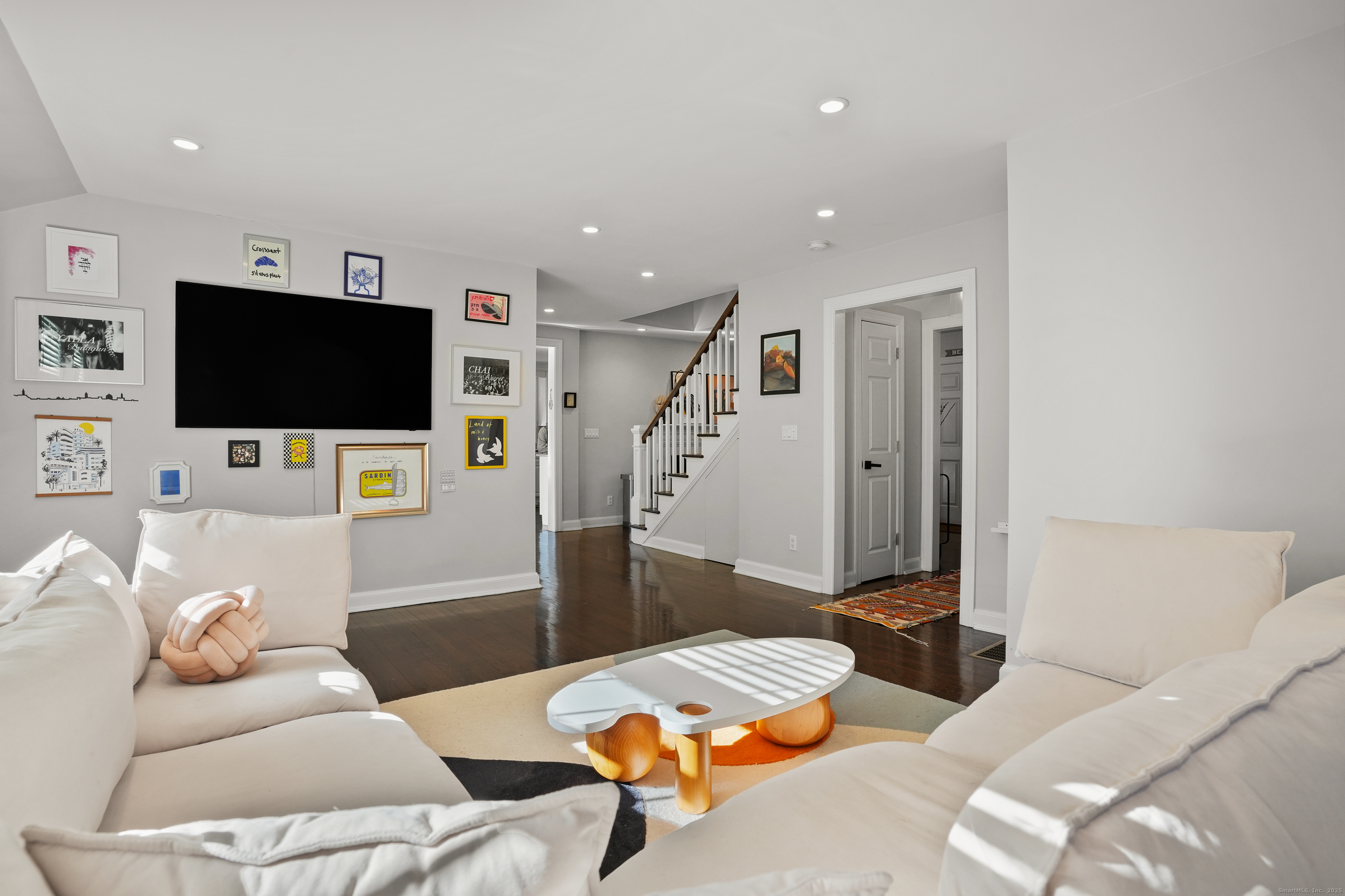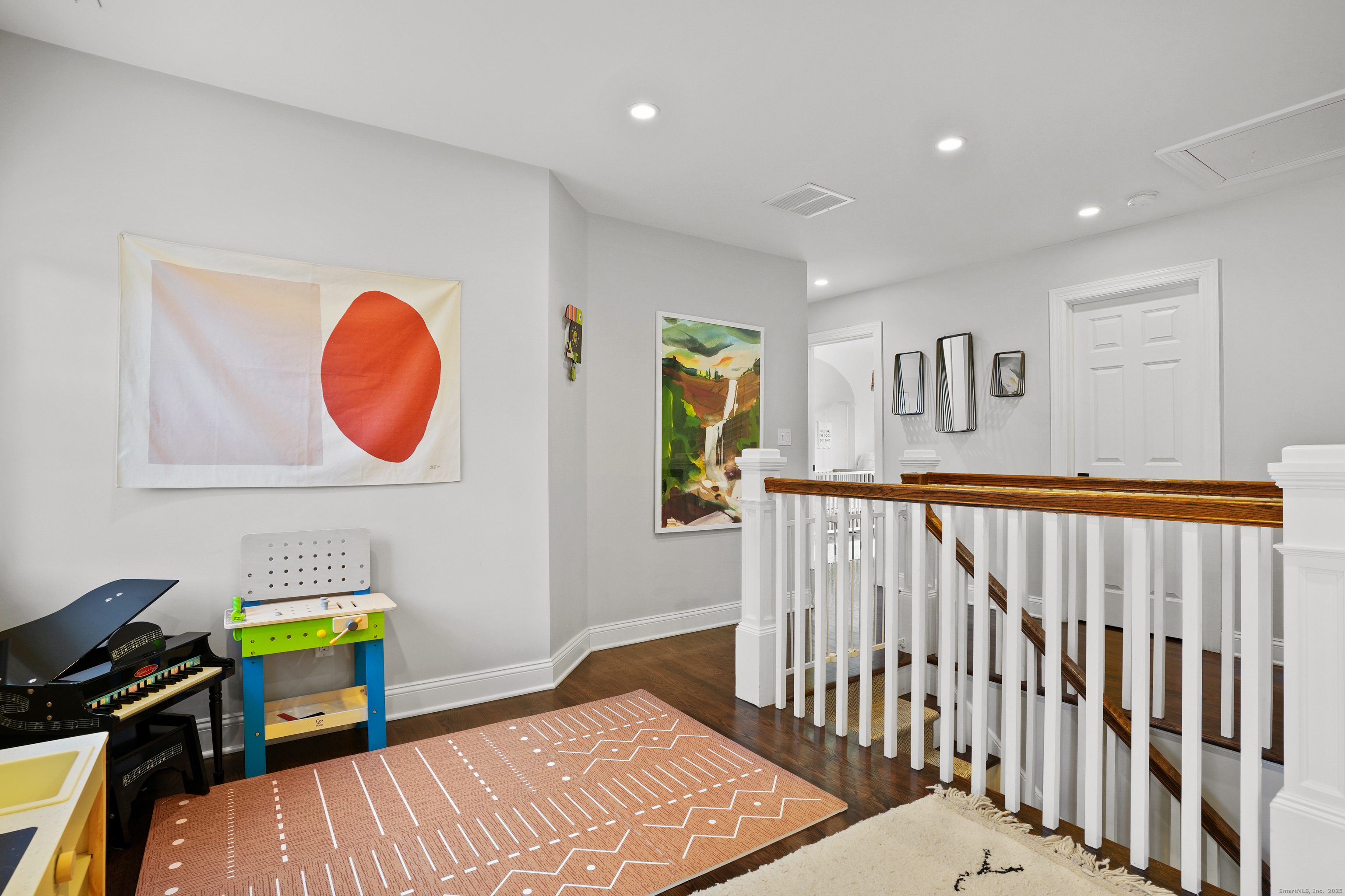 Welcome to this beautifully reimagined 4-bedroom, 3 full-bath home in the heart of Stamford. Rebuilt between 2012-2016, including a full second-floor addition, and thoughtfully updated since, it offers the modern comfort and elegance of a newer construction. Sunlight fills the interior, highlighting refined finishes and a warm, sophisticated atmosphere. The main level features a gracious entry with a working wood-burning fireplace, a marble full bath, a versatile bedroom, an inviting living room, and a dining room with sliders to a freshly repainted deck. The updated kitchen offers granite countertops, freshly painted cabinetry, new appliances, and convenient garage access. Upstairs, the luxurious primary suite includes a walk-in closet and a spa-like en-suite bath. Two additional bedrooms share a stylish full hall bath, complemented by a dedicated laundry room with a folding counter, and a versatile playroom/bonus space completes the upstairs. A full-length attic provides exceptional storage. The beautifully maintained flat yard includes an in-ground sprinkler system and full privacy fencing. Perfectly located for convenience, this home is a stone's throw to grocery stores, cafes, parks, and shopping, and under 10 minutes to the Stamford, Glenbrook, and Springdale train stations. This stunning residence is one you won't want to miss.