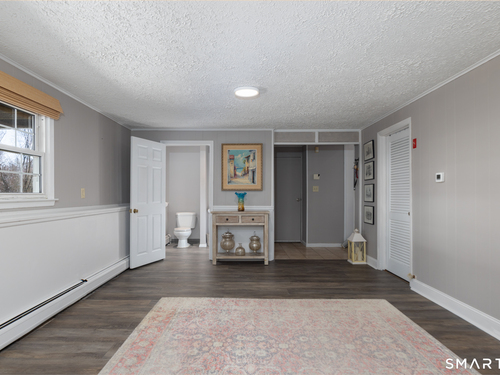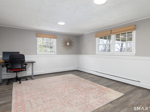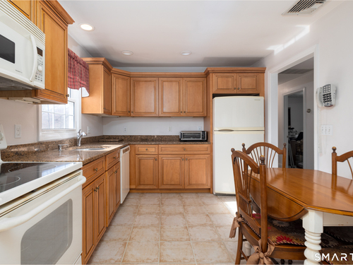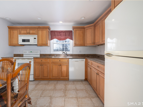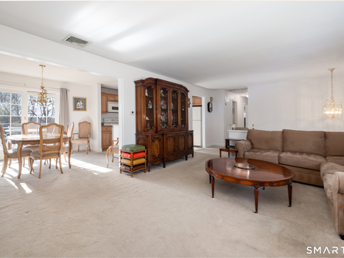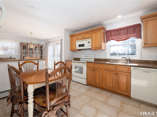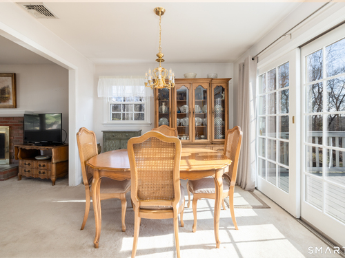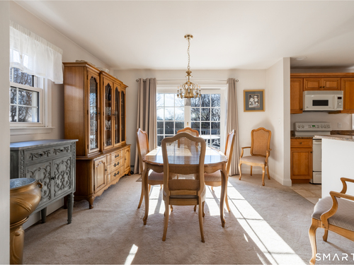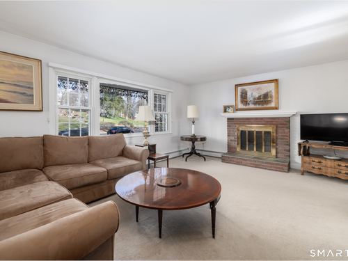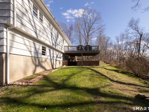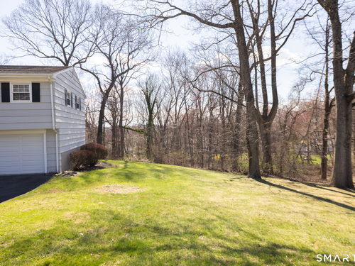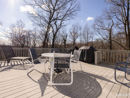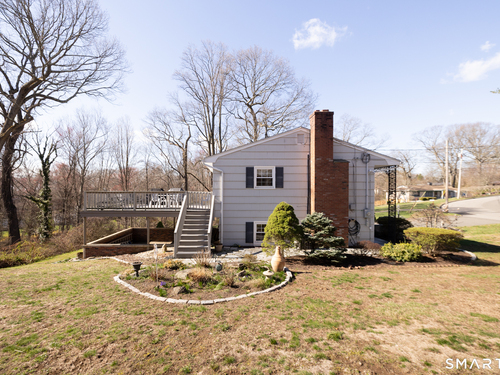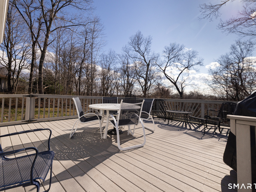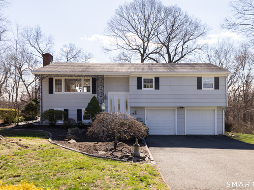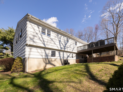 Immaculate, pristine and very well maintained describe this lovely Trumbull home. Comfort and functionality in a peaceful, sought-after area. The bright and light main level features a living room with a cozy wood-burning fireplace, hardwood floors throughout (under carpet), and a dining room with sliders leading to a gorgeous deck overlooking a lightly wooded yard-perfect for relaxing or entertaining. The eat-in kitchen includes granite countertops and tile flooring. Lots of counter and cabinet space! This home offers three bedrooms, including a primary bedroom with a half bath, plus an additional full bath on the main level. The finished lower level adds valuable living space with laminate flooring, a half bath, laundry area, and extra storage.
