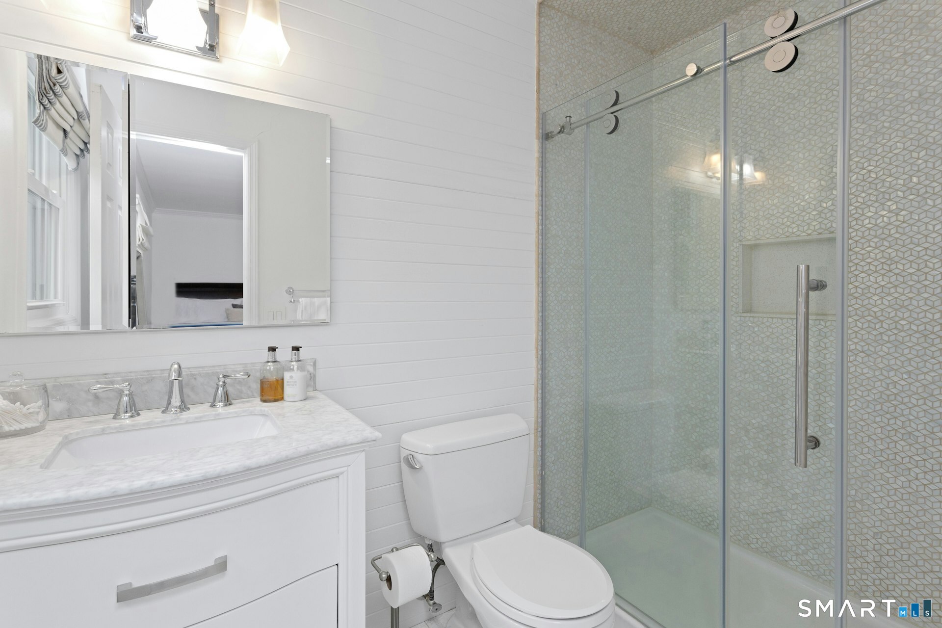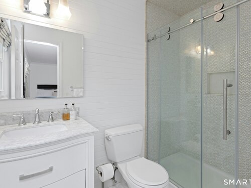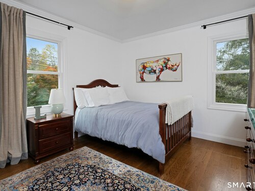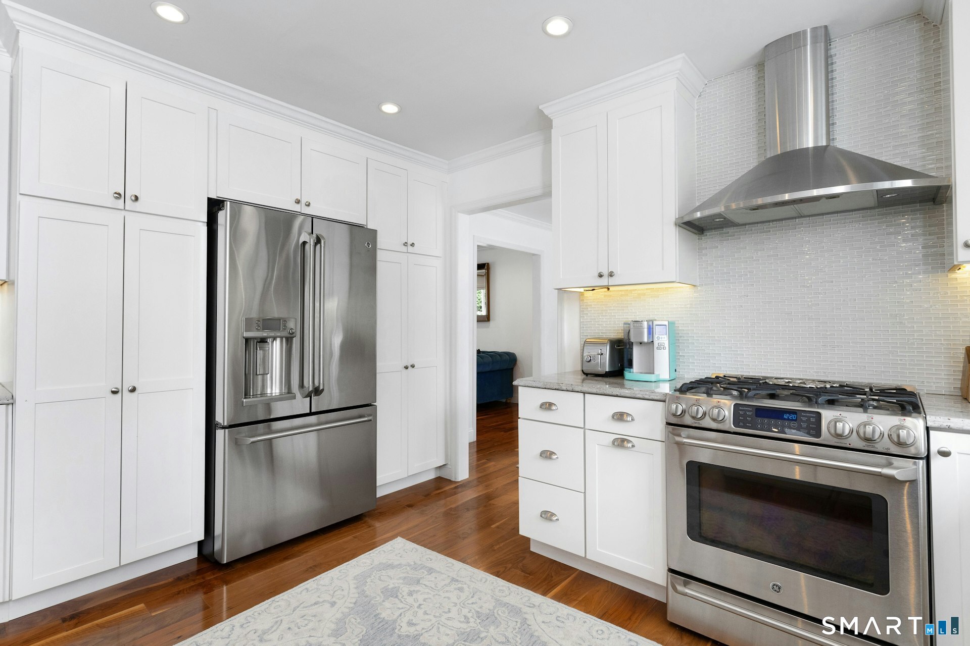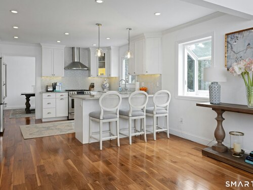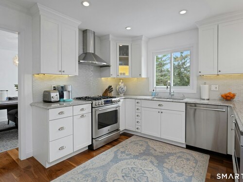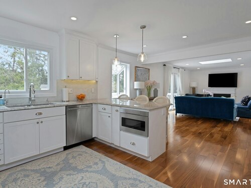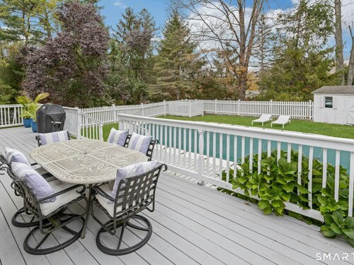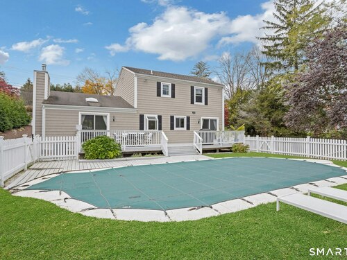 Enjoy serene living in the desirable Banksville area of Greenwich. This inviting home features a sun-filled kitchen that flows into a spacious family room with a gas fireplace and sliders leading to the backyard and pool. Upstairs, the primary bedroom includes an en-suite bath, accompanied by two additional bedrooms and another full bathroom. Outside, the level yard is bordered by mature landscaping-perfect for relaxing or entertaining. A deep two-car garage adds convenience with plenty of room for bicycles and extra storage.