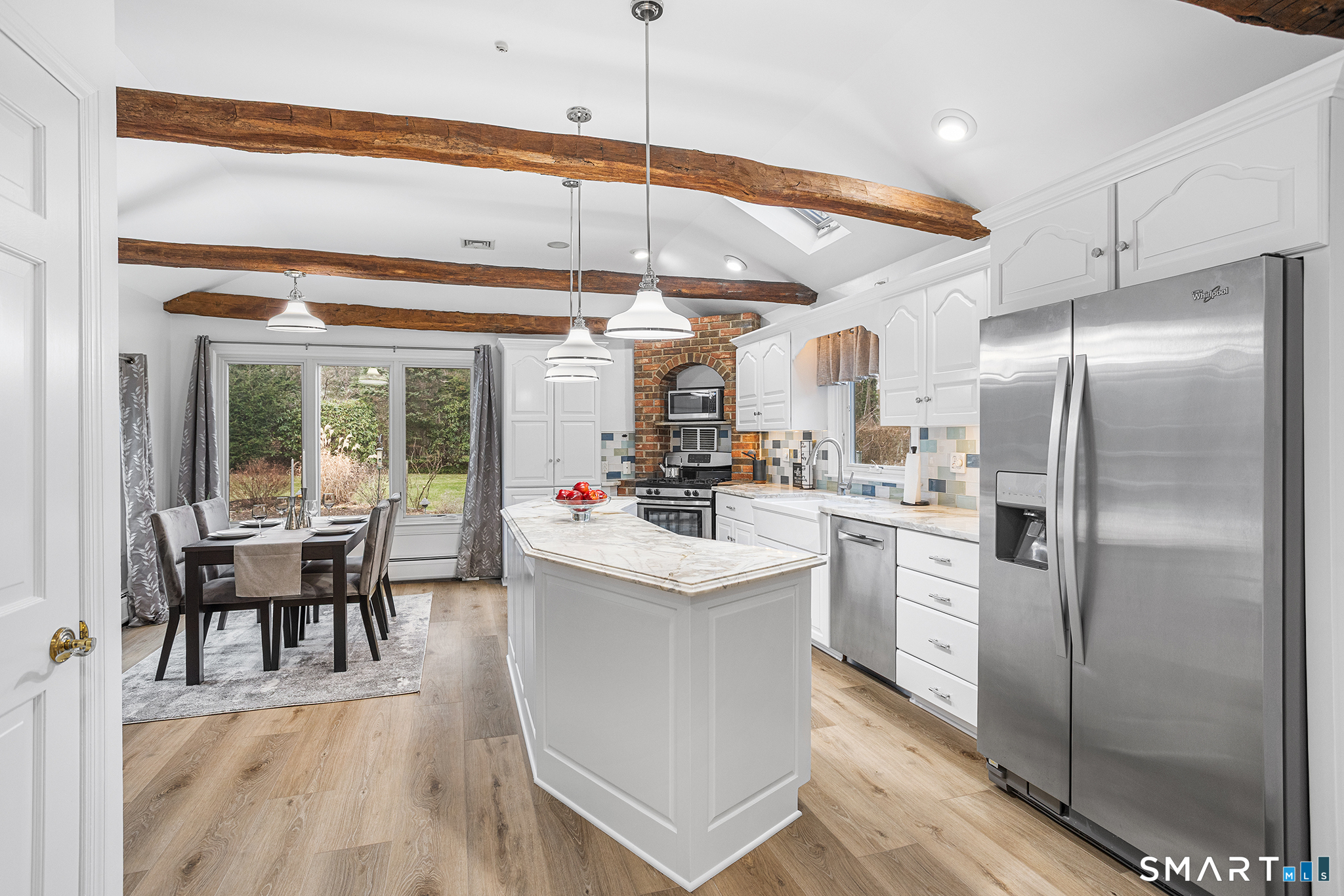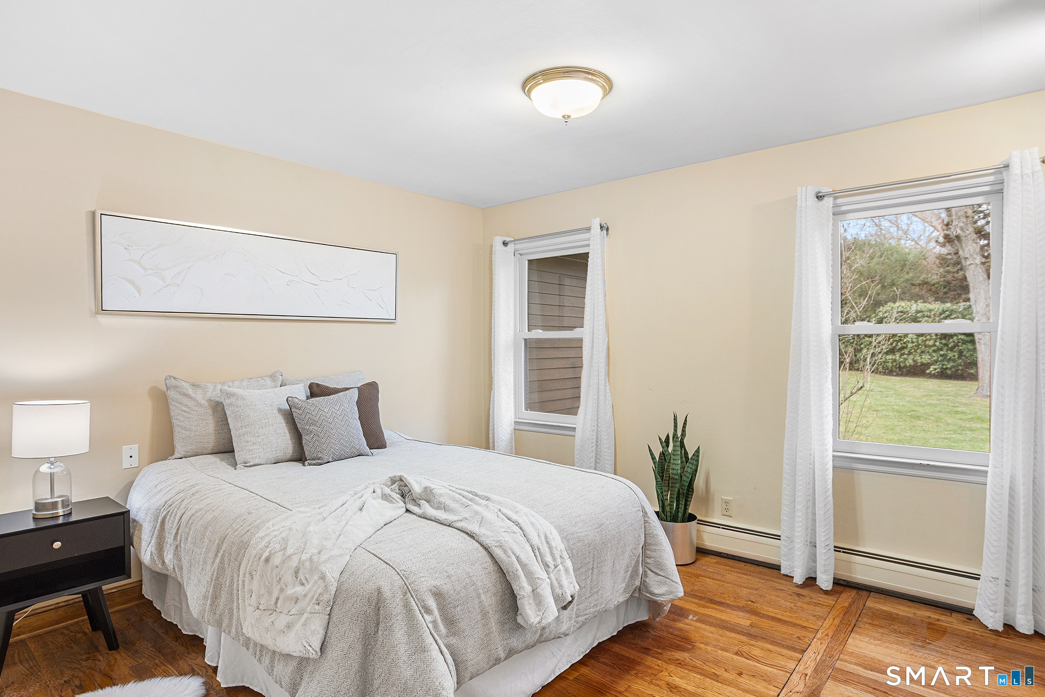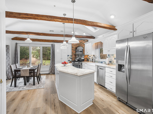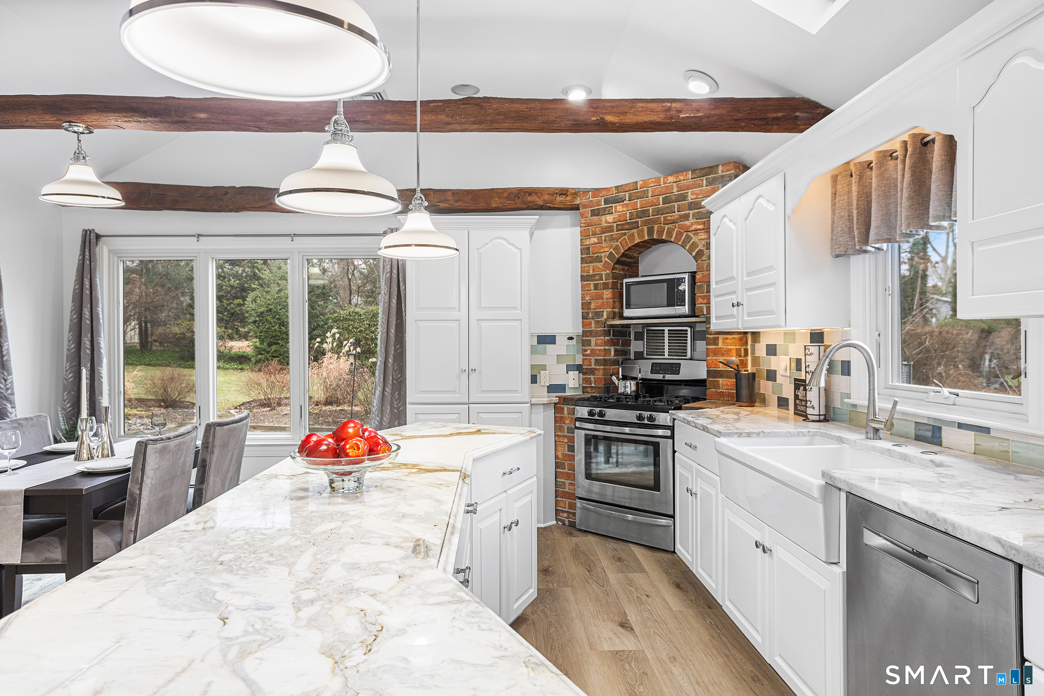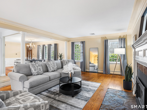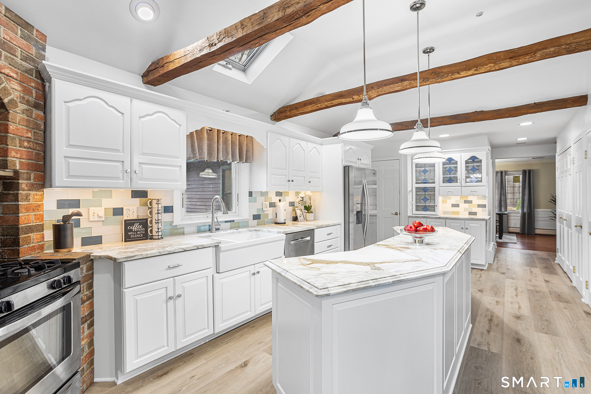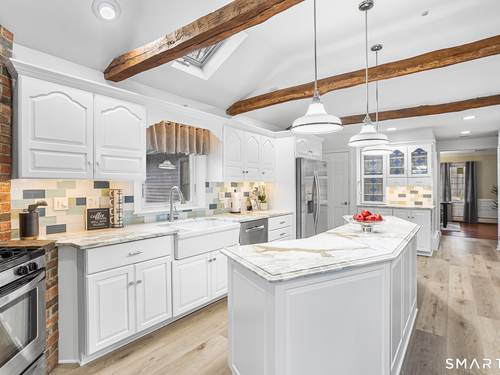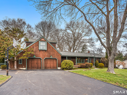 Truly special! Custom-built, this architecturally striking ranch is perched on a manicured lot in a lovely residential pocket of Fairfield close to everything! The charming covered porch beckons you inside where you'll find gleaming hardwood floors, fine millwork, and spectacular windows throughout the sprawling, versatile floorplan. Wonderful sightlines & an uncanny airiness make entertaining a breeze! The recently remodeled chef's kitchen is the true heart of the home with brick & beam accents, custom stone countertops, farmhouse sink, exceptional storage / pantry space, & large bfast nook. Fireplaced living room w handsome built-ins opens to the dining area, while the expansive family room features wainscoting & custom flooring creating the perfect spot to unwind! Two BRs (or combine into 1 huge suite!) round out main level. Primary features a massive walk-in closet & the bathroom is custom tiled w double vanity & frameless shower. Upstairs, 2 well-sized BRs with great closet space share an updated bath. The ultra-private fenced rear yard is a gardener's delight with professional landscaping, multiple planting beds, & a slate patio to enjoy al fresco dining. Oversized attached 2 car garage w loft. AC & newer gas heat, newer windows, freshly sealed driveway, & exterior recently painted. Enjoy the best of Fairfield w endless dining & retail options within minutes. Top schools / walk to elementary, easy access to the Merritt. Truly a special home in a special neighborhood!
