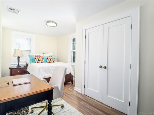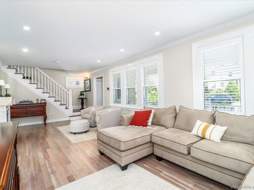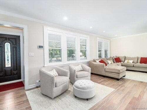 Welcome to this beautifully renovated Shippan Colonial that perfectly blends modern updates w/classic charm. With 5 BRs, 2.5 baths, & multiple flex spaces, this home offers comfort & versatility. An inviting front porch sets the tone, while inside, the open flow allows light to pour in from all windows. The spacious LR flows seamlessly into the DR & showstopping kitchen w/quartz waterfall countertops, s/s appls, pantry & abundant cabinetry-perfect for everyday living & entertaining. Beyond the kitchen are 2 BRs & a full bath creating the perfect opportunity for a 1st flr primary suite, guest space, or home office. Upstairs, offers 3 add'l BRs & an updated bath plus a finished walkup attic ideal as an office, hangout space or gym plus add'l storage. The fully finished LL w/ separate entry & garage access, expands your options w/ a half bath, kitchenette, laundry & oversized media/family room-great for entertaining or multi-gen living. The attached 2 car heated & insulated garage is large enough to accommodate add'l storage. Outside, enjoy an oversized yard w/ plenty of room to play, garden, or relax. A covered patio provides a cozy retreat for outdoor dining & lounging or can be used as a carport. While perfect the way it is, there is also plenty of expansion potential. Minutes from I-95, Metro North & Downtown, the highlight is a short walk to Brennan's, Cummings Park & West Beach! Don't miss your chance to own in one of Stamford's most sought after communities! R6 zoned.