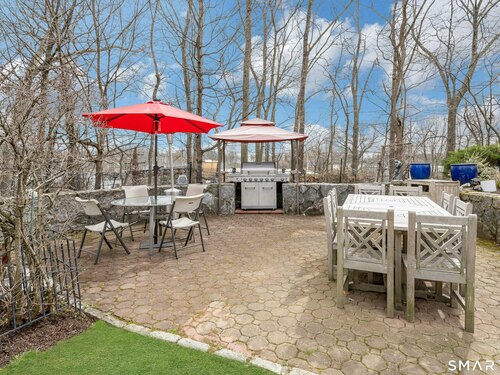 11 Charcoal Rd offers a compelling combination of space (2,032 sf plus 672 sf finished lower level), light, and thoughtful investment in a convenient Norwalk setting. A welcoming family room with exposed beams and a large picture window creates a bright, comfortable focal point. The home's layout flows easily through dining, living, and eat-in kitchen areas. Upstairs are four well-proportioned bedrooms with good natural light and a hall bath, an increasingly valuable offering at this price point. A wood-paneled first-floor office/den with a full closet offers flexible use for work-from-home, guest space, or alternate needs. The finished lower level adds additional room for recreation, hobbies, or storage. A dedicated laundry room functions as a practical mudroom entry, complemented by a two-car garage. Outdoor living includes a screened-in porch, patio, and level .58-acre yard enhanced by a substantial retaining wall and landscaping investment. Set on a quiet cul-de-sac with half-acre properties, where seasonal foliage enhances privacy. Convenient to Norwalk amenities, transportation, nearby schools along Highland Avenue, and the Rowayton village area. Propane boiler and on-demand domestic hot water.