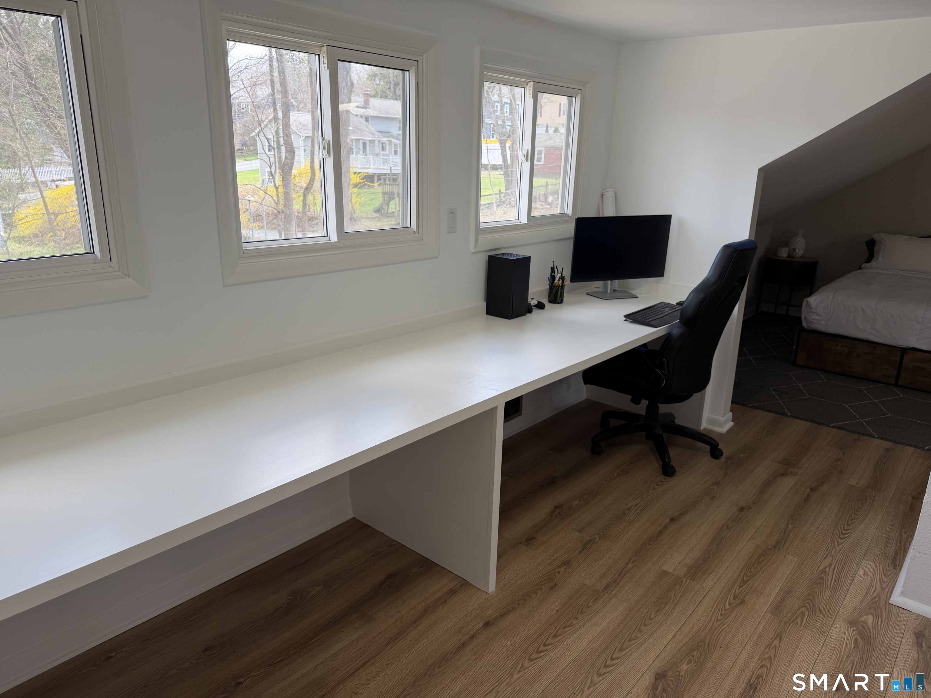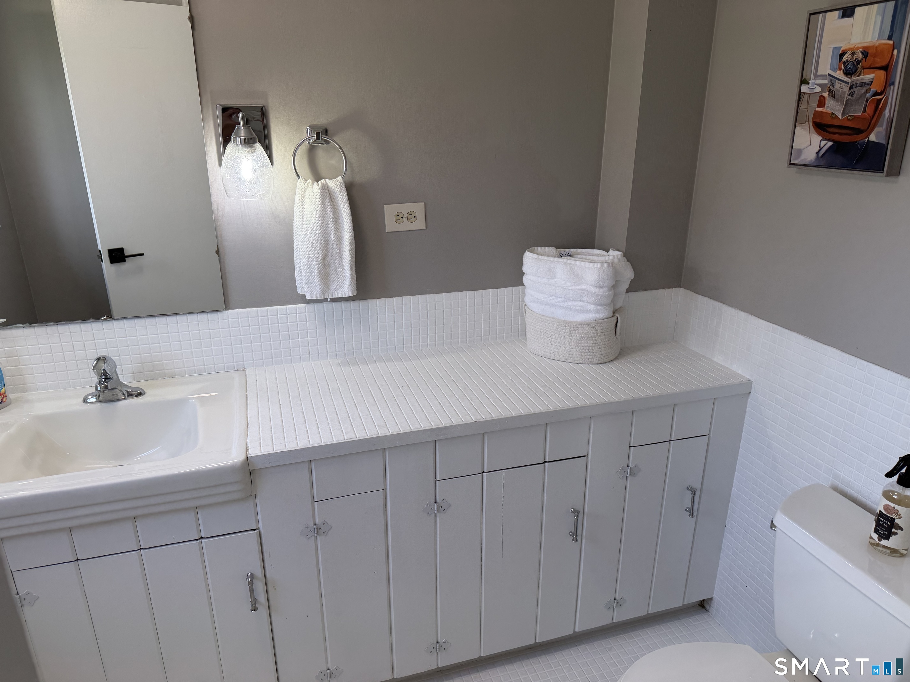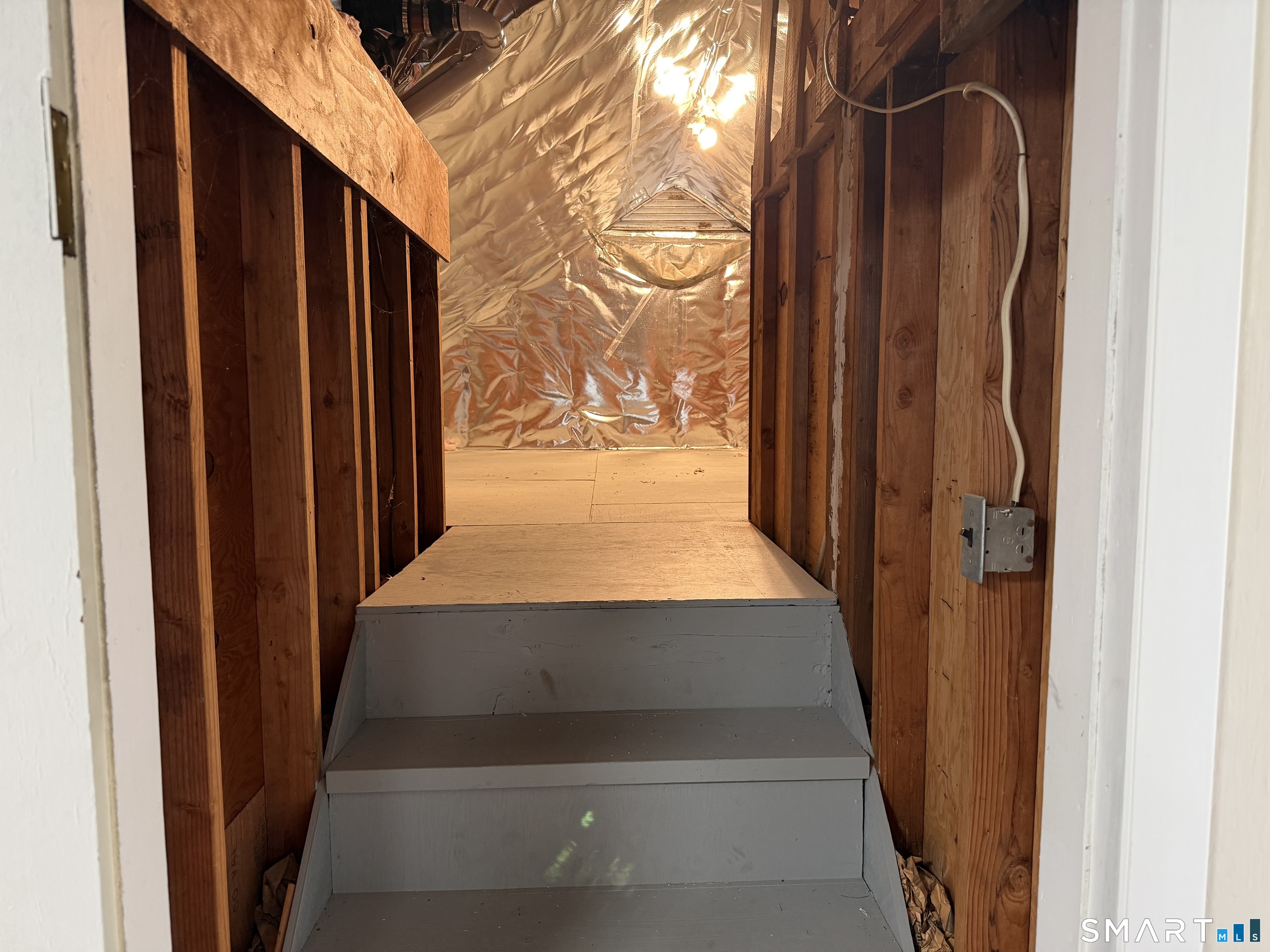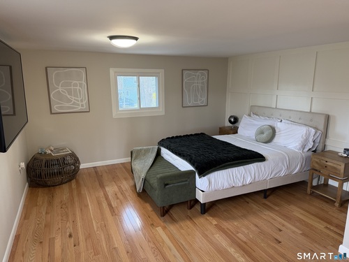 Beautifully updated split-level home set on a private 1.15 acre lot, surrounded by mature trees and set back from the street. The open-concept living and dining area features new white oak floors, recessed LED lighting, and in-ceiling surround sound. The updated kitchen includes Kitchen Aid appliances, quartz countertops, under cabinet lighting, floating shelves and stainless steel undermount sink. The fully renovated bath offers modern finishes and radiant heated floors. The spacious primary bedroom features a paneled accent wall and walk-in closet with built-ins. An oversized 2nd bedroom with built-in desk provides flexible space and potential for a 3rd bedroom, with a nearby 1/2 bath that could accommodate a shower. Additional highlights include a walk-up attic, large dry lower level with finishing potential, one-car garage with backyard access, and basement laundry. Ideally located withing walking distance to town, with schools and parks nearby. This home offers privacy, comfort, and flexibility. Come make this house your home! *See attached list of improvements