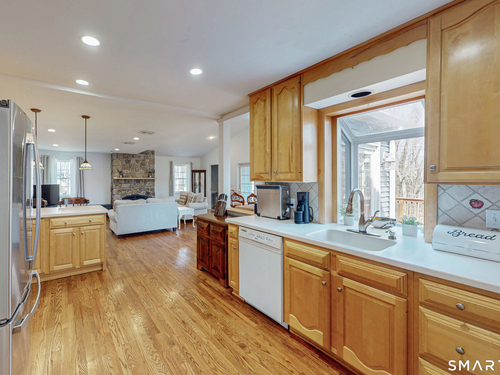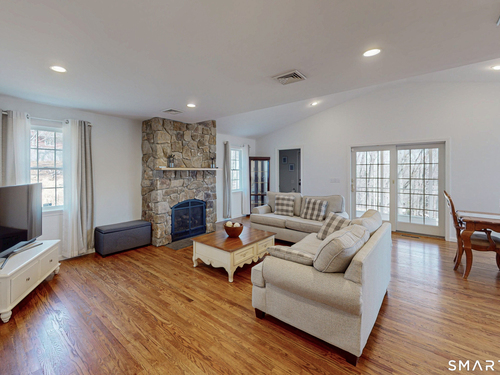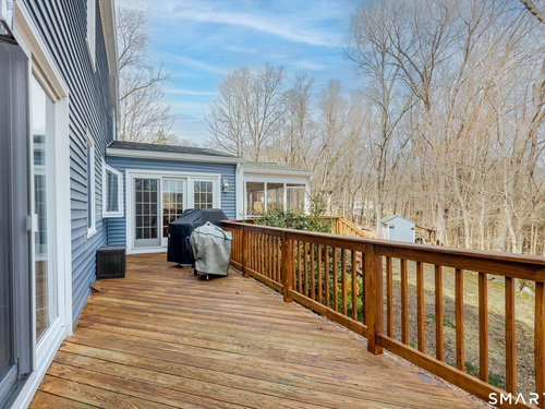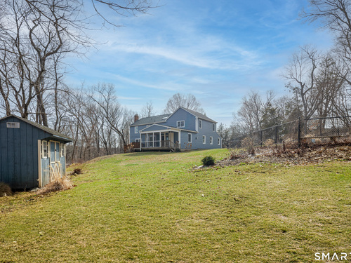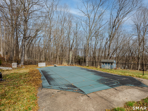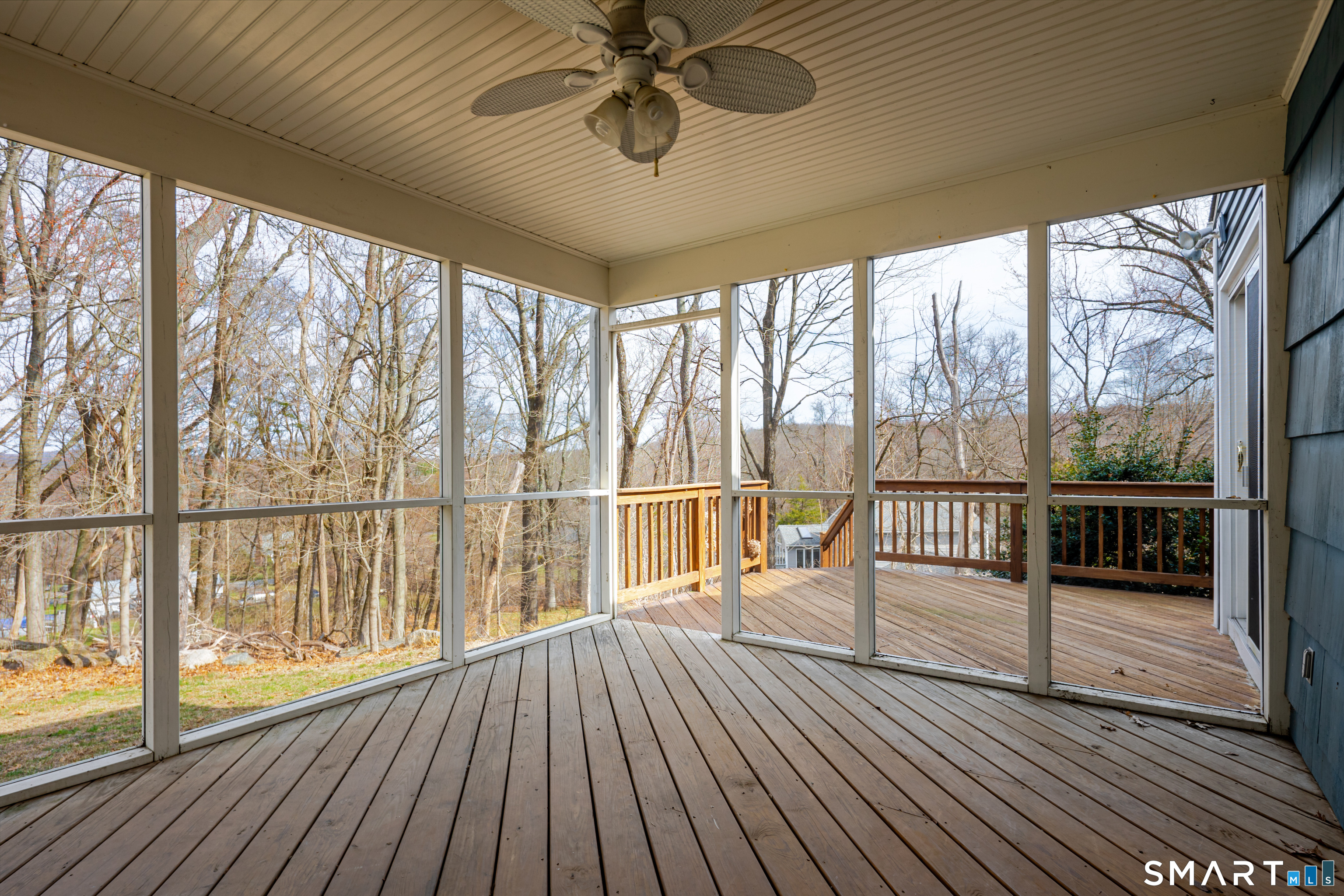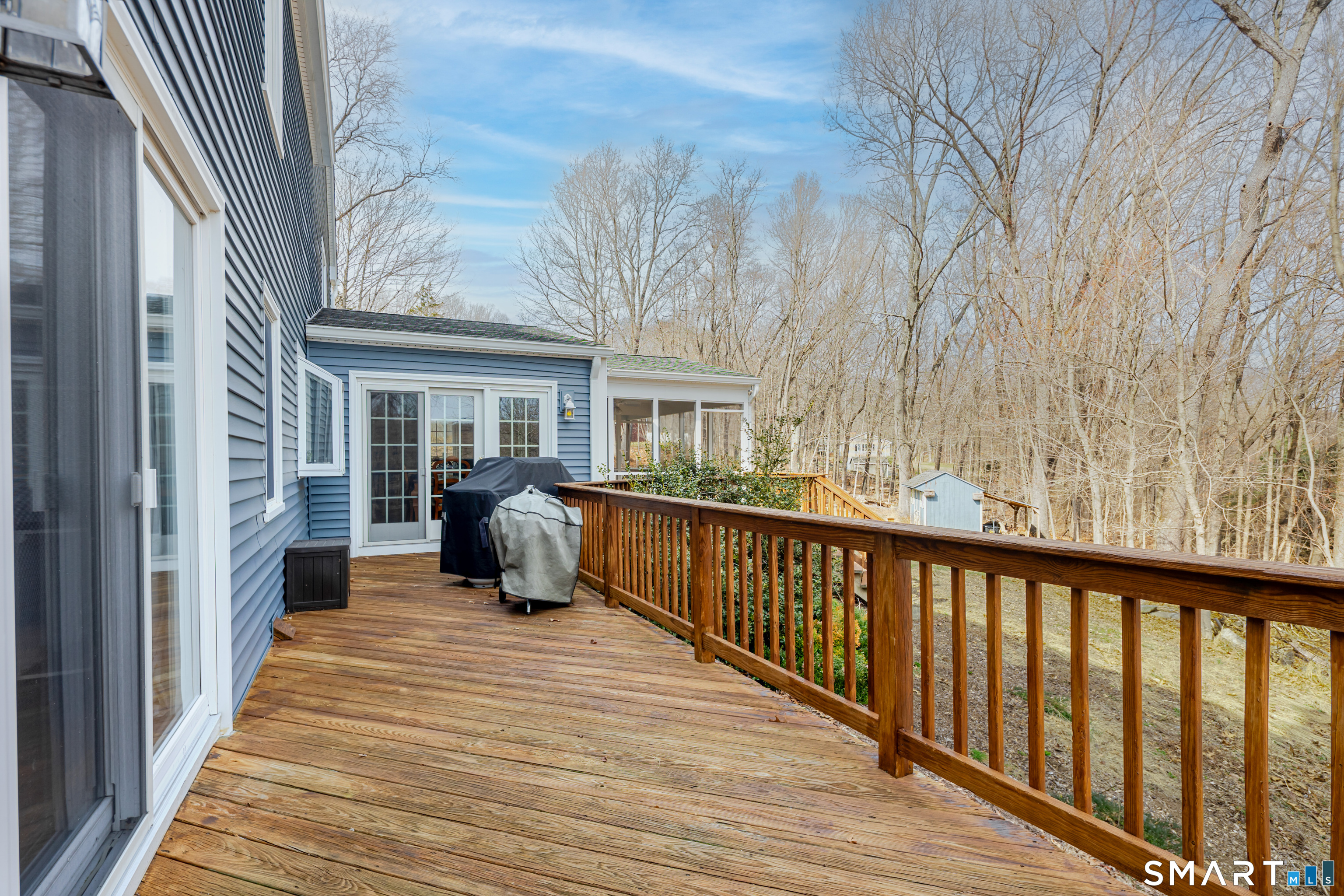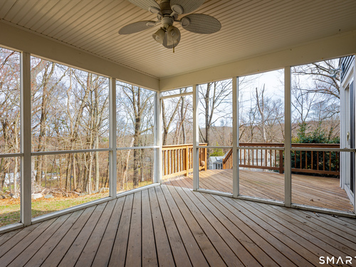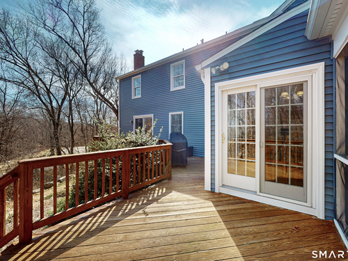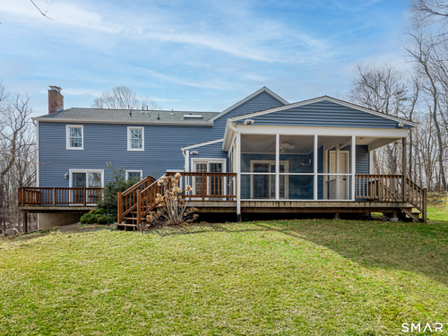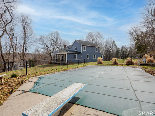 Nestled at the private end of a quiet cul-de-sac in a premier Newtown subdivision, this classic 4 bedroom, 2.2-bath Colonial offers a rare blend of seclusion and community. Set back on 1.4 acres with a charming front porch and a two-car garage. Inside, The gourmet gift of a galley eat-in-kitchen with substantial storage, gas range and breakfast bar. Gleaming hardwood floors throughout lead you to the true heart of the home. An open concept family room which is the ultimate dream space featuring vaulted ceilings, gorgeous stone gas-fireplace and stunning dining area. Enhanced by walls of sliding glass doors open to both a large deck and a screened-in sun porch, perfect for entertaining, overlooking the natural beauty of the sprawling private backyard. The formal living room showcases elegant wainscoting, while the dining room features a stunning stone wood-burning fireplace. Upstairs, the primary suite is a luxury retreat with double walk-in custom closets and a full bath with double sinks and a custom shower. Three spacious guest bedrooms with ample closet space share a full bath. While the interior is beautifully updated, the fenced-in inground pool offers a fantastic opportunity for sweat equity; it requires a new liner and some TLC but could be ready for summer. With a spacious lower level for storage, a backyard shed, and plenty of room to enjoy local wildlife, this home is an incredible find in the heart of Newtown. Well maintained with Central AC and natural gas heat!