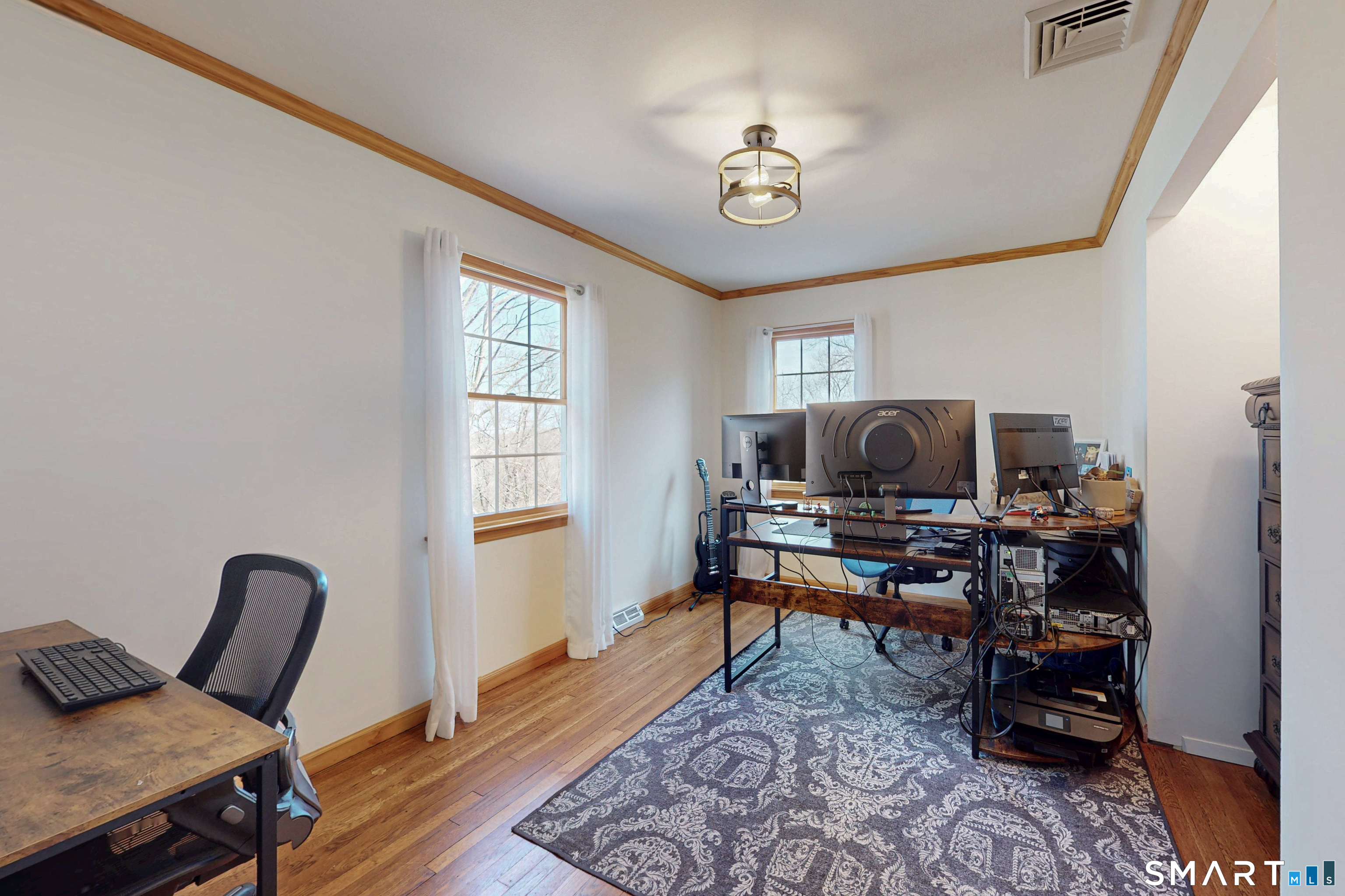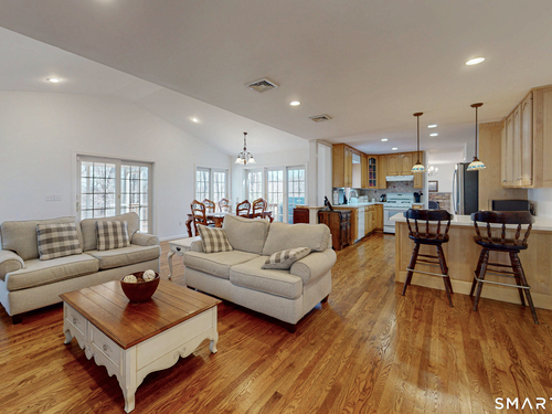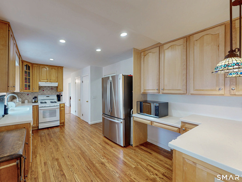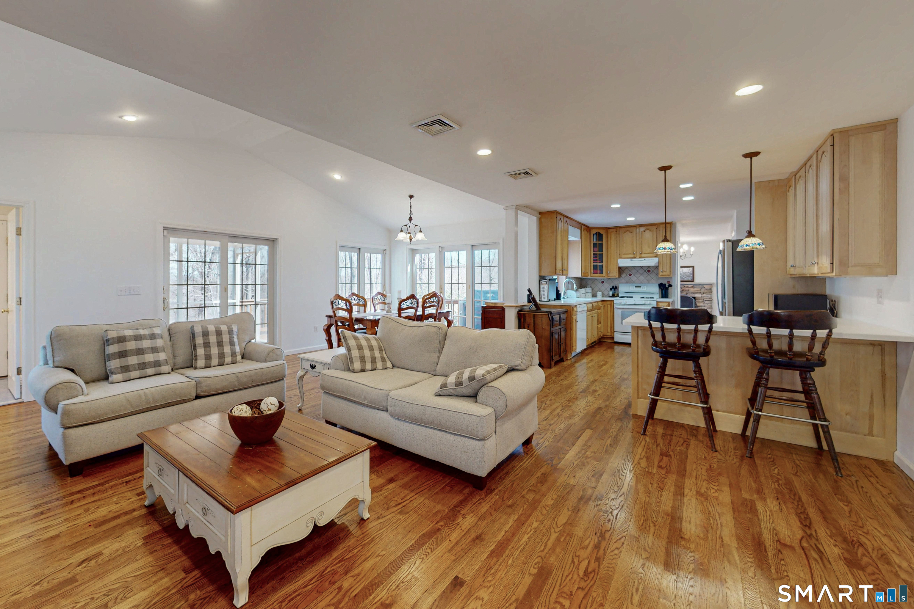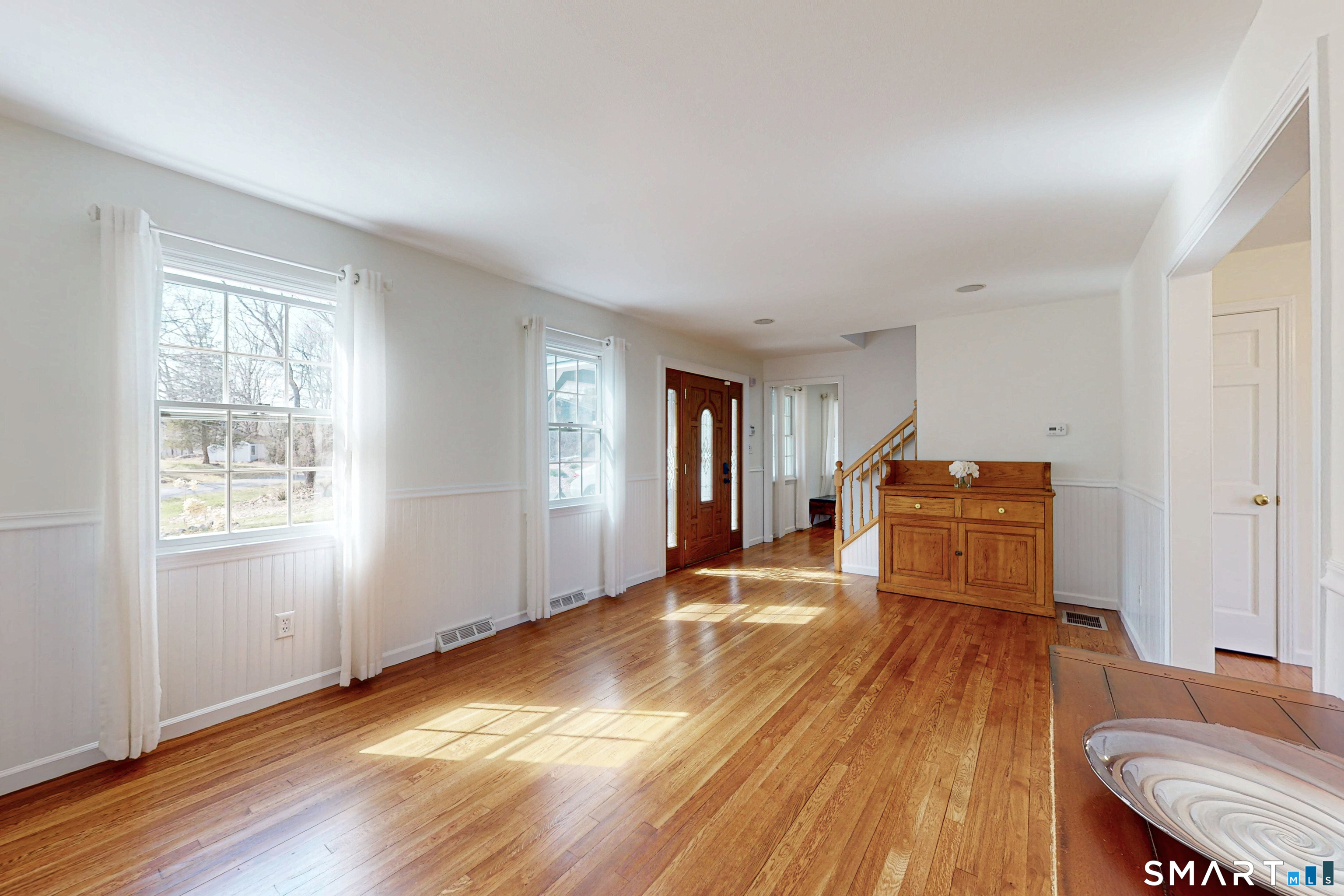 Nestled at the private end of a quiet cul-de-sac in a premier Newtown subdivision, this classic 4 bedroom, 2.2-bath Colonial offers a rare blend of seclusion and community. Set back on 1.4 acres with a charming front porch and a two-car garage. Inside, The gourmet gift of a galley eat-in-kitchen with substantial storage, gas range and breakfast bar. Gleaming hardwood floors throughout lead you to the true heart of the home. An open concept family room which is the ultimate dream space featuring vaulted ceilings, gorgeous stone gas-fireplace and stunning dining area. Enhanced by walls of sliding glass doors open to both a large deck and a screened-in sun porch, perfect for entertaining, overlooking the natural beauty of the sprawling private backyard. The formal living room showcases elegant wainscoting, while the dining room features a stunning stone wood-burning fireplace. Upstairs, the primary suite is a luxury retreat with double walk-in custom closets and a full bath with double sinks and a custom shower. Three spacious guest bedrooms with ample closet space share a full bath. While the interior is beautifully updated, the fenced-in inground pool offers a fantastic opportunity for sweat equity; it requires a new liner and some TLC but could be ready for summer. With a spacious lower level for storage, a backyard shed, and plenty of room to enjoy local wildlife, this home is an incredible find in the heart of Newtown. Well maintained with Central AC and natural gas heat!