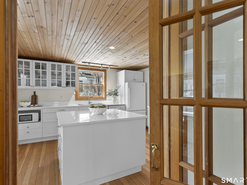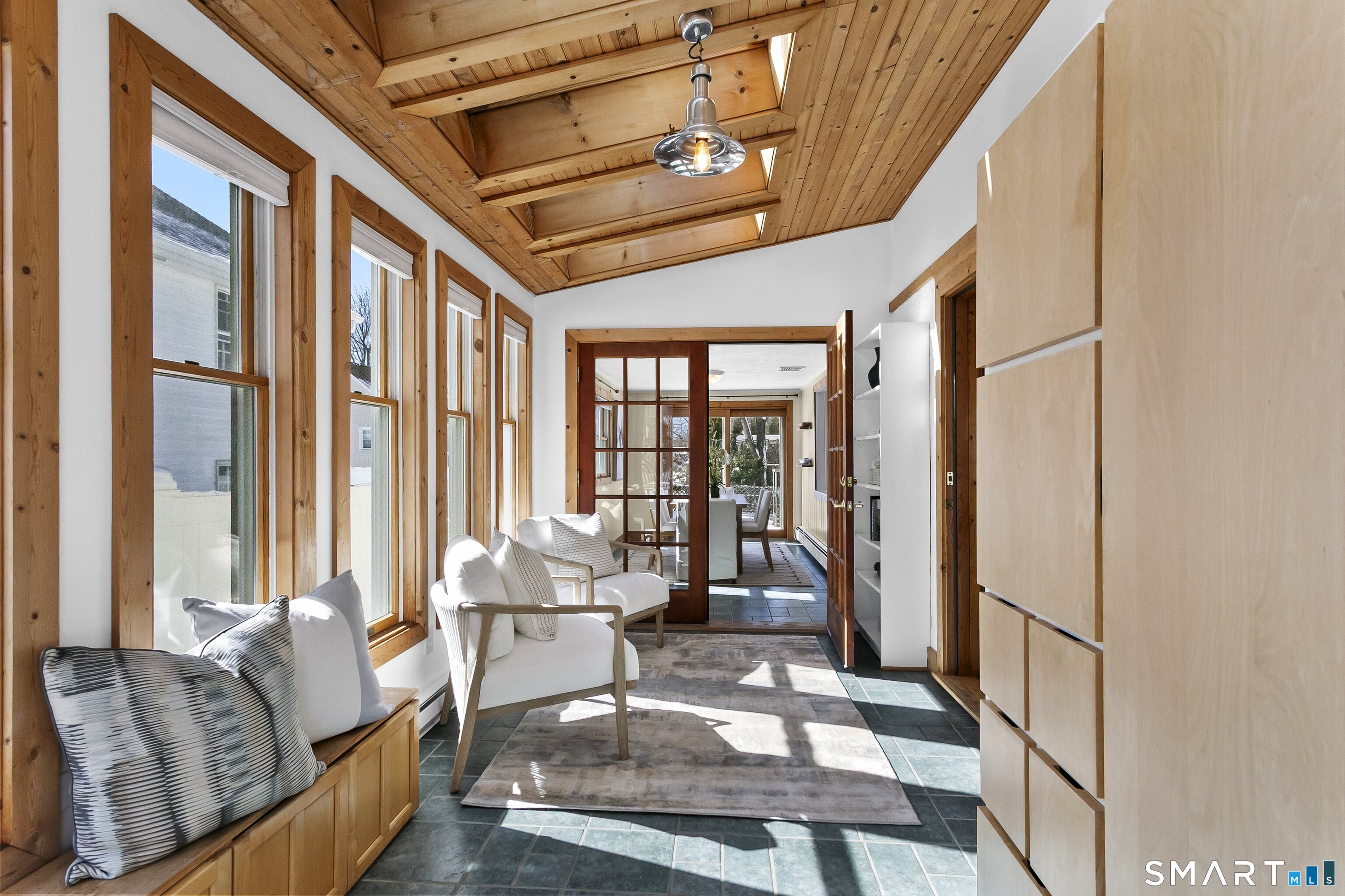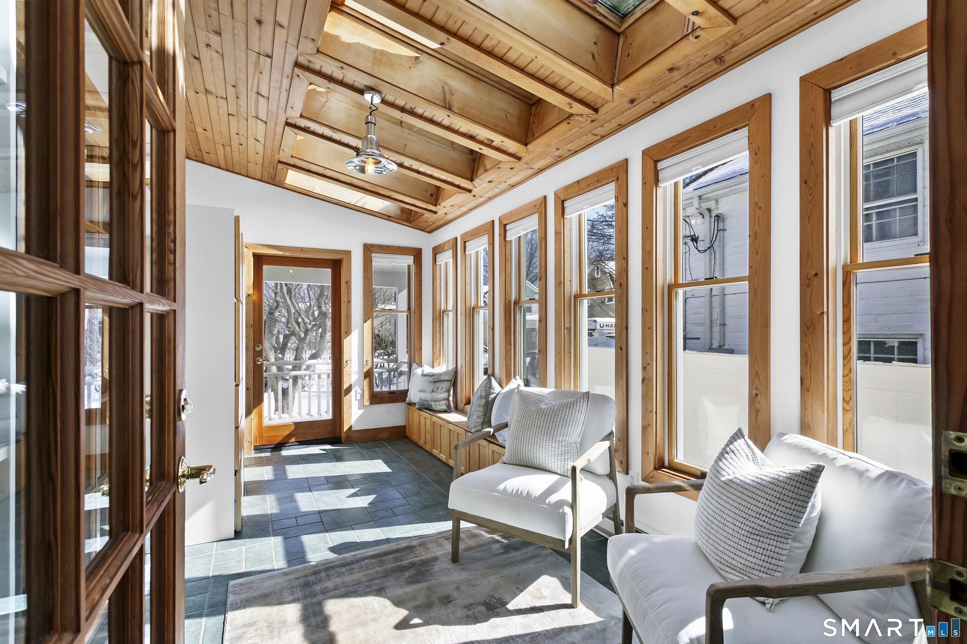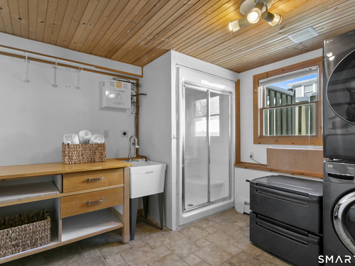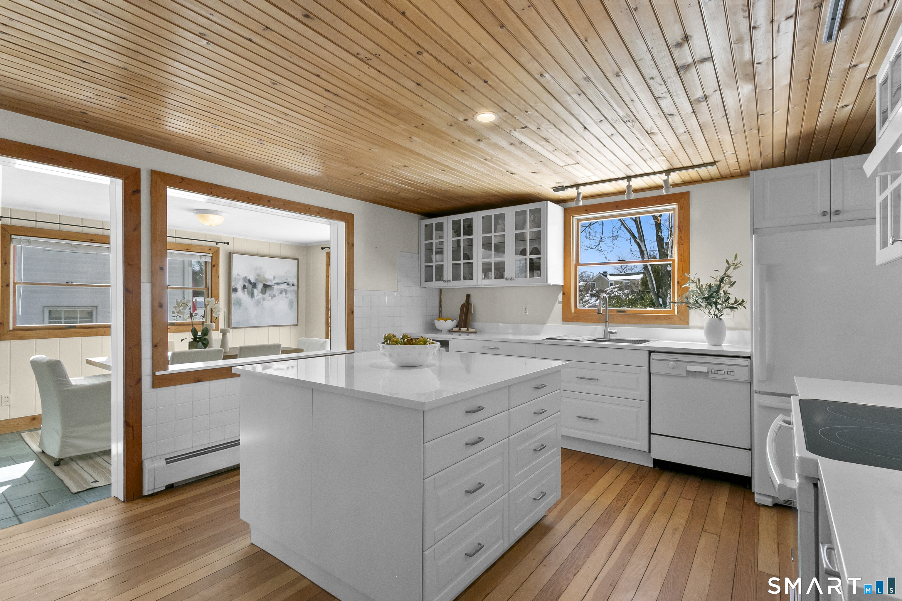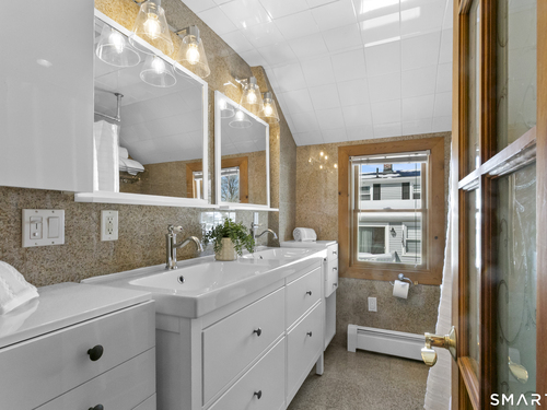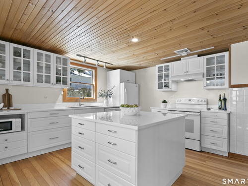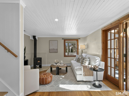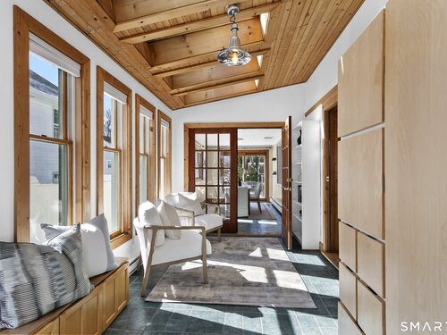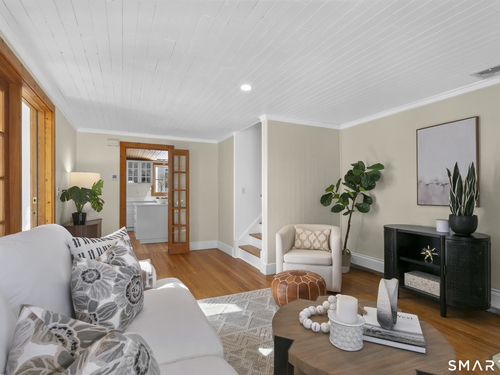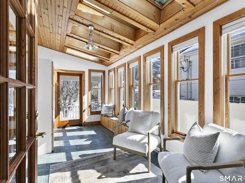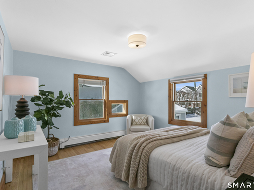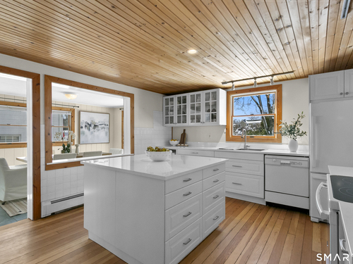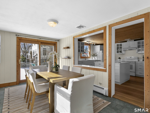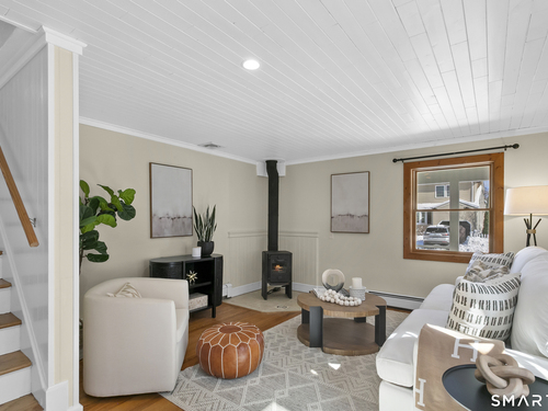 Welcome to 110 Alden Street - a picturesque beach home in a highly desirable neighborhood known for its block parties, evening strolls to the beach, ballgames at the end of the street and easy walks to downtown. This refreshed two-bedroom home lives larger than expected and blends warmth with thoughtful updates. Recent home improvements include new central air, a new boiler, new hot water heater, an updated kitchen and full bath, and beautifully designed perennial gardens that create a colorful welcome upon arrival. The sun-filled main level features a bright sunroom with skylights, a dining room that opens to the back deck and updated eat-in kitchen, plus a cozy family room with a wood-burning stove - perfect for relaxing evenings at home. Upstairs, you will find two comfortable bedrooms, full bath and a walk-up finished upper level offering flexible space for storage or an extra room. The lower level provides additional storage, laundry, garage access and a convenient half bath. From morning coffee on the inviting front porch to sunset views from the back deck overlooking the spacious, private yard, this home exudes warmth and character at every turn. Coastal, carefree living awaits.