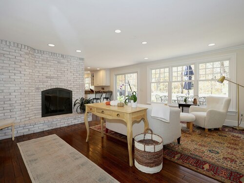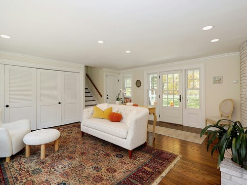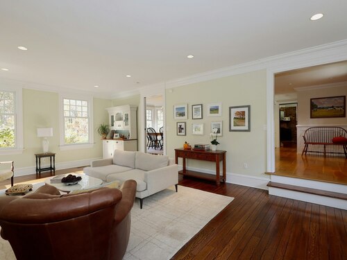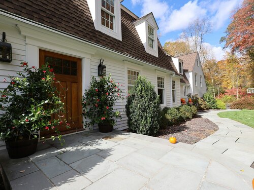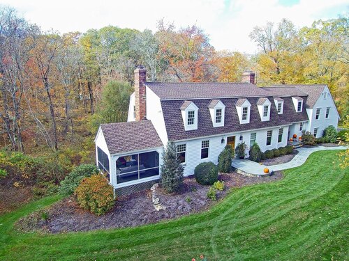 Quintessential New England colonial set back on 3.21 picturesque acres on one of Wilton's most sought after cul de sacs, Middlebrook Farm Road. This impeccable home is warm & inviting with graceful blue stone walkway to the main front entry; 2nd informal covered porch entry; charming screened porch; expansive deck overlooking the private backyard with mature trees; plus additional large open meadow/field, perfect for sports or lawn games. This special home is drenched in natural light & offers clean lines and open flow from the sparkling white kitchen offering stainless steel appliances & bar seating to the adjoining family room with walls of windows to both the back deck & front porch. There are just a few steps up to the sunny bonus room, newly remodeled, with vaulted ceiling & skylights, perfect as a playroom or studio. The pristine main level also offers gleaming hardwood floors, custom millwork including wainscot & crown molding, plus 3 fireplaces - in the living room, dining room, & private library with floor to ceiling built-in bookshelves. The second level offers the cheery landing with more built-in bookshelves; expansive primary suite with private bath & multiple closets; 3 additional generous bedrooms, all with hardwood floors & shared hall bath; plus walk-up attic for abundant storage. Top location, just steps to schools, plus convenient to commuting routes, train station, charming Wilton Center for shops/restaurants, & only 52 miles to Midtown. Truly exceptional!