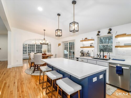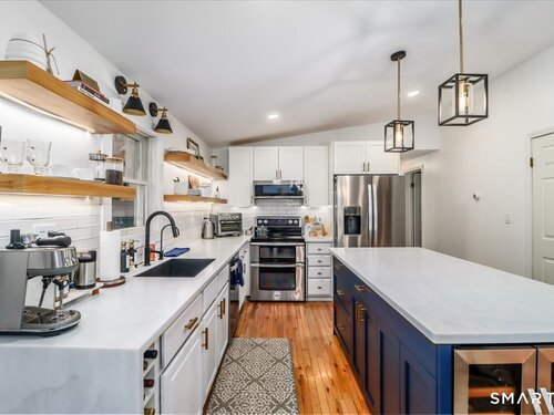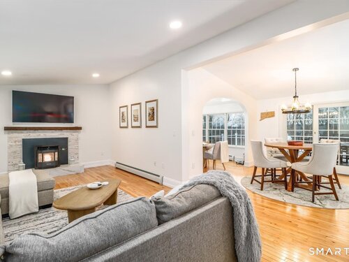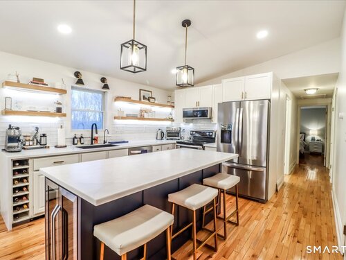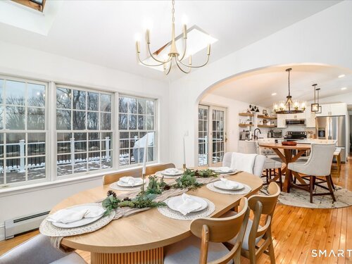 *Final and best offers by Tuesday @ 6pm. Discover serene luxury and refined comfort in this beautifully updated 3 bed, 3 bath home set on over 2 private acres in the King Street area. With 3,100 gross sq ft (including partially finished lower level) and vaulted ceilings, skylights, and walls of windows, this extended ranch home is filled with natural light and captures stunning sunset views year round as it's situated at one of the highest points on King Street. Step inside to a thoughtfully renovated interior featuring gleaming hardwood floors, a brand new kitchen, and an inviting open layout perfect for everyday living and entertaining. The kitchen boasts a large island, built-in wine and beverage fridge, modern shaker cabinetry, and seamless flow into the dining room, also a bright sunroom wrapped in windows and skylights, complete with extra-tall custom built cabinets and butcher block shelving for beautiful storage and display. Relax in the spacious living room with vaulted ceilings and enjoy ultimate comfort with two options: a new pellet stove complemented by a new boiler and water heater for reliability and efficiency. Retreat outdoors to the oversized trex deck, newly built and perfectly positioned to overlook your private acreage and sweeping views. The property is a nature lover's paradise, featuring apple and pear trees, garden area, rock walls, fencing for pets, and a sense of seclusion rarely found, yet just 10 minutes to shopping, highways and Candlewood La
