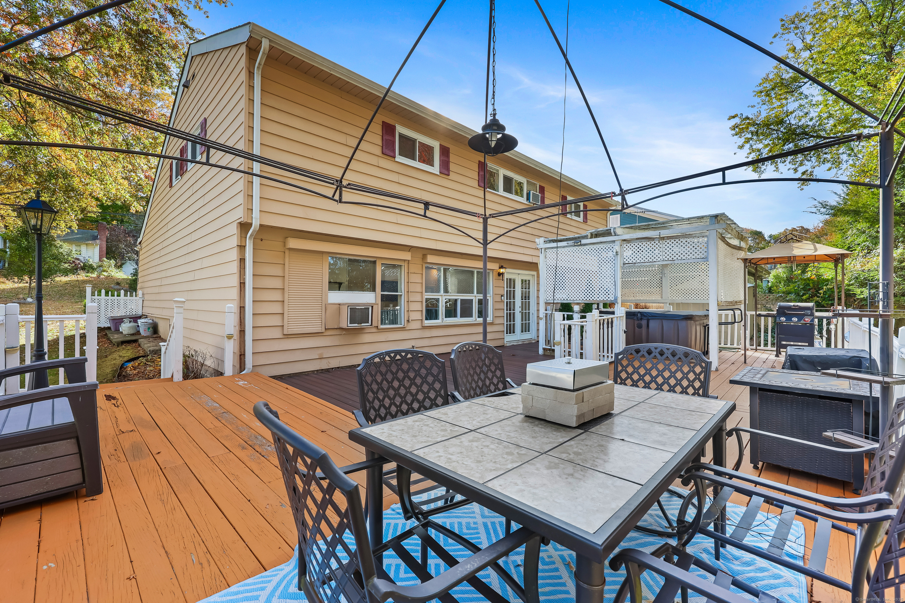 Welcome to this gem of a home that has an incredible sense of balance. Located in the sought-after Mid-Ridges neighborhood, it has an inviting front yard, 3+ bdrms, 2 1/2 baths, a large deck with a hot tub and a flowing back yard. Entry is from a versatile front porch which leads into a large sunken Living Rm, great for family gatherings. It boasts a 12 ft ceiling, a gas fplc, and hdwd floors/crown moldings which are found throughout the home. The kitchen offers a breakfast bar, SS appliances and white cabinetry. Off both rooms is a sunlit Formal DR with a picture window and built ins. The UL includes 2 ample bdrms, a full bath, attic storage, and a Primary with an updated en-suite. The LL has multiple rooms including one with its own half bath that could be a 4th bdrm/office. Another room offers the same possibilities and there is a nook for a small gym. The FR is here as well with its own gas fplc. Through French doors is the deck, also perfect for family gatherings. The deck has a newer hot tub, and multiple canopies. The level back yard has a designated firepit area, fencing, and a shed. For those with a green thumb, there is a full-sun garden area. The bsmt includes a W/D, a workbench, storage and is generally a blank slate for future endeavors. A one car garage has dropdown stairs for extra storage. The electrical bill is greatly reduced by 48 Solar Panels. Estate Sale, being sold "as-is."