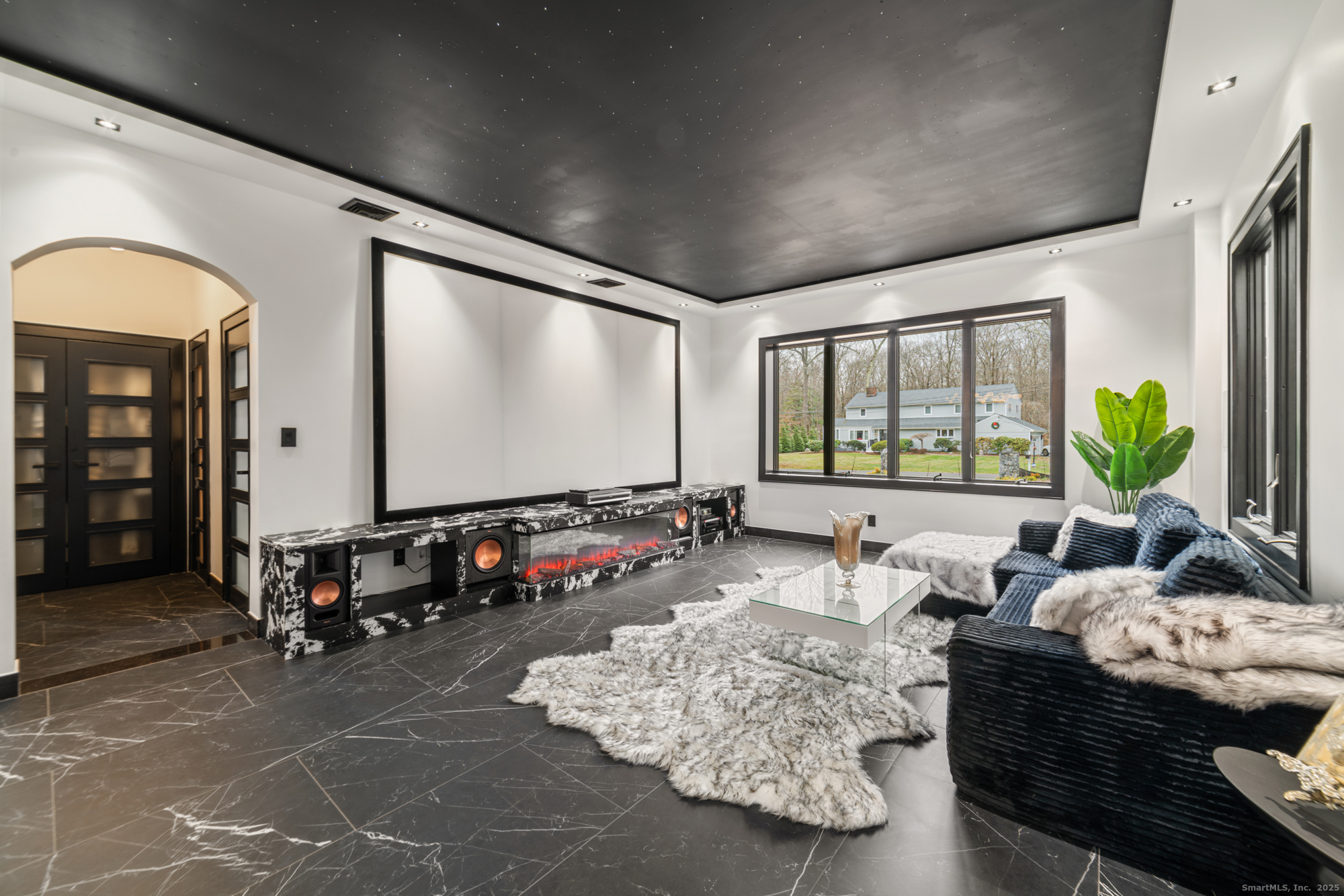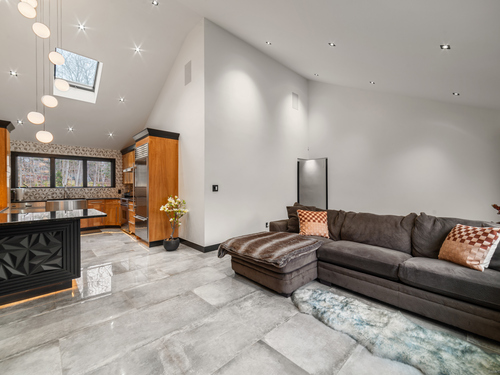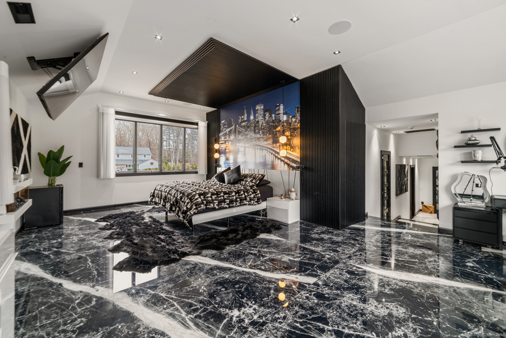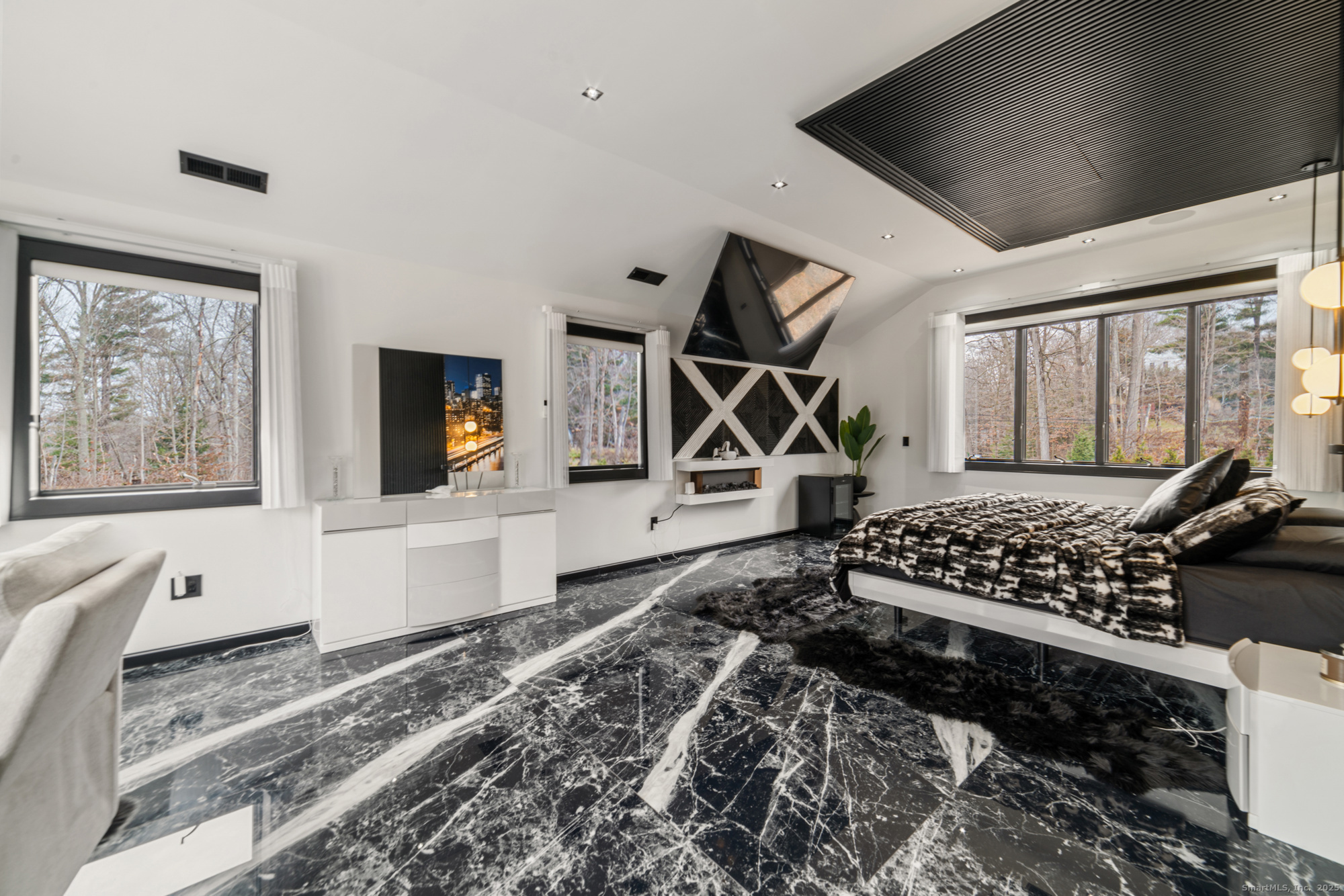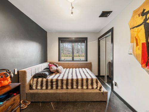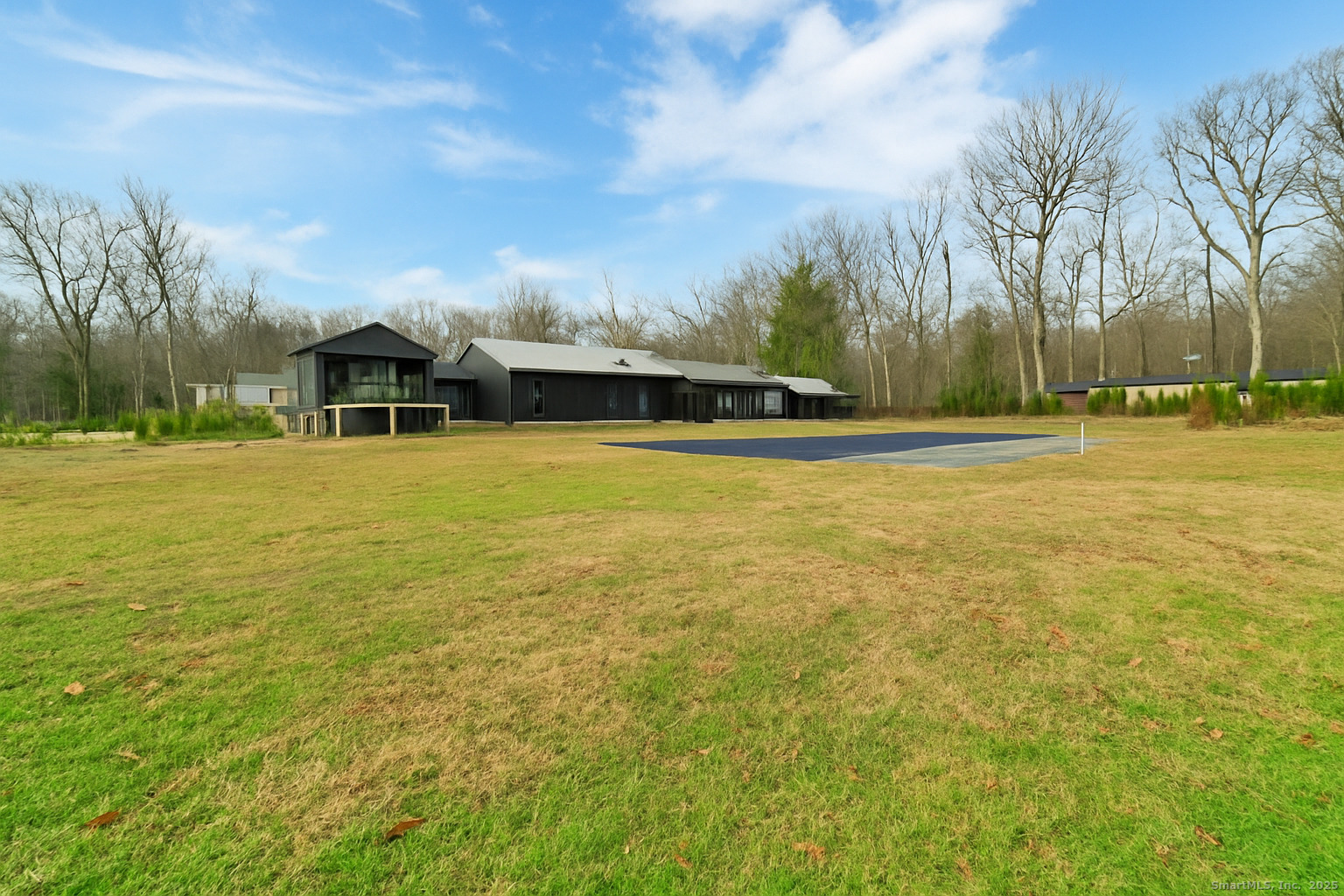 A beautifully renovated modern ranch set on a pristine acre in one of Stamford's most desirable neighborhoods. Thoughtfully designed with timeless elegance and contemporary comfort, this home offers effortless, elevated living. A sun-filled interior features soaring ceilings, wide-plank tile floors, and a seamless open flow. The formal living room, highlighted by a striking marble fireplace, leads into a stunning chef's kitchen with professional-grade appliances, custom cabinetry, granite counters, and an oversized peninsula. The adjacent dining room opens through French doors to peaceful views of the private grounds. The South wing hosts a luxurious primary suite with two custom walk-in closets, a serene sitting area with access to a private deck, and a spa-inspired bath with a soaking tub and rainfall shower. Two additional bedrooms and a beautifully updated full bath complete this wing. The finished walk-out lower level offers flexible space ideal for a home office, gym, playroom, or media room. Outside, your private oasis awaits- In ground pool surrounded by bluestone patios, and mature trees creating a serene and exclusive retreat. Perfectly located near schools, shopping, dining, and Metro-North, 113 Woodbrook Drive delivers the perfect balance of luxury, privacy, and convenience.
