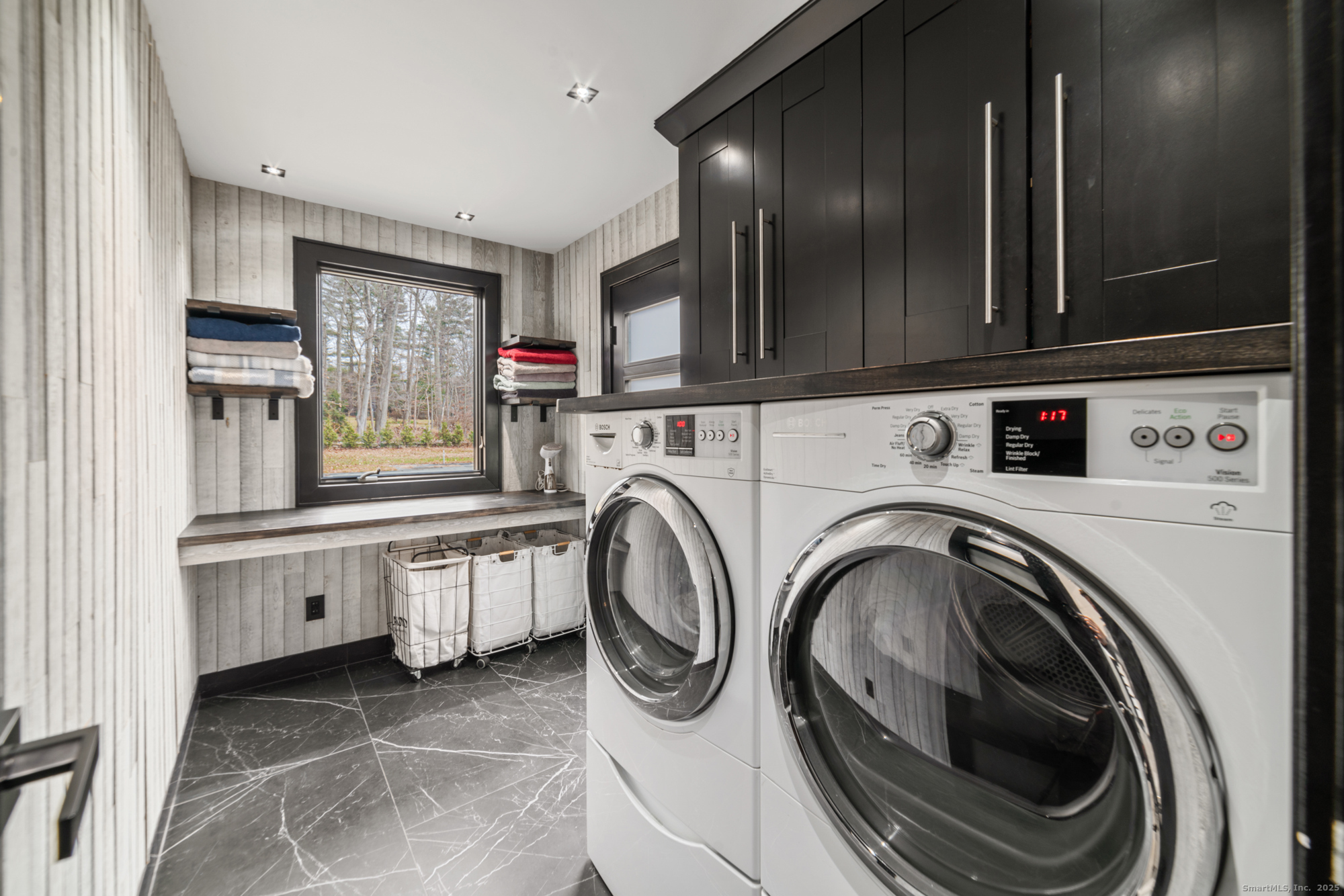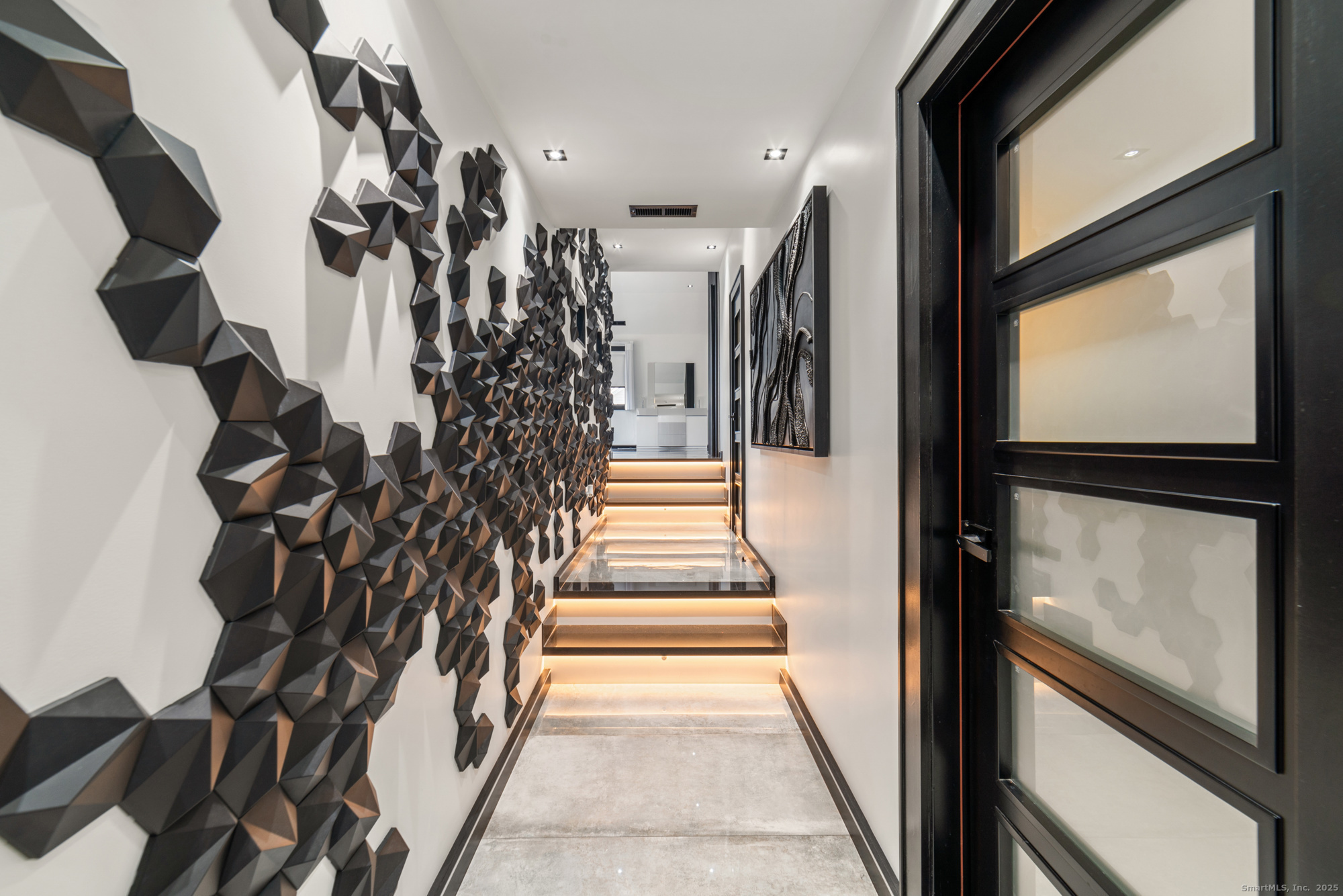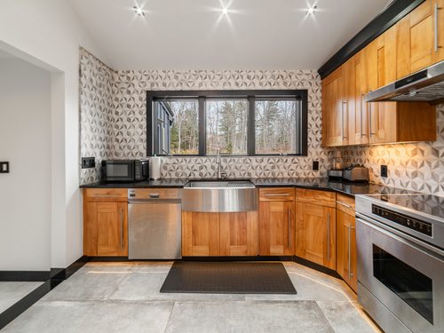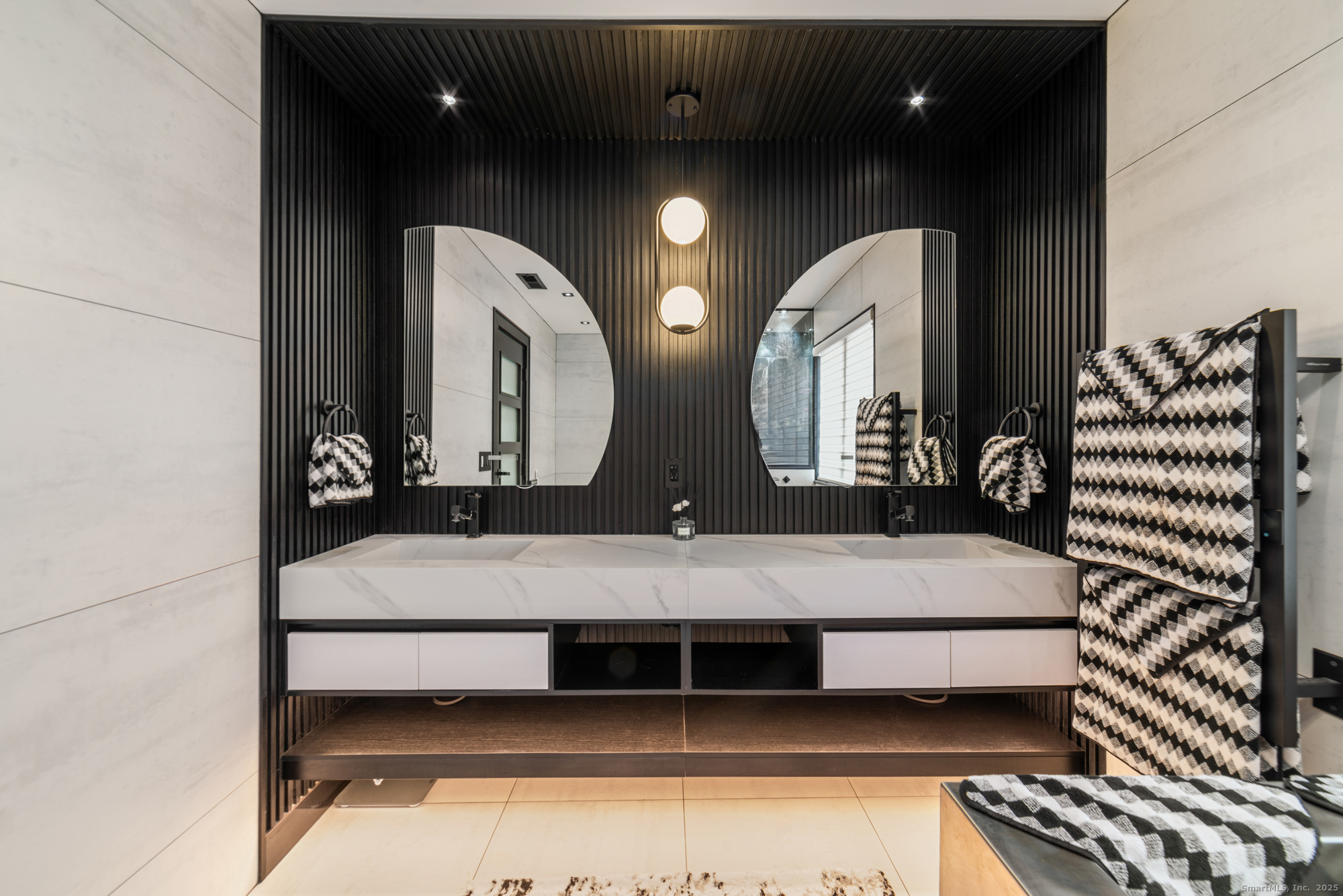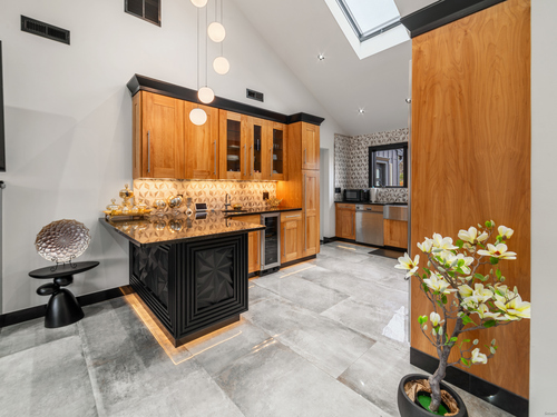 A beautifully renovated modern ranch set on a pristine acre in one of Stamford's most desirable neighborhoods. Thoughtfully designed with timeless elegance and contemporary comfort, this home offers effortless, elevated living. A sun-filled interior features soaring ceilings, wide-plank tile floors, and a seamless open flow. The formal living room, highlighted by a striking marble fireplace, leads into a stunning chef's kitchen with professional-grade appliances, custom cabinetry, granite counters, and an oversized peninsula. The adjacent dining room opens through French doors to peaceful views of the private grounds. The South wing hosts a luxurious primary suite with two custom walk-in closets, a serene sitting area with access to a private deck, and a spa-inspired bath with a soaking tub and rainfall shower. Two additional bedrooms and a beautifully updated full bath complete this wing. The finished walk-out lower level offers flexible space ideal for a home office, gym, playroom, or media room. Outside, your private oasis awaits- In ground pool surrounded by bluestone patios, and mature trees creating a serene and exclusive retreat. Perfectly located near schools, shopping, dining, and Metro-North, 113 Woodbrook Drive delivers the perfect balance of luxury, privacy, and convenience.