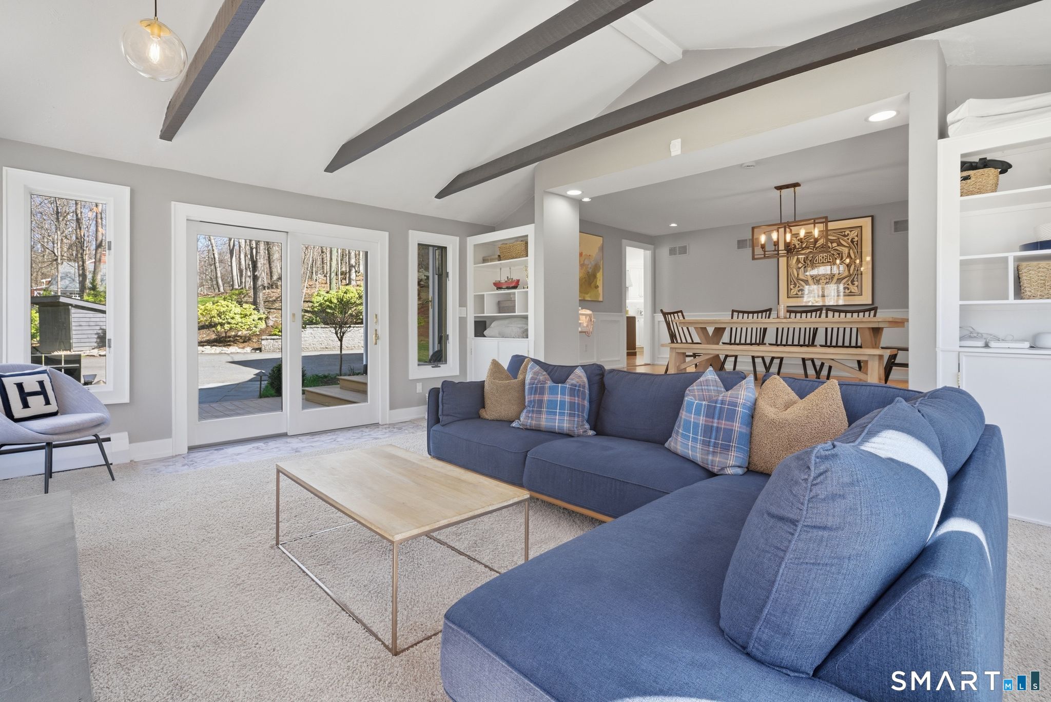 Family Room (Main Level)Balcony/Deck, Beams, Built-Ins, Gas Log Fireplace, Sliders, Wall/Wall Carpet