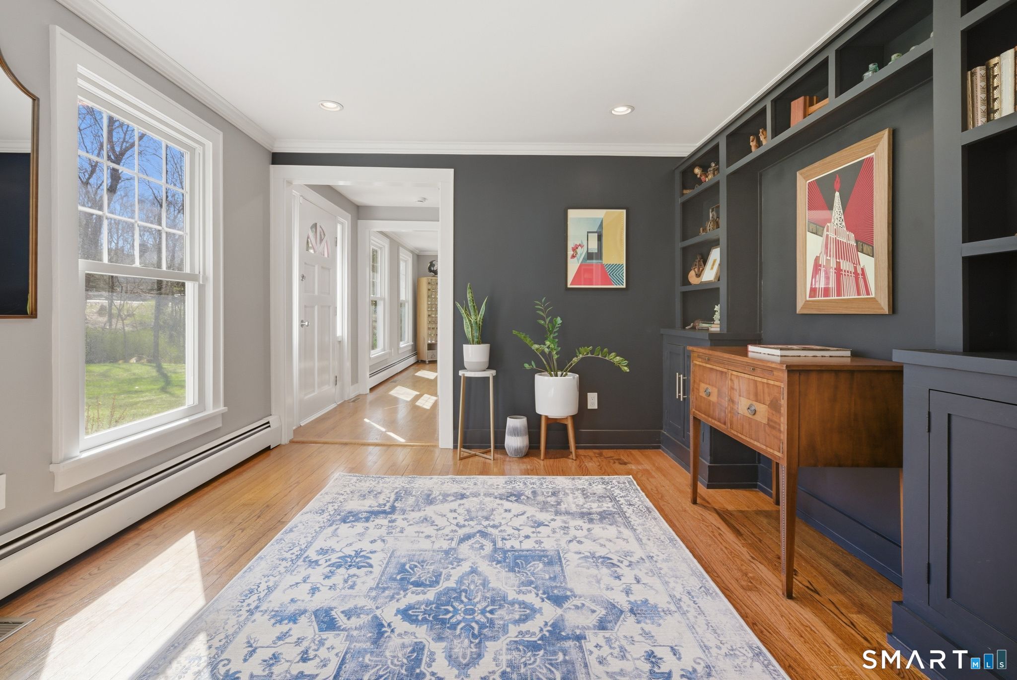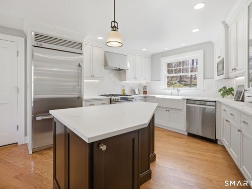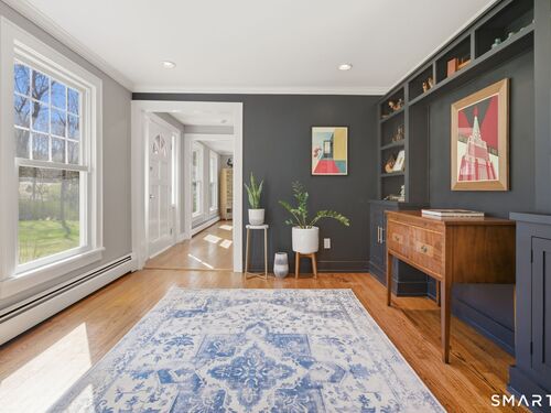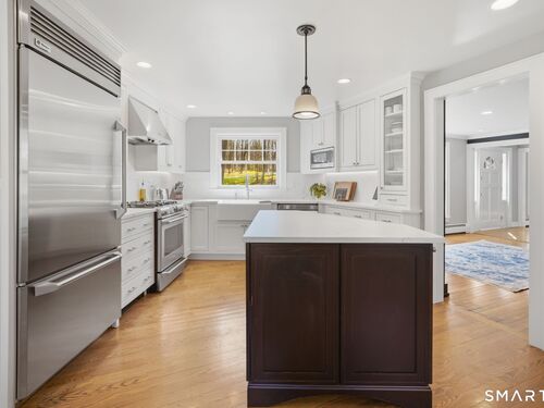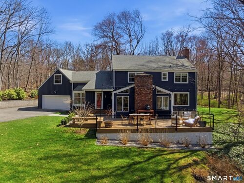 Tucked on a private lane just off Nod Hill and Whipstick Roads, this home is a hidden escape - where life slows, and every day begins with a sense of calm. The approach is quintessential New England: a winding, scenic drive that opens to rolling topography, timeless stone walls, and a classic 4BR colonial gracefully set into picturesque surroundings. Inside, the home unfolds with warmth and intention. Sunlight pours through thoughtfully updated spaces with craftsmanship evident at every turn; a gorgeous eat-in kitchen is the heart of the home and the flow from room to room is seamless and easy. Custom millwork, refined moldings, solid doors, updated bathrooms and beautifully integrated built-ins combine quality and function. No detail is overlooked. The connection to the outdoors is constant and captivating. A stunning family room wrapped in expansive windows invites natural light, with wildlife and the changing seasons always in view. Evenings are best spent on the wraparound deck, while the property itself becomes a backdrop for cherished moments - from winter sledding down the neighborhood hill to summer days spent exploring along the footbridge out front. Life on the private lane offers a true sense of community - where neighbors become friends and impromptu gatherings happen with ease. A property defined by its space and natural surroundings, this home is set in one of Wilton's most peaceful neighborhoods.
