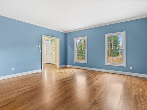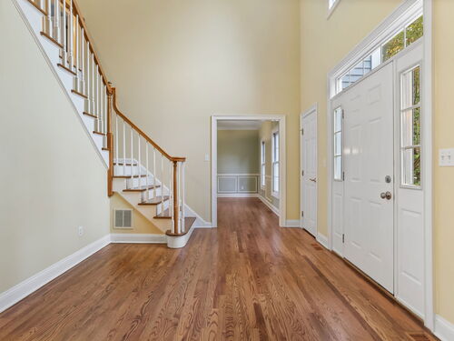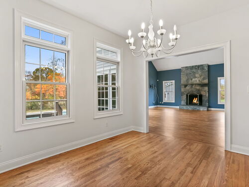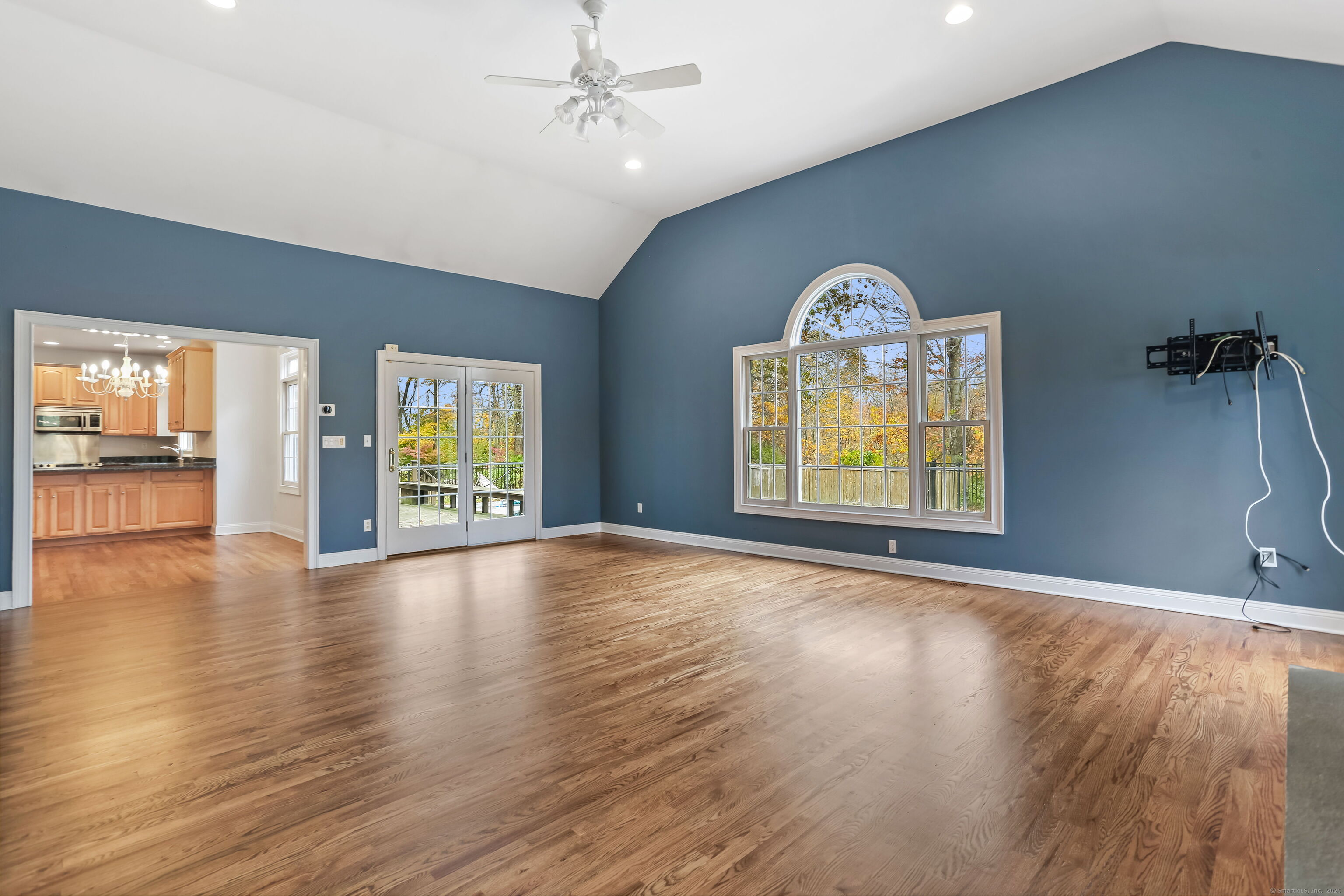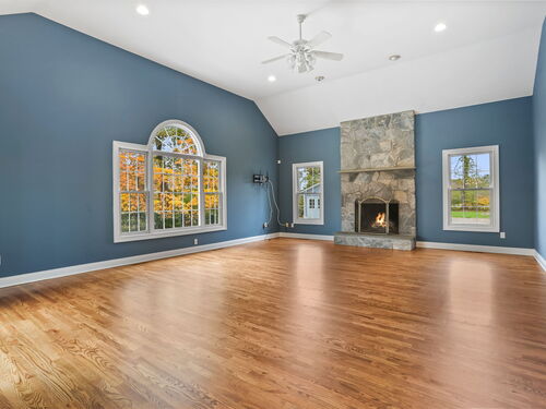 Vaulted Ceiling, Ceiling Fan, Fireplace, French Doors, Hardwood Floor