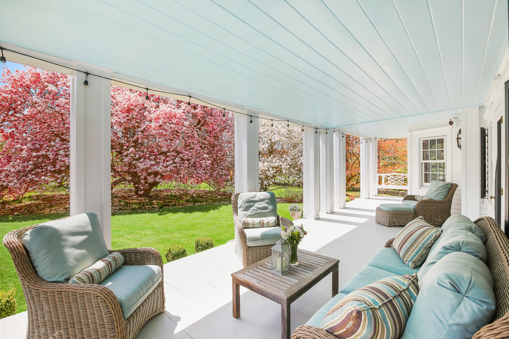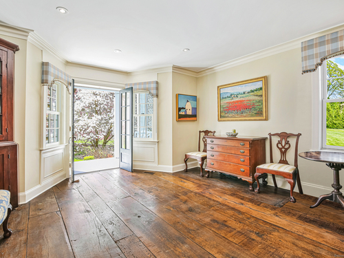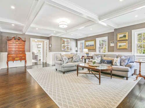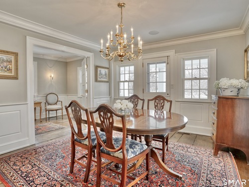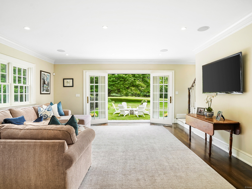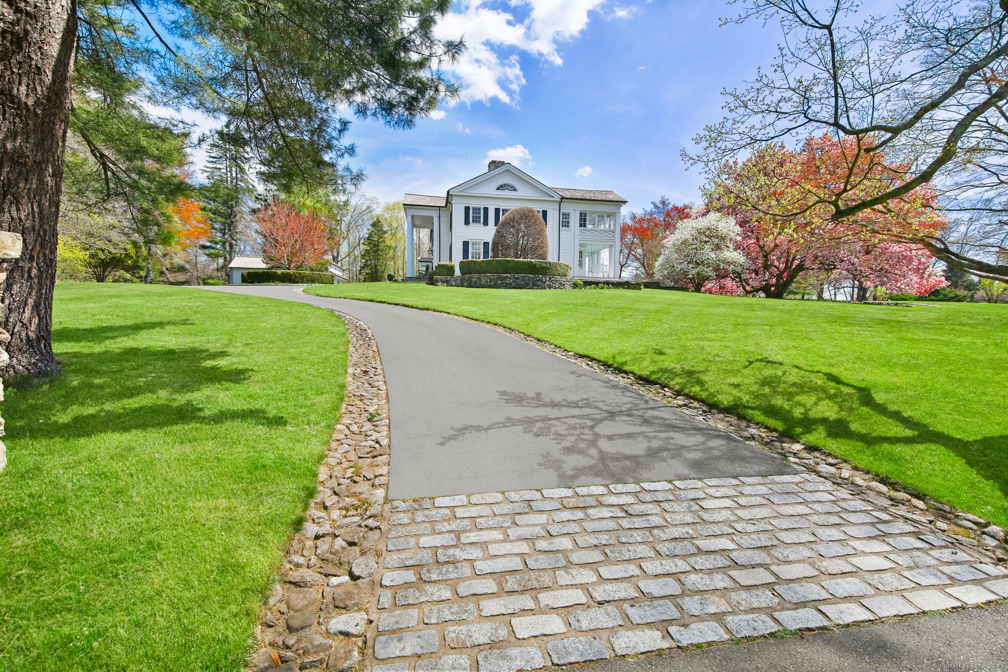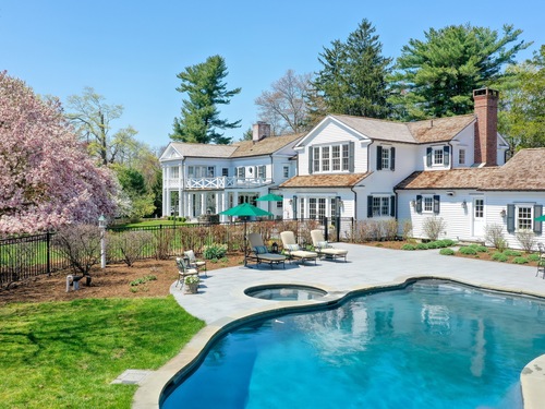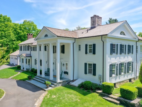 Step into timeless sophistication at this breathtaking Neoclassical estate, ideally located on over 4 pristine acres in one of New Canaan's most sought-after locations. Offering 6,557 square feet of beautifully refined living space, this extraordinary home effortlessly balances classic architectural elegance with the comforts of modern luxury. Thoughtfully redesigned and expanded between 2010 and 2017, the main residence features 5 spacious bedrooms and 4.1 bathrooms, alongside formal living and dining rooms, a chef-inspired kitchen, a sunlit mudroom, and multiple inviting family and gathering spaces. Every room showcases meticulous craftsmanship, bespoke millwork, and exceptional finishes-designed for both everyday living and elegant entertaining. A charming detached carriage house adds even more flexibility, perfect as a guest retreat, home office, fitness studio, or private residence for in-laws or an au pair. It includes its own bedroom, full bath, kitchen, and living area. Outside, the estate unfolds into sweeping lawns, curated gardens, specimen trees, and beautifully designed hardscapes, including a sparkling pool and spa. With top-to-bottom improvements-new windows and doors, updated utilities, a re-sealed roof, and more-this home is as turnkey as it is timeless. This is a rare opportunity to own an iconic and serene legacy property in the heart of New Canaan-an estate that truly must be seen to be appreciated.