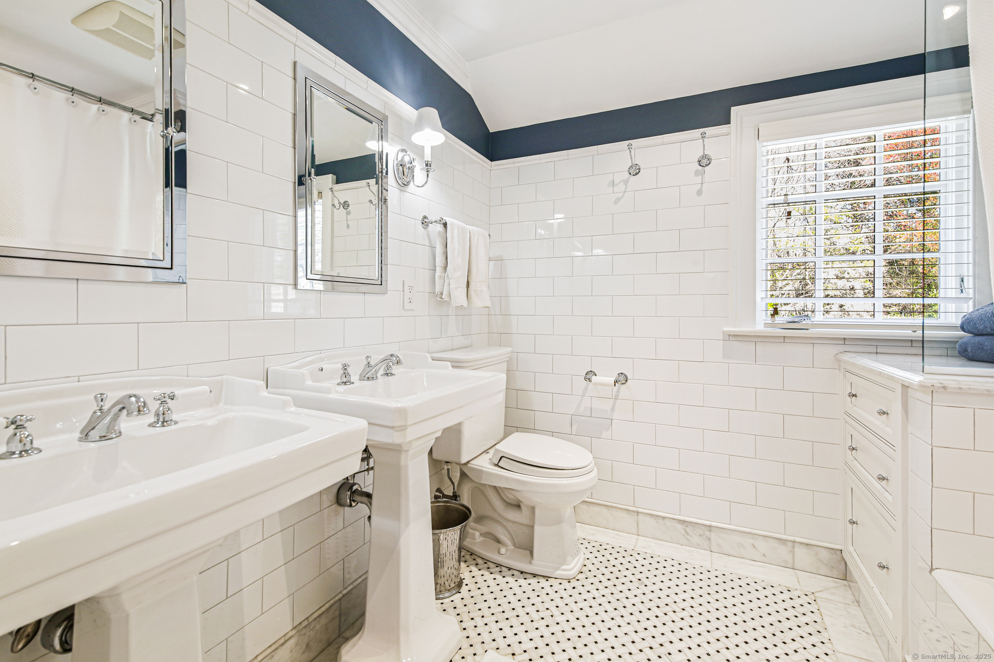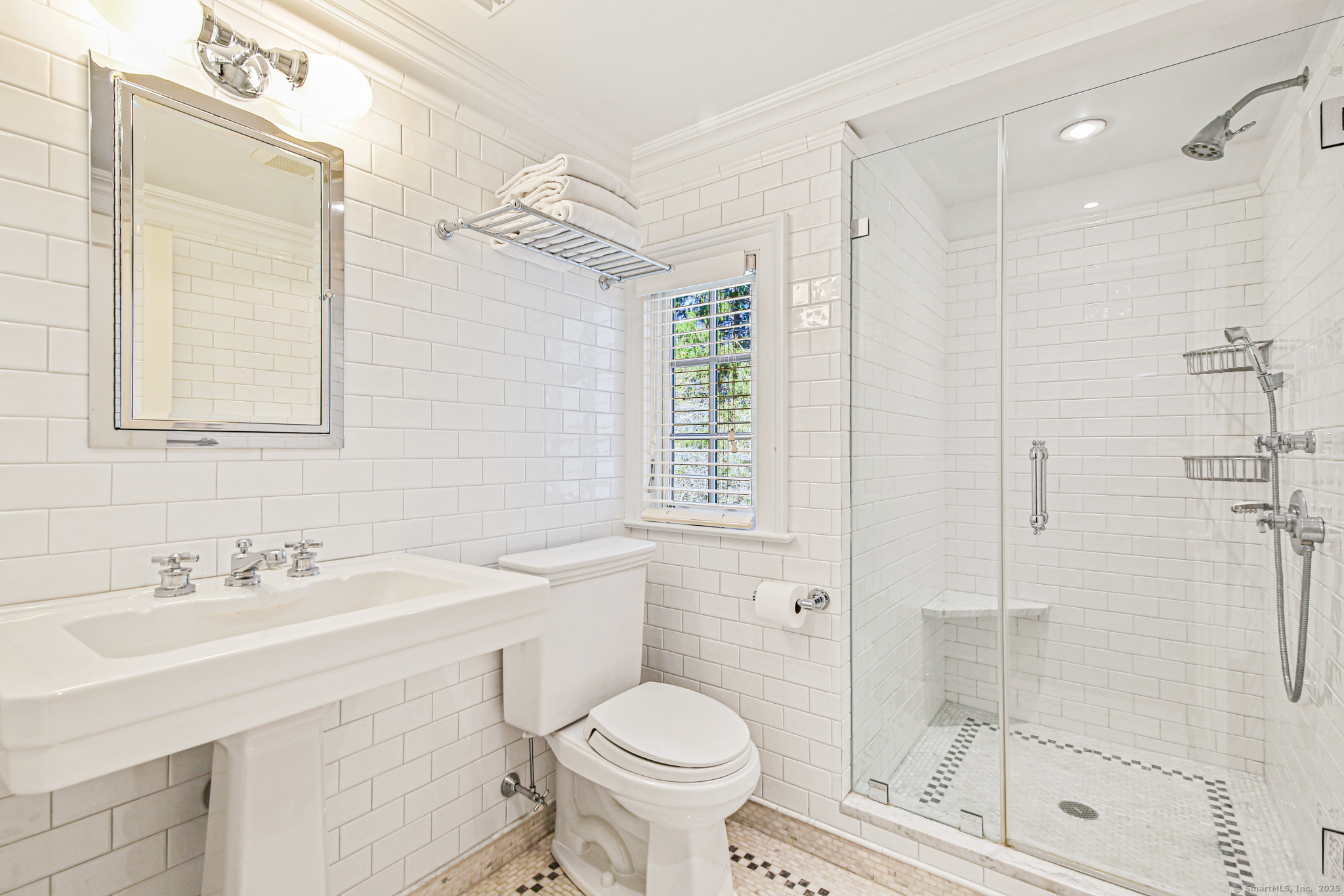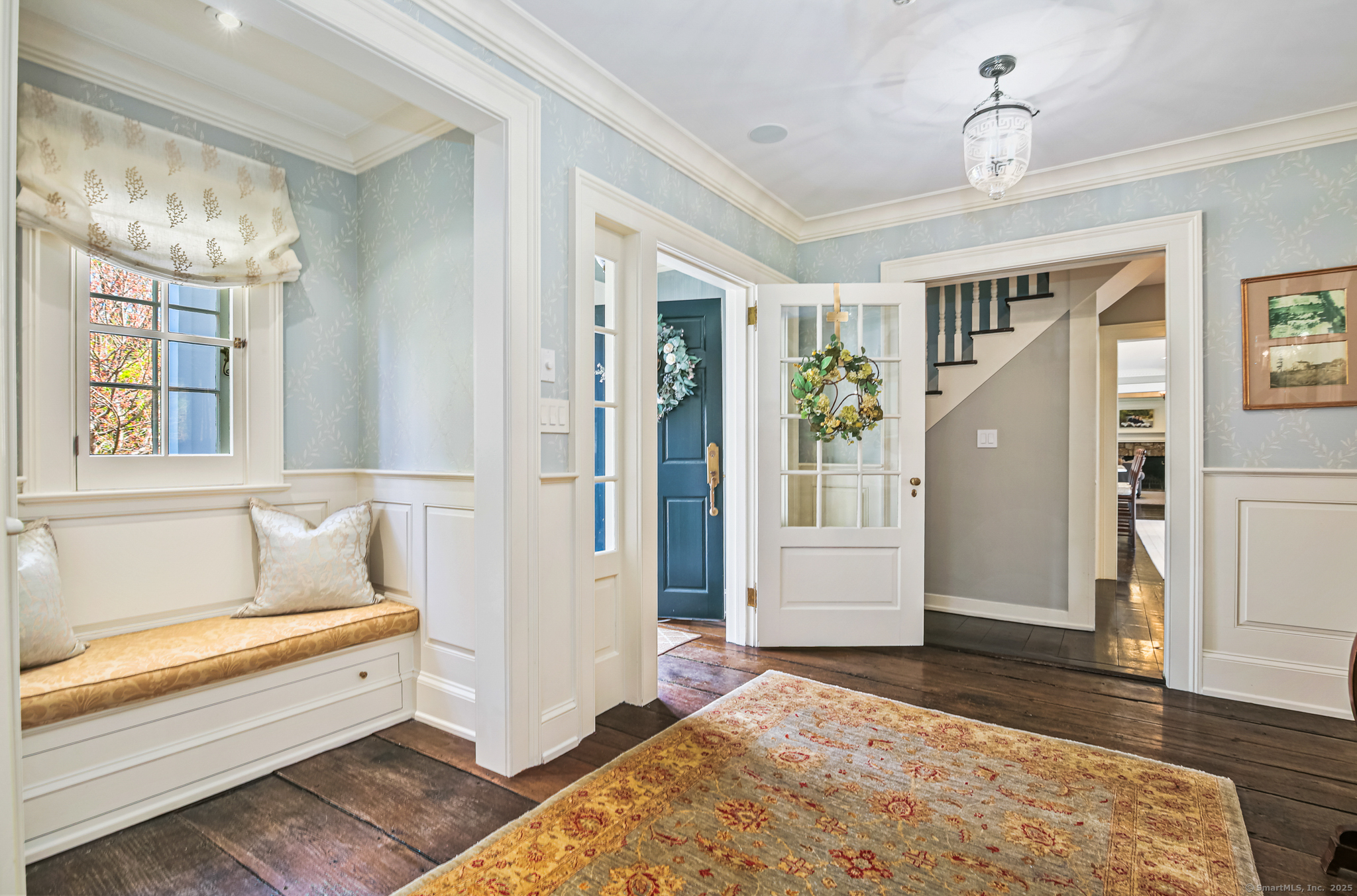 Step into timeless sophistication at this breathtaking Neoclassical estate, ideally located on over 4 pristine acres in one of New Canaan's most sought-after locations. Offering 6,557 square feet of beautifully refined living space, this extraordinary home effortlessly balances classic architectural elegance with the comforts of modern luxury. Thoughtfully redesigned and expanded between 2010 and 2017, the main residence features 5 spacious bedrooms and 4.1 bathrooms, alongside formal living and dining rooms, a chef-inspired kitchen, a sunlit mudroom, and multiple inviting family and gathering spaces. Every room showcases meticulous craftsmanship, bespoke millwork, and exceptional finishes-designed for both everyday living and elegant entertaining. A charming detached carriage house adds even more flexibility, perfect as a guest retreat, home office, fitness studio, or private residence for in-laws or an au pair. It includes its own bedroom, full bath, kitchen, and living area. Outside, the estate unfolds into sweeping lawns, curated gardens, specimen trees, and beautifully designed hardscapes, including a sparkling pool and spa. With top-to-bottom improvements-new windows and doors, updated utilities, a re-sealed roof, and more-this home is as turnkey as it is timeless. This is a rare opportunity to own an iconic and serene legacy property in the heart of New Canaan-an estate that truly must be seen to be appreciated.