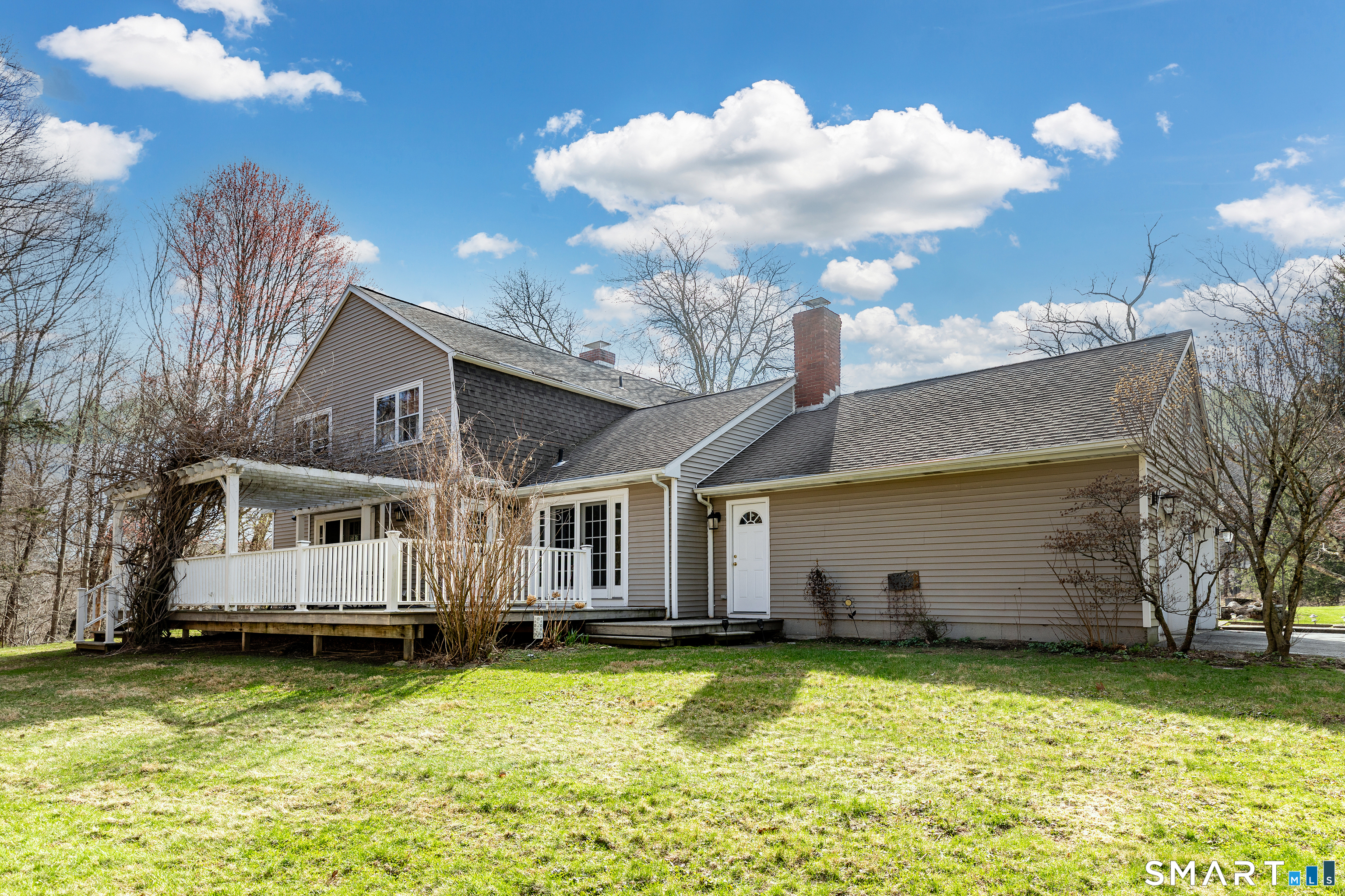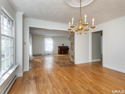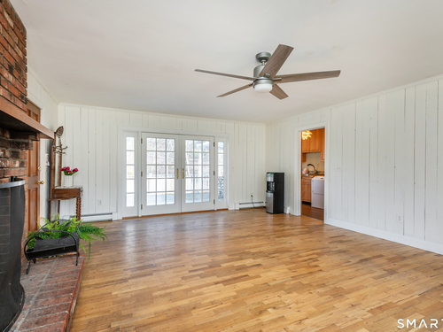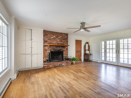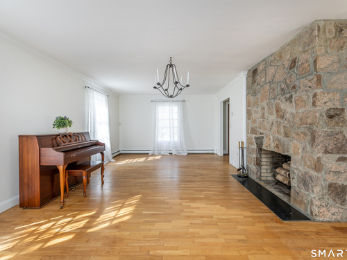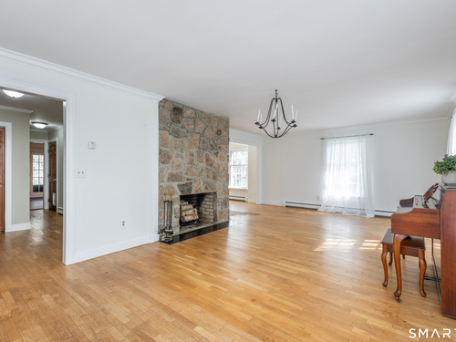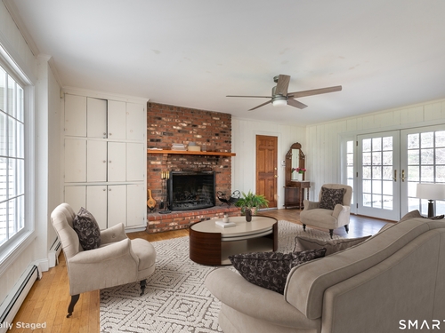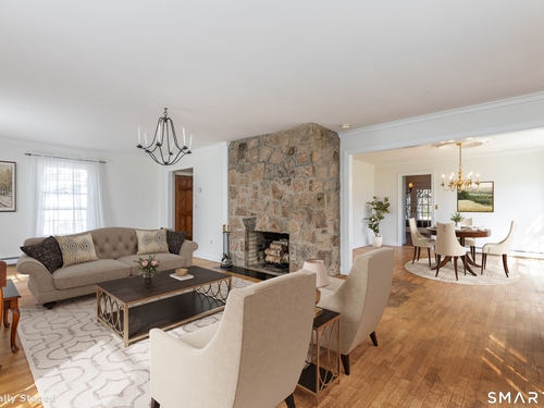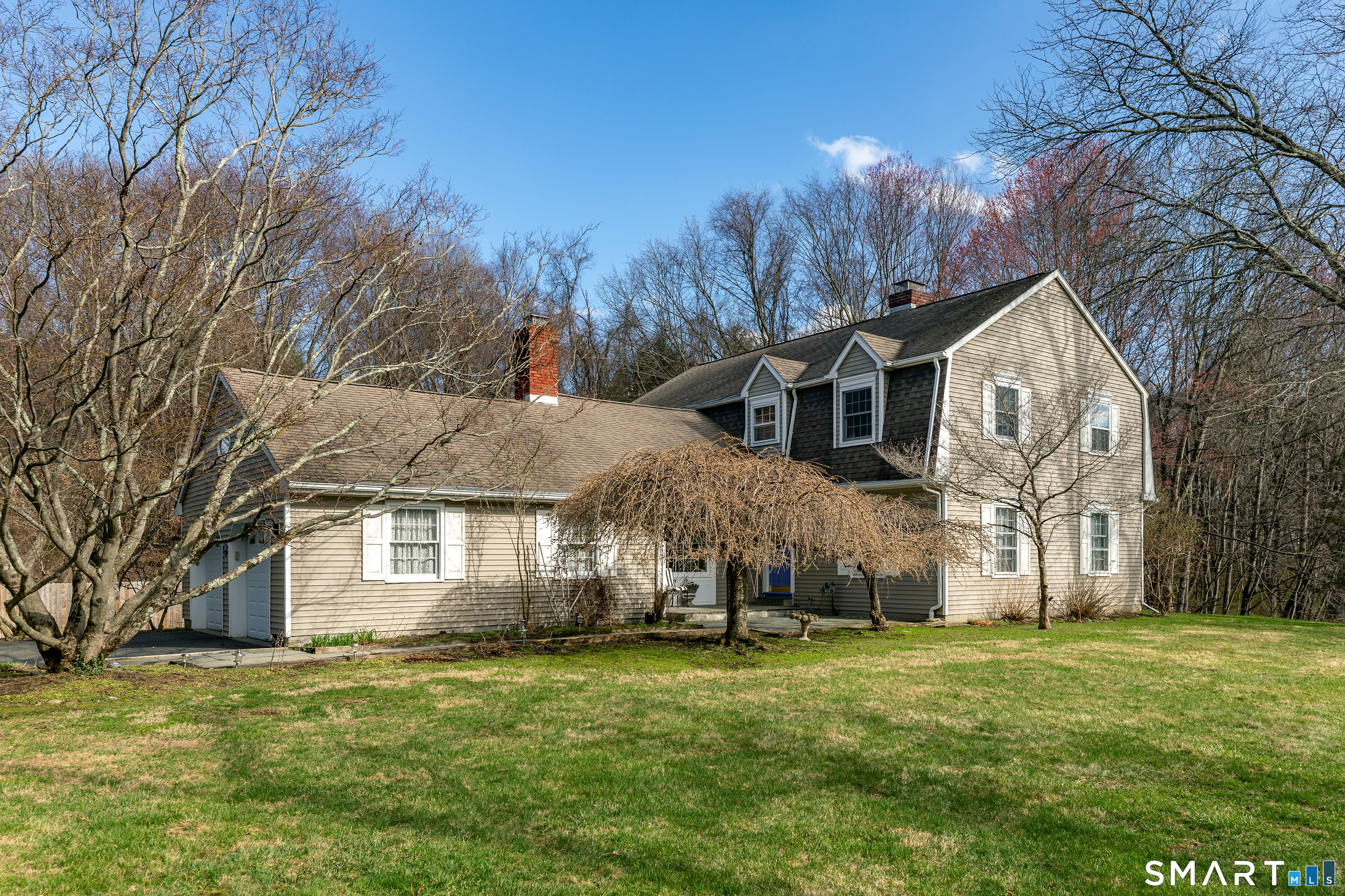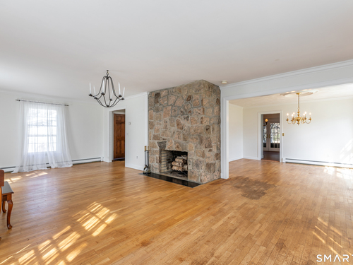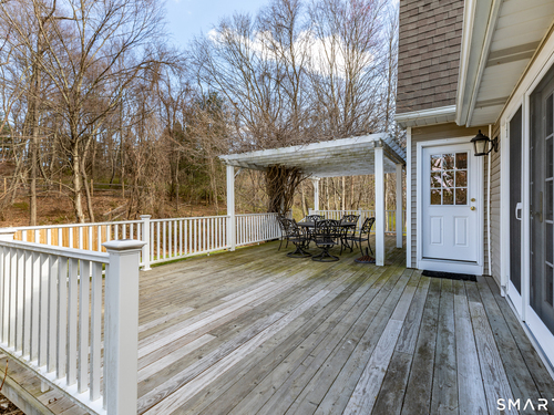 Tucked away on a quiet cul-de-sac just 1/2 mile from the New York state line, this home offers an appealing blend of privacy and convenience on two level acres in a tranquil, natural setting. The main level features generously sized rooms, including an eat-in kitchen with sliders to an exterior deck - ideal for indoor-outdoor living. The dining room and family room flank the kitchen, with the family room offering a cozy fireplace and leading to an expansive 26' living room with a striking stone fireplace. Bright spacious interiors create inviting spaces for both everyday living and entertaining. A welcoming foyer, full bath, and combined laundry/mudroom complete the main level. Upstairs, the primary bedroom suite is accompanied by three additional bedrooms, providing ample space for family and guests. Hardwood floors and abundant natural light on the inside, and mature specimen trees and plantings on the outside, enhance the home's appeal. While the home might benefit from updates, its exceptional floor plan, peaceful setting, and prime location offer tremendous upside potential. Sherman residents enjoy access to a town park with tennis courts, jogging track, playground, and beach on Candlewood Lake. Conveniently located just 90 minutes from Manhattan and minutes to the train, this home offers the perfect balance of country charm and commuter accessibility. Subject to probate approval and offered in "as is" condition. A wonderful opportunity to make it your own.
