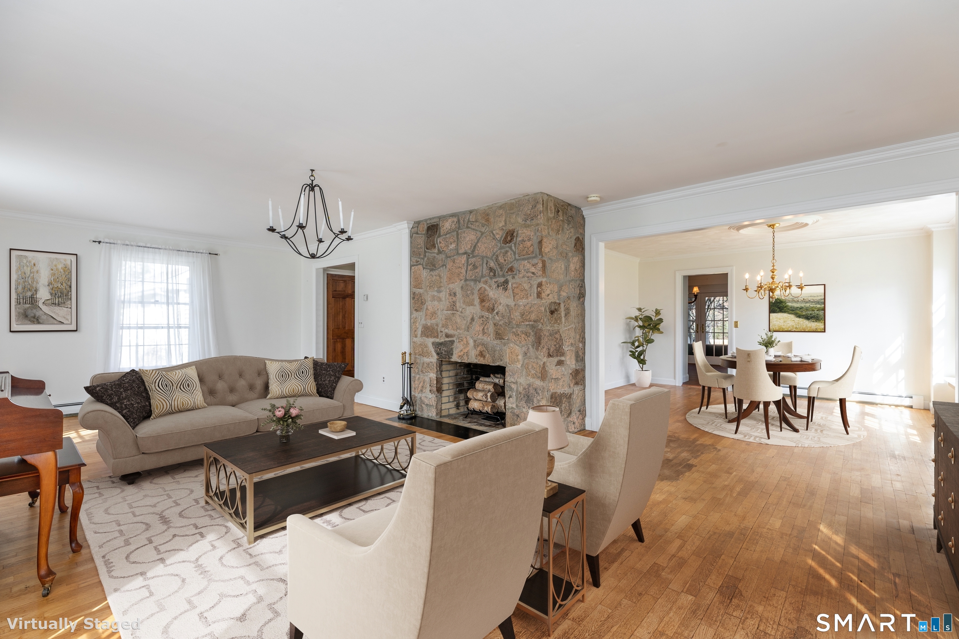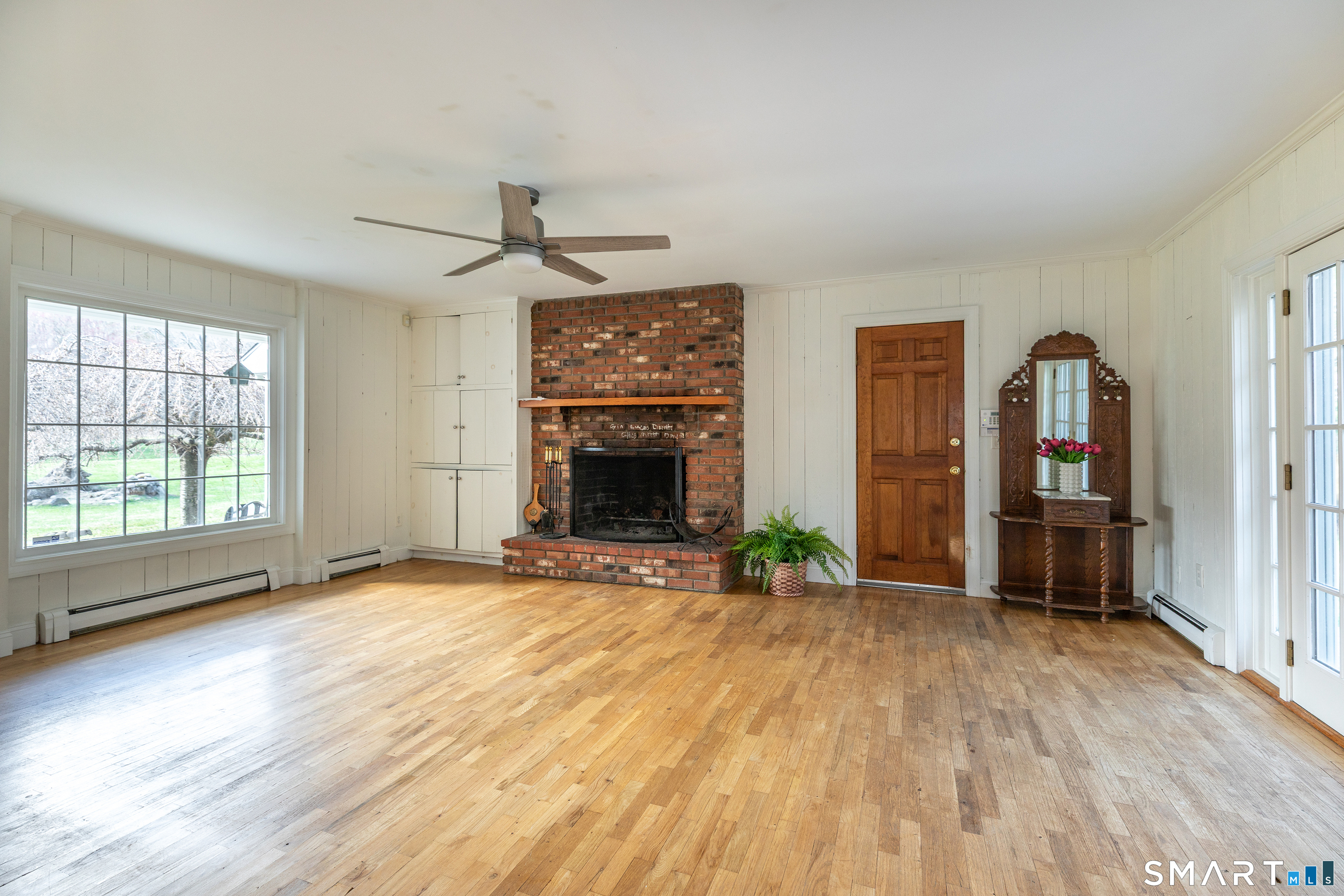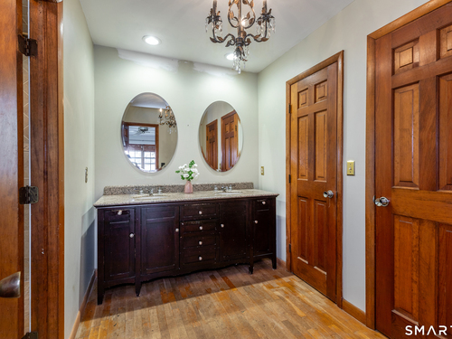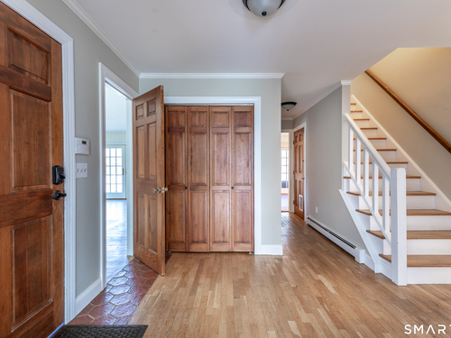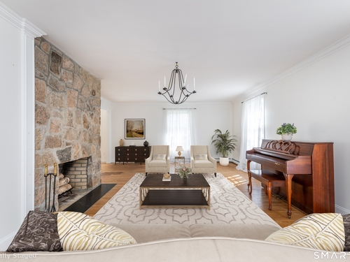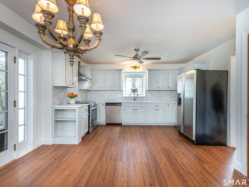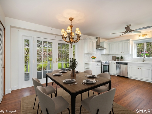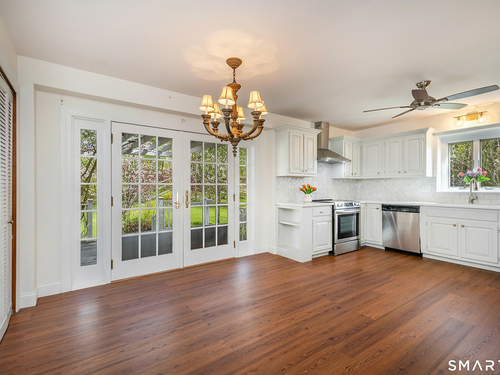 Tucked away on a quiet cul-de-sac just 1/2 mile from the New York state line, this home offers an appealing blend of privacy and convenience on two level acres in a tranquil, natural setting. The main level features generously sized rooms, including an eat-in kitchen with sliders to an exterior deck - ideal for indoor-outdoor living. The dining room and family room flank the kitchen, with the family room offering a cozy fireplace and leading to an expansive 26' living room with a striking stone fireplace. Bright spacious interiors create inviting spaces for both everyday living and entertaining. A welcoming foyer, full bath, and combined laundry/mudroom complete the main level. Upstairs, the primary bedroom suite is accompanied by three additional bedrooms, providing ample space for family and guests. Hardwood floors and abundant natural light on the inside, and mature specimen trees and plantings on the outside, enhance the home's appeal. While the home might benefit from updates, its exceptional floor plan, peaceful setting, and prime location offer tremendous upside potential. Sherman residents enjoy access to a town park with tennis courts, jogging track, playground, and beach on Candlewood Lake. Conveniently located just 90 minutes from Manhattan and minutes to the train, this home offers the perfect balance of country charm and commuter accessibility. Subject to probate approval and offered in "as is" condition. A wonderful opportunity to make it your own.