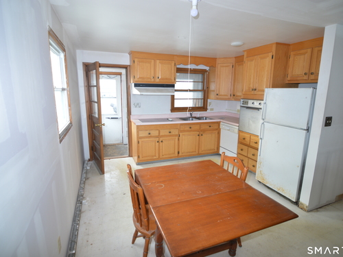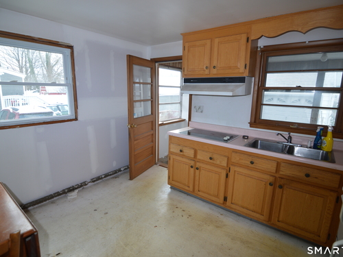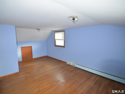 Roomy cape with 24 x 24 detached garage with huge loft. Perfect spot for anyone in the trades! Roof installed in 2008 with 30 year plus shingles. Sun porch has a gas heater. Brand new gas water heater. Full dormer, too! Wood burning stove in basement stays. Front porch to be completed asap. Great location for commuters near I-95 and the Stratford Train Station.