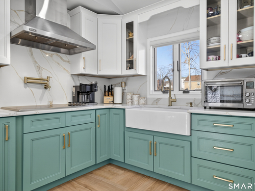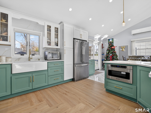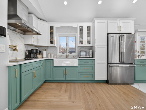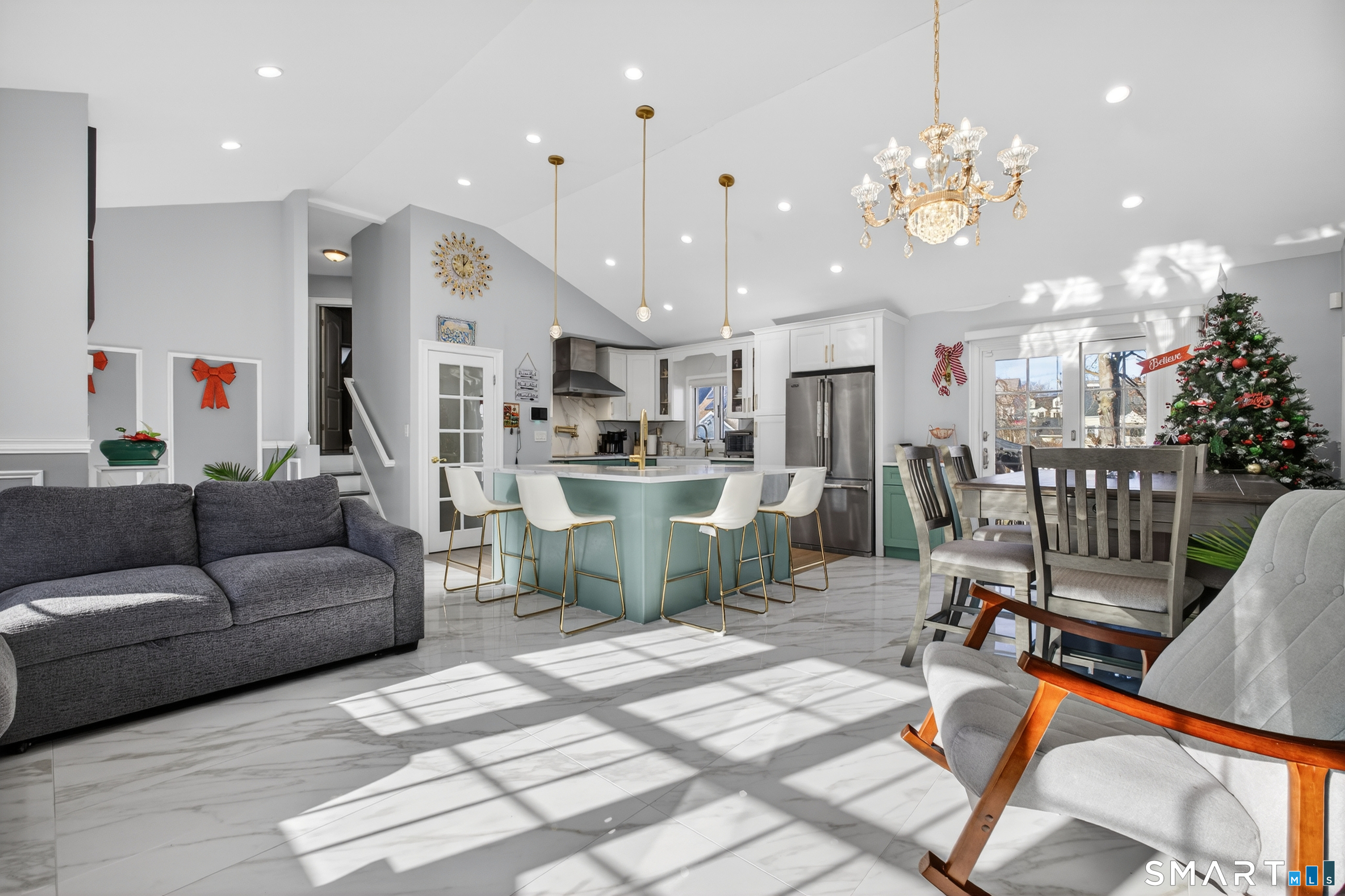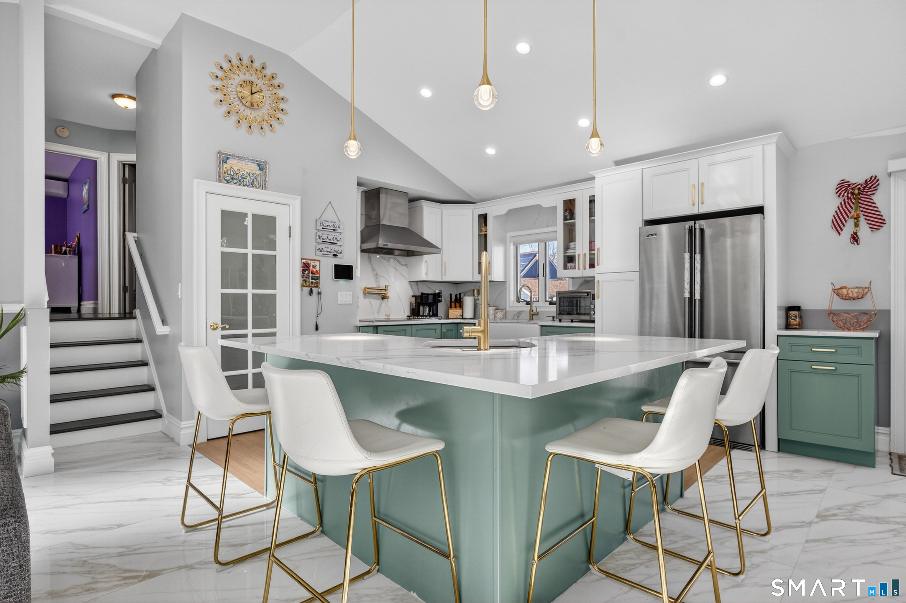 This stunning North End home is beautifully remodeled and features high-end finishes and thoughtful upgrades throughout. The gourmet kitchen is a showpiece with granite countertops, Viking appliances, a farm sink, an additional prep sink in the island, radiant heated floors, and a pot filler. It opens to the living and dining areas with an open-concept layout and cathedral ceilings for an airy feel. Radiant heated floors run through these main living spaces, providing consistent, energy-efficient warmth. The updated bathrooms offer LED self-closing, anti-fog mirrors and an extra-deep soaking tub upstairs. Each bedroom has its own new mini-split with heat and A/C. Major upgrades include new electrical, plumbing, and a new sewer line to the road, plus a new roof, new solar panels, and a freshly primed and painted exterior. Outside features new pavers, stepping stones, a fountain, improved drainage, a newly paved driveway, a new front and back fence, and a flat yard. A 3-ft foundation wall spans the backyard for added stability. The partially finished lower level offers a separate entrance, a newly remodeled full bath (wait until you see the shower!), a bedroom, and a family room-perfect for a possible in-law or guest suite. This home is in a prime location bordering Trumbull and Fairfield. Every detail has been upgraded-schedule your showing today! (contingent upon sellers finding suitable housing - they are currently under contract)