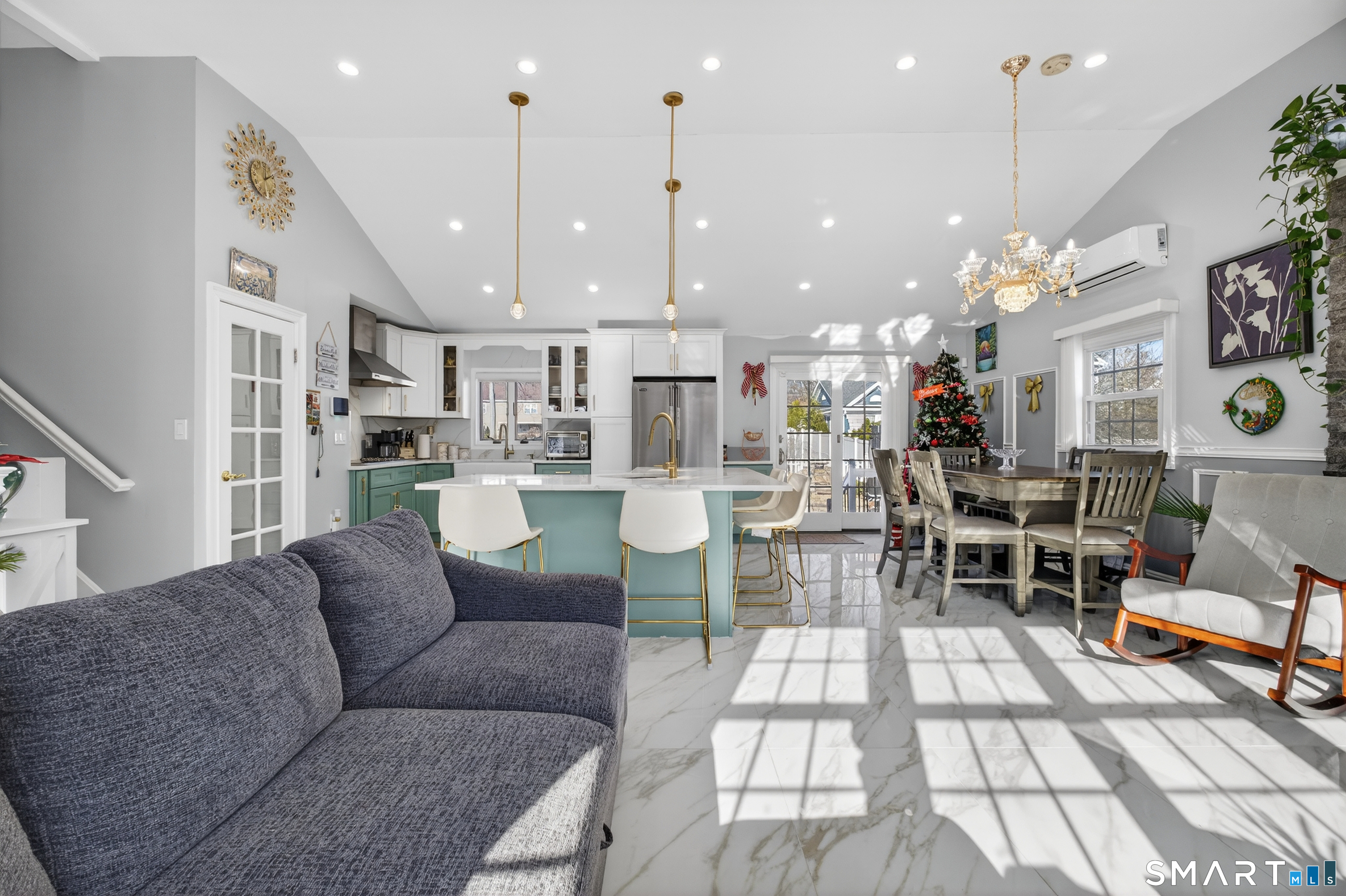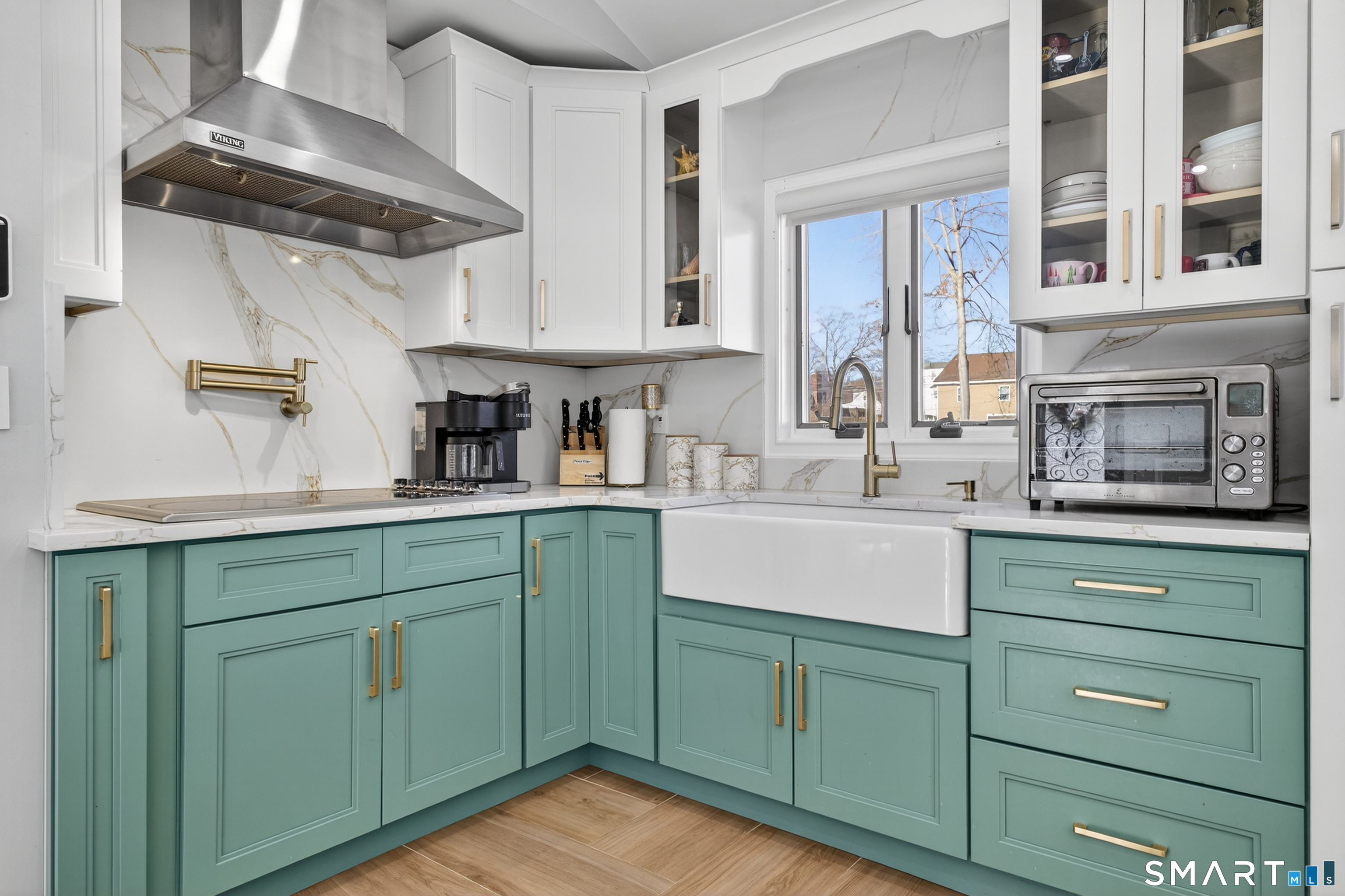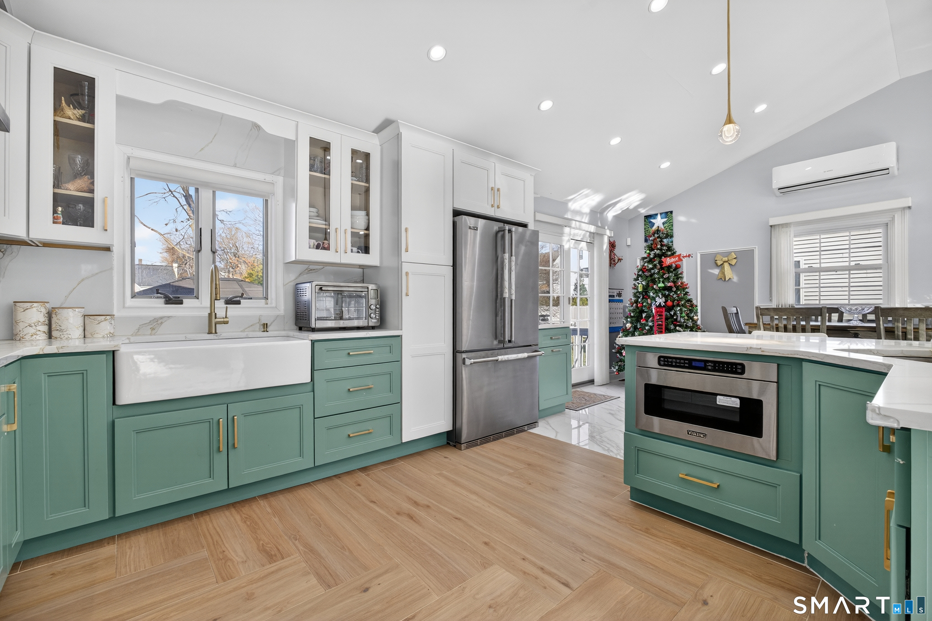 This stunning North End home is beautifully remodeled and features high-end finishes and thoughtful upgrades throughout. The gourmet kitchen is a showpiece with granite countertops, Viking appliances, a farm sink, an additional prep sink in the island, radiant heated floors, and a pot filler. It opens to the living and dining areas with an open-concept layout and cathedral ceilings for an airy feel. Radiant heated floors run through these main living spaces, providing consistent, energy-efficient warmth. The updated bathrooms offer LED self-closing, anti-fog mirrors and an extra-deep soaking tub upstairs. Each bedroom has its own new mini-split with heat and A/C. Major upgrades include new electrical, plumbing, and a new sewer line to the road, plus a new roof, new solar panels, and a freshly primed and painted exterior. Outside features new pavers, stepping stones, a fountain, improved drainage, a newly paved driveway, a new front and back fence, and a flat yard. A 3-ft foundation wall spans the backyard for added stability. The partially finished lower level offers a separate entrance, a newly remodeled full bath (wait until you see the shower!), a bedroom, and a family room-perfect for a possible in-law or guest suite. This home is in a prime location bordering Trumbull and Fairfield. Every detail has been upgraded-schedule your showing today! (contingent upon sellers finding suitable housing - they are currently under contract)