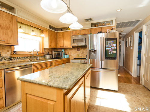 END YOUR SEARCH, MAKE YOUR OFFER, SCHEDULE THE MOVERS AND ENJOY YOUR SPACIOUS 10+ ROOM HOME WITH ROOM FOR EXTENDED FAMILY AND IN-LAW POTENTIAL. YOUR MAIN LEVEL LIVING AREA FEATURES FORMAL LIVING ROOM, BANQUET SIZE DINING ROOM, FRONT TO BACK FAMILY ROOM WITH FIREPLACE AND REMODELED EAT-IN KITCHEN INCLUDING CUSTOM CABINETRY, BUILT-IN HUTCH, GRANITE COUNTERS AND STAINLESS STEEL APPLIANCES. YOUR WALK OUT LOWER LEVEL OFFERS ADDITIONAL LIVING AREA WITH PLAYROOM, OFFICE/DEN, KITCHENETTE WITH LAUNDRY AND FULL BATH, STORAGE ROOM AND LARGE 2 CAR GARAGE. STEP OUTSIDE TO ENJOY YOUR OUTDOOR GATHERINGS ON YOUR OVERSIZED DECK WITH GAZEBO, PATIO WITH FIREPLACE AND CUSTOM STONEWORK PLUS 2 SHEDS (ONE WITH ELECTRICITY) FOR EXTRA STORAGE. GAS HEATING, HOT WATER, CENTRAL A/C, NEWER ROOF, SIDING, WINDOWS, PUBLIC WATER, SEWER AND AN IDEAL, CONVENIENT LOCATION CLOSE TO SCHOOLS, SHOPPING/RETAIL, TOWN CENTER WITH EASY ACCESS TO RT25/8 AND RT 15 MERRITT PARKWAY COMPLETE YOUR NEW HOME.