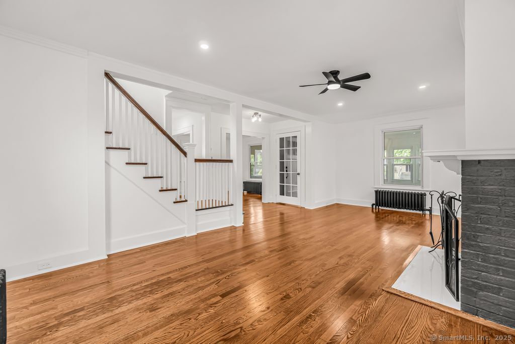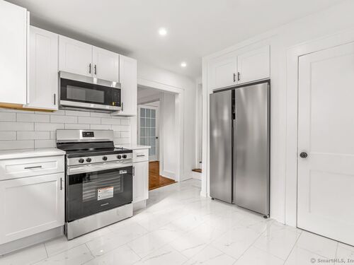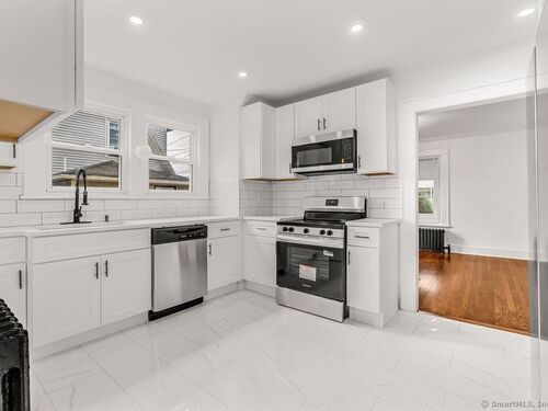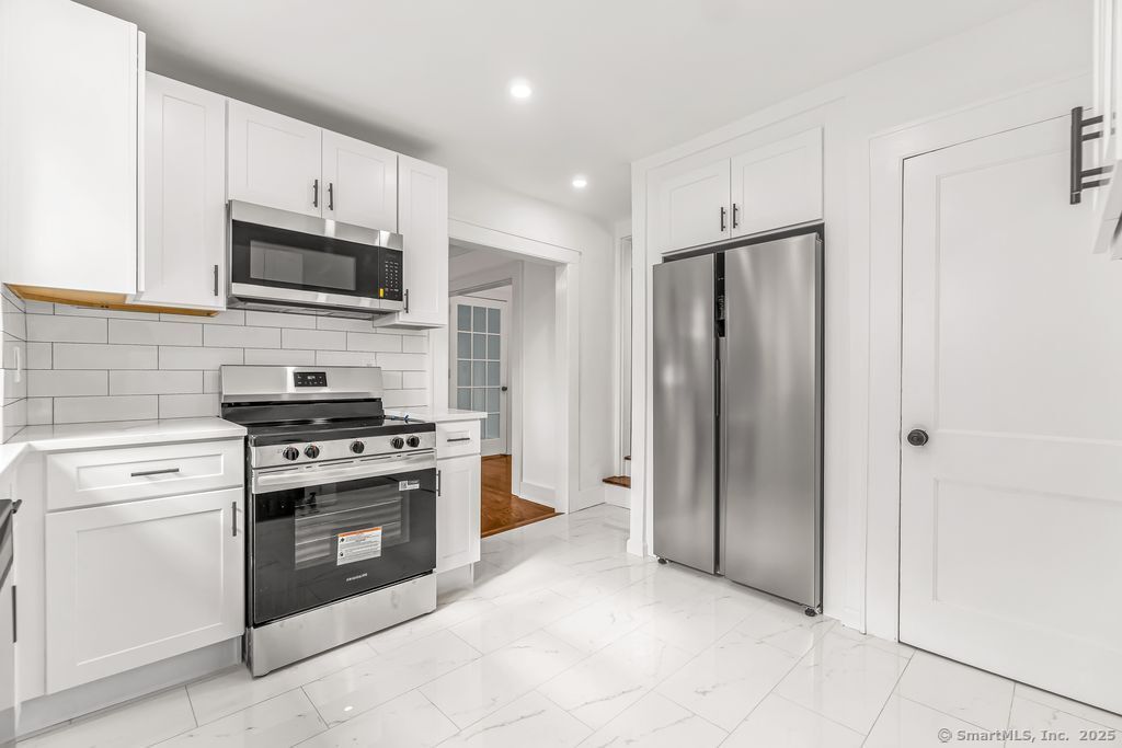 Welcome to this stunningly remodeled colonial where modern elegance meets classic colonial charm. This home boasts three generous bedrooms and one and a half bathrooms, providing ample space for comfortable living. Enter into a bright and inviting atmosphere, highlighted by a stunning eat-in kitchen featuring beautiful tiled floors, custom shaker cabinets, sleek quartz countertops, and brand new stainless steel appliances. The living room and formal dining room are ideal for entertaining and family gatherings. Each room features new light fixtures that add a modern touch and illuminate the space beautifully. Refinished hardwood floors, all new hardware and freshly painted throughout. Convenience is key with a laundry area located on the upper level. Fenced in yard, detached two-car garage. This home is truly a must-see.