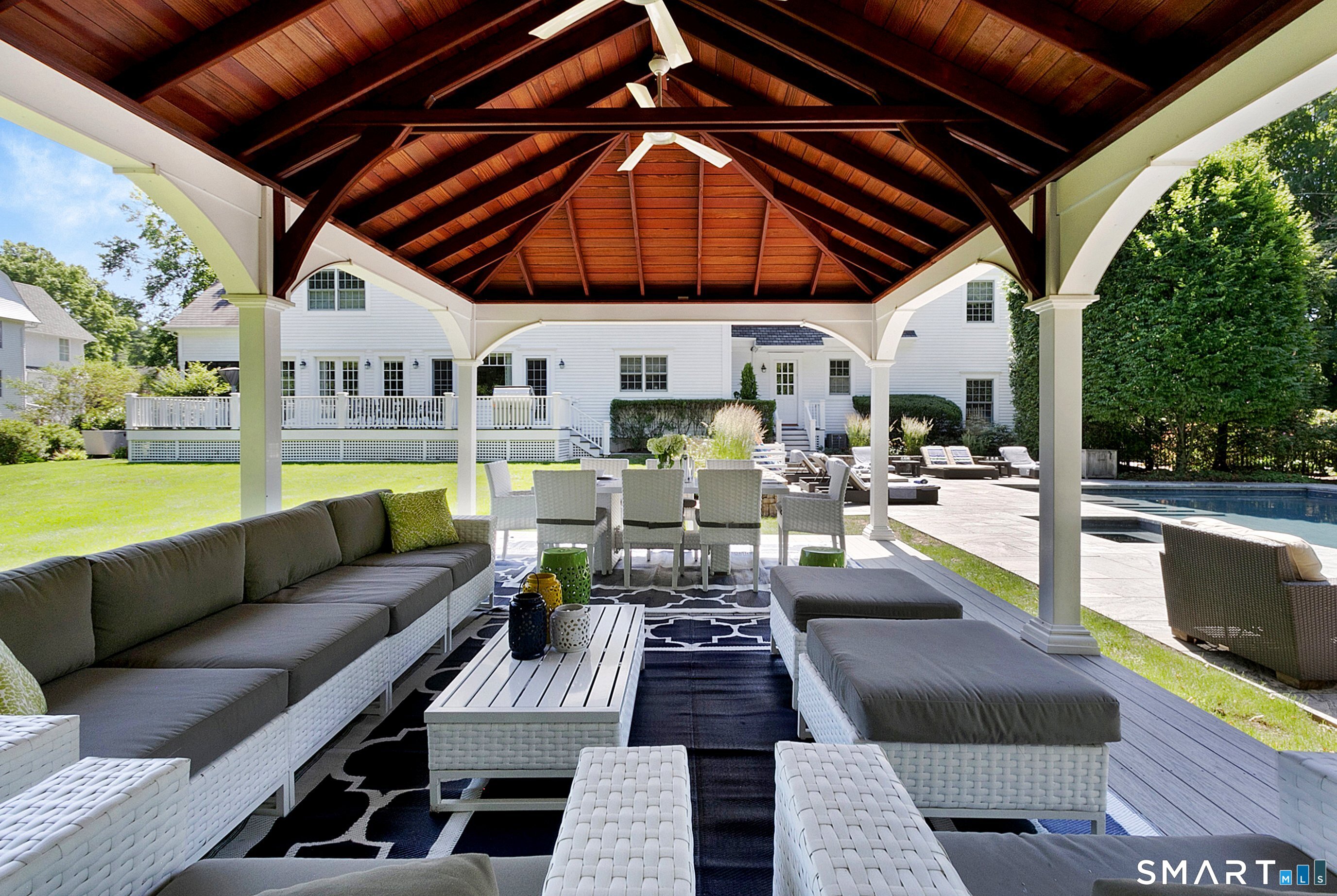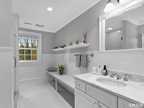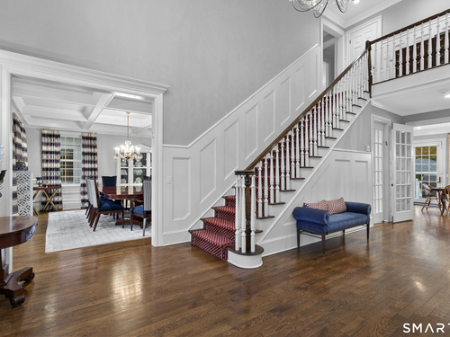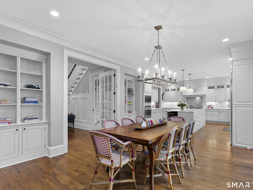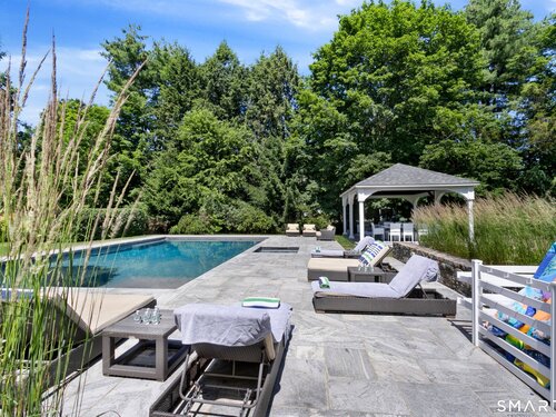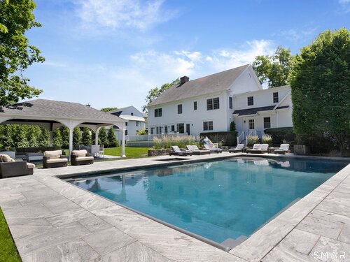 This pristine Colonial offers timeless Westport elegance and effortless living, set on 1.12 flat, manicured acres framed by classic stone walls in a coveted, quiet neighborhood just one hour from NYC. The five-bedroom home features five full and two half baths, two dedicated offices, two versatile bonus spaces, custom millwork throughout, and abundant storage-perfect for today's work-from-home, wellness, and entertaining lifestyle. Outside, a newly renovated pool with spa and covered pavilion creates a private, resort-style retreat where summer feels endless. Located in a beloved walkable neighborhood known for dog walks, biking, and easy access to top Westport schools, this home blends refined suburban living with a relaxed, vacation-inspired lifestyle.