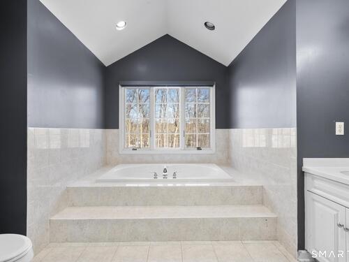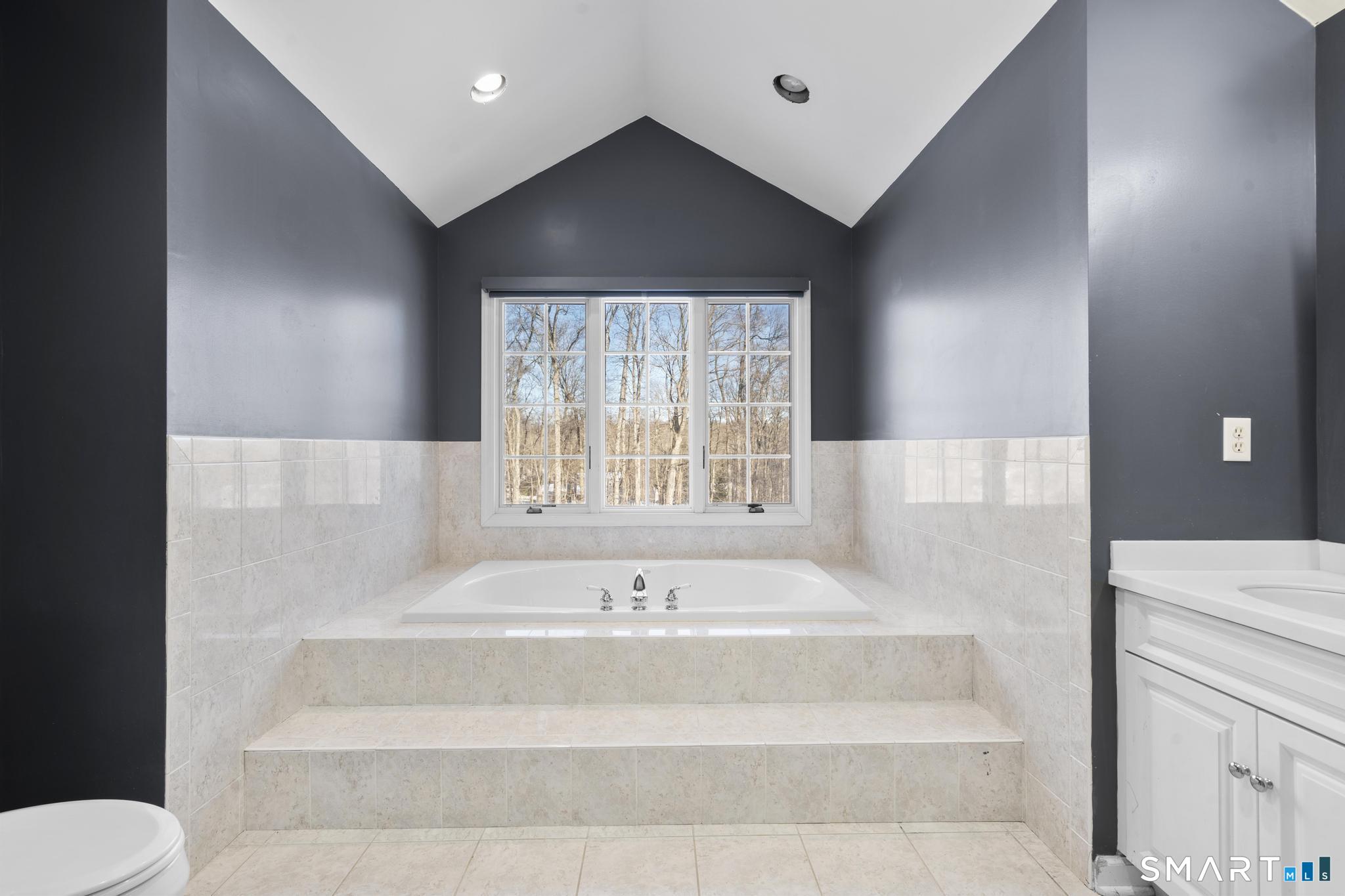 Primary Bath (Upper Level)Double-Sink, Full Bath, Stall Shower, Whirlpool Tub, Tile Floor, On 3rd Floor