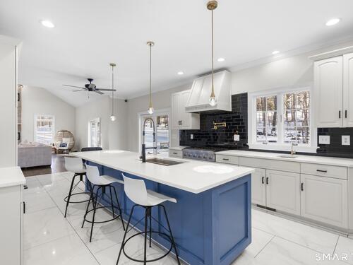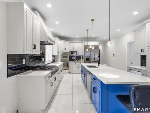 Kitchen (Main Level)Quartz Counters, Island, Tile Floor